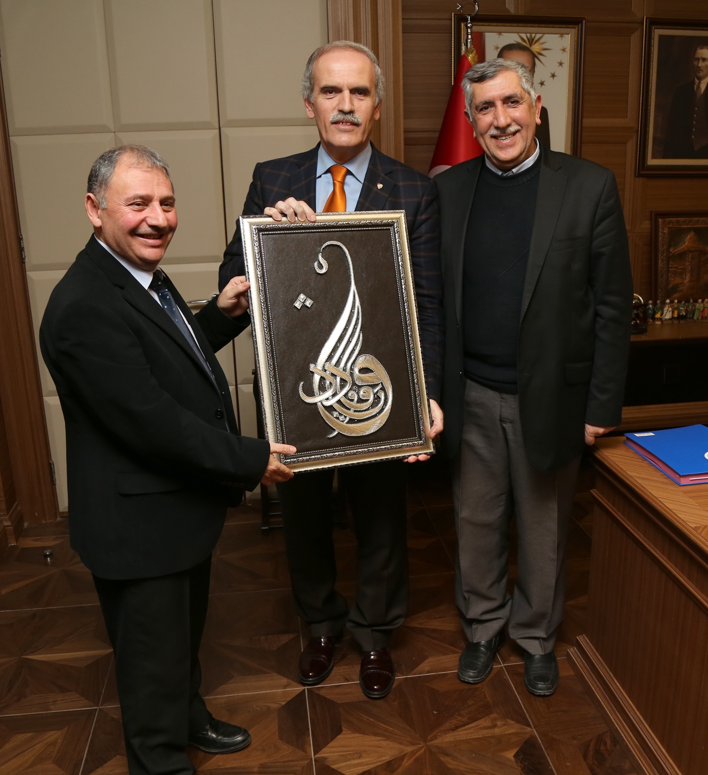 Kestel Belediye Başkanı Yener Acar, ziyaretin anısına Başkan Altepe’ye hat işlemeli tablo hediye etti.