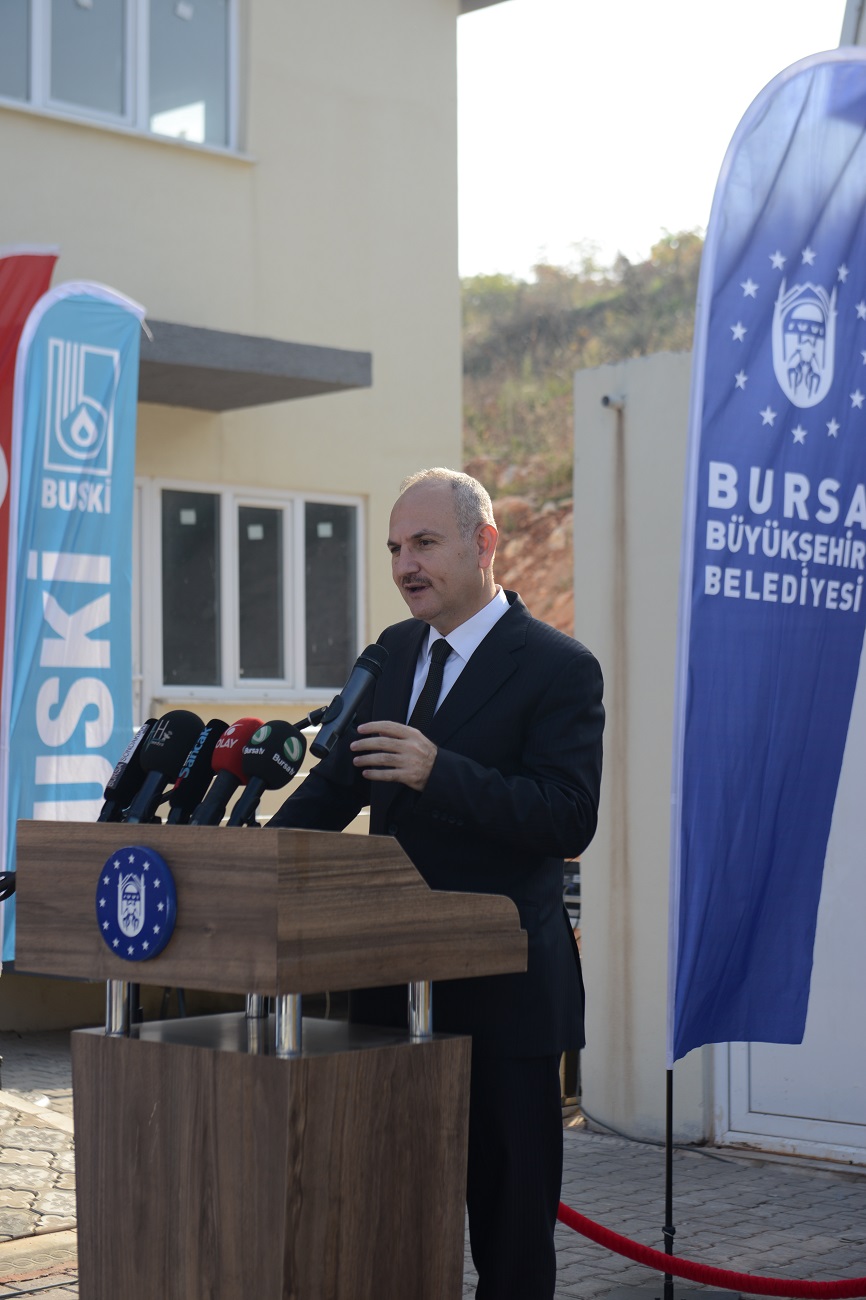 Büyükşehir Belediye Başkanvekili Ahmet Yıldız, törende yaptığı konuşmada, Bursa’da hem su hem çevre konularında önemli çalışmaları hayata geçirerek, her anlamda sağlıklı bir şehir inşa etmeye çalıştıklarını vurguladı. BUSKİ Genel Müdürlüğü’nün önemli yatırımlarla kentin susuzluğa maruz kalmaması için çalıştığını, içme suyu-yağmursuyu ve kanalizasyon çalışmalarının yanında arıtma tesisleri ile de suyu ıslah ederek halkın kullanımına sunduğunu ifade eden Yıldız, “Altyapı çalışmaları kapsamında önemli yatırımlar gerçekleştirdik. Son bir yılda 374 kilometrelik içme suyu, 165 kilometrelik kanalizasyon ve 87 kilometrelik yağmursuyu hatları ile 59 kilometrelik dere ıslahı ve 38 adet su deposunu Bursa’ya kazandırdık. Yaptığımız tüm bu faaliyetlerin bize maliyeti 350 milyon TL oldu” dedi.