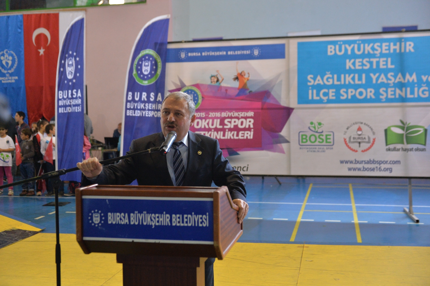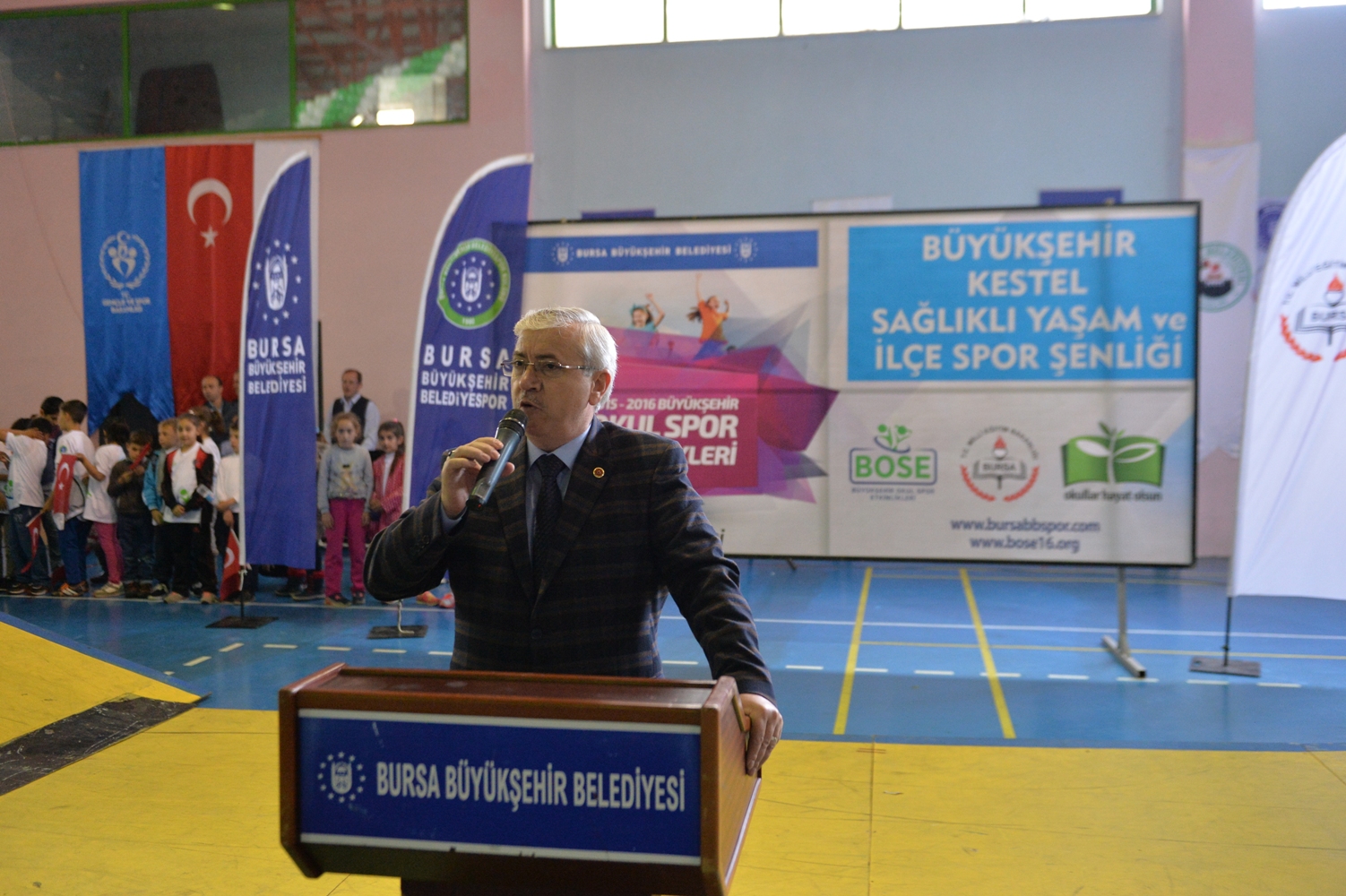 Bursa Büyükşehir Belediyesi Başkanvekili Şükrü Köse, programın açılışında yaptığı konuşmada, her hangi bir yer ayrımı yapmadan Büyükşehir sınırlarında ki her yere hizmet götürmenin mutluluğunu yaşadıklarını söyledi. Köse, okul sporları etkinlikleri kapsamında bugün itibari ile yaklaşık 220 bin çocuğa spor yaptırdıklarının ve bu sayının her geçen gün artmasından dolayı ise ayrıca mutluluk duyduklarını dile getirdi. Bursa Büyükşehir Belediyesi olarak Sağlıklı Kentler ile birlikte sağlıklı nesiller yetiştirmenin idealleri olduğunu söyleyen Bursa Büyükşehir Belediyesi Başkan vekili Şükrü Köse, yapılan bu etkinliklerin çocuklarımız ve gençlerimiz için de gelecekte daha sağlıklı ve mutlu hayat sürme açısından çok değerli olduğunun da altını çizdi.