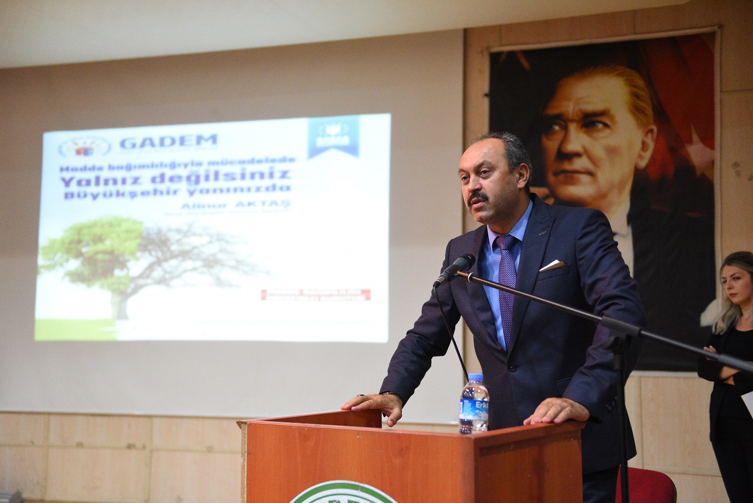 Büyükşehir Belediyesi Sağlık İşleri Dairesi Başkanı Mehmet Fidan, program açılışında yaptığı konuşmada, alkol ve madde bağımlılığının sadece Türkiye’nin değil dünyanın genelini kapsayan en önemli problemlerden biri olduğunu söyledi. Büyükşehir Belediyesi olarak 2015 yılının Ağustos ayından bu yana GADEM vasıtasıyla bu tür bağımlılıklarla mücadeleyi hız kesmeden artırarak sürdürdüklerini vurgulayan Fidan, “Yaptığımız araştırmalar ve yaşadığımız sıkıntılarda, insan hafızasının alamayacağı konularla karşılaşıyoruz. Bir evde baba da çocuklar da madde bağımlısı ama kimse diğerini bilmiyor. Birbirlerinden haberleri yok. Cezai yaptırımlar bulunmasına karşın, aralıklarla cezaevine girerek, zararlıları kullanmaya ve satmaya devam ediyorlar. Bağımlılığa yakalanan çocuklarımızı nasıl fark edeceğiz, bunlara karşı ne gibi tedbirler alacağız, madde bağımlılığıyla ilgili mücadeleyi toptan nasıl yapacağız? Bu realitenin üzerinde ısrarla duruyoruz” dedi.