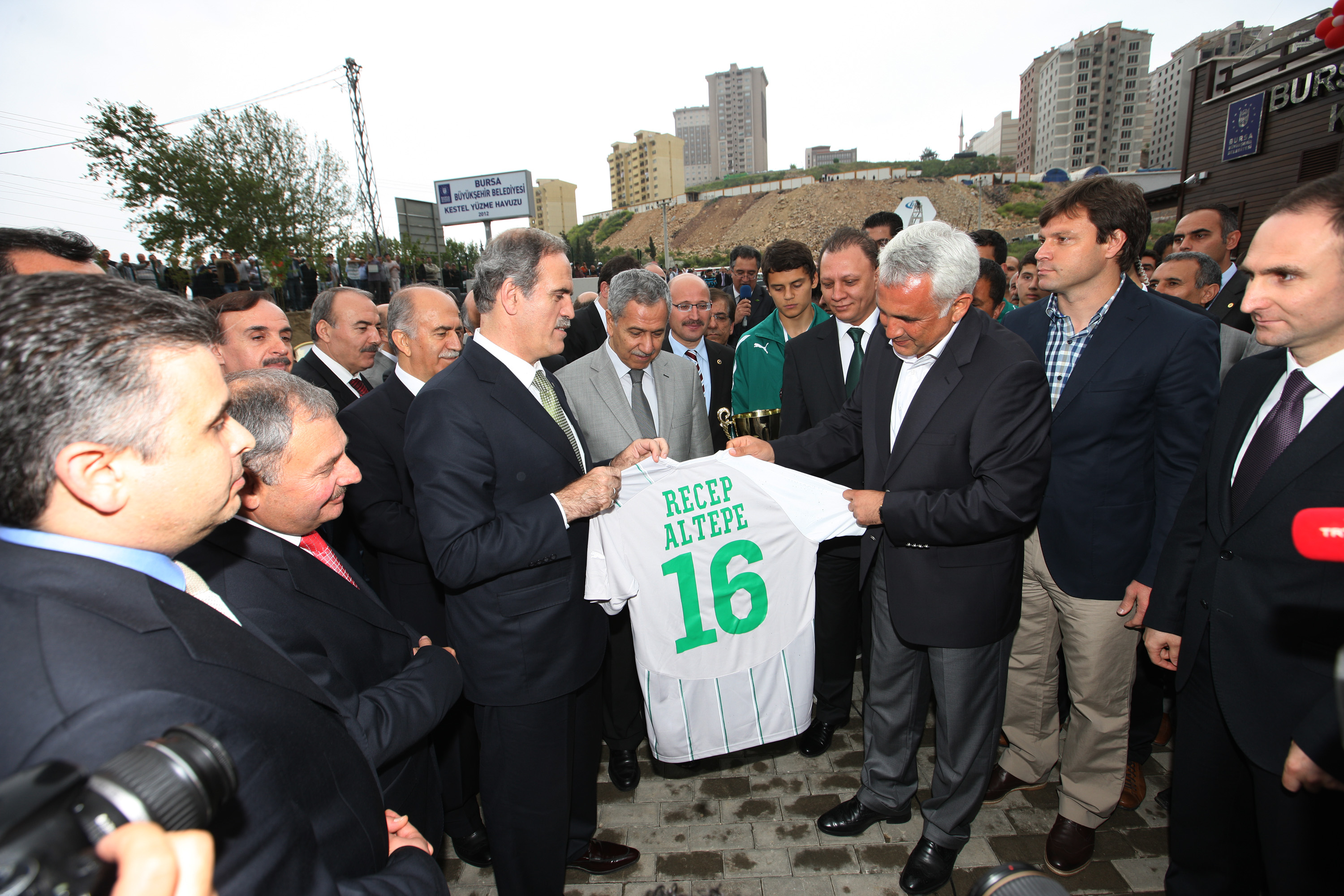 Bursaspor Kulübü yönetimi de Başbakan Yardımcısı Bülent Arınç, Büyükşehir Belediye Başkanı Recep Altepe ve Vali Şahabettin Harput’a takımın 16 numaralı formasını hediye etti.