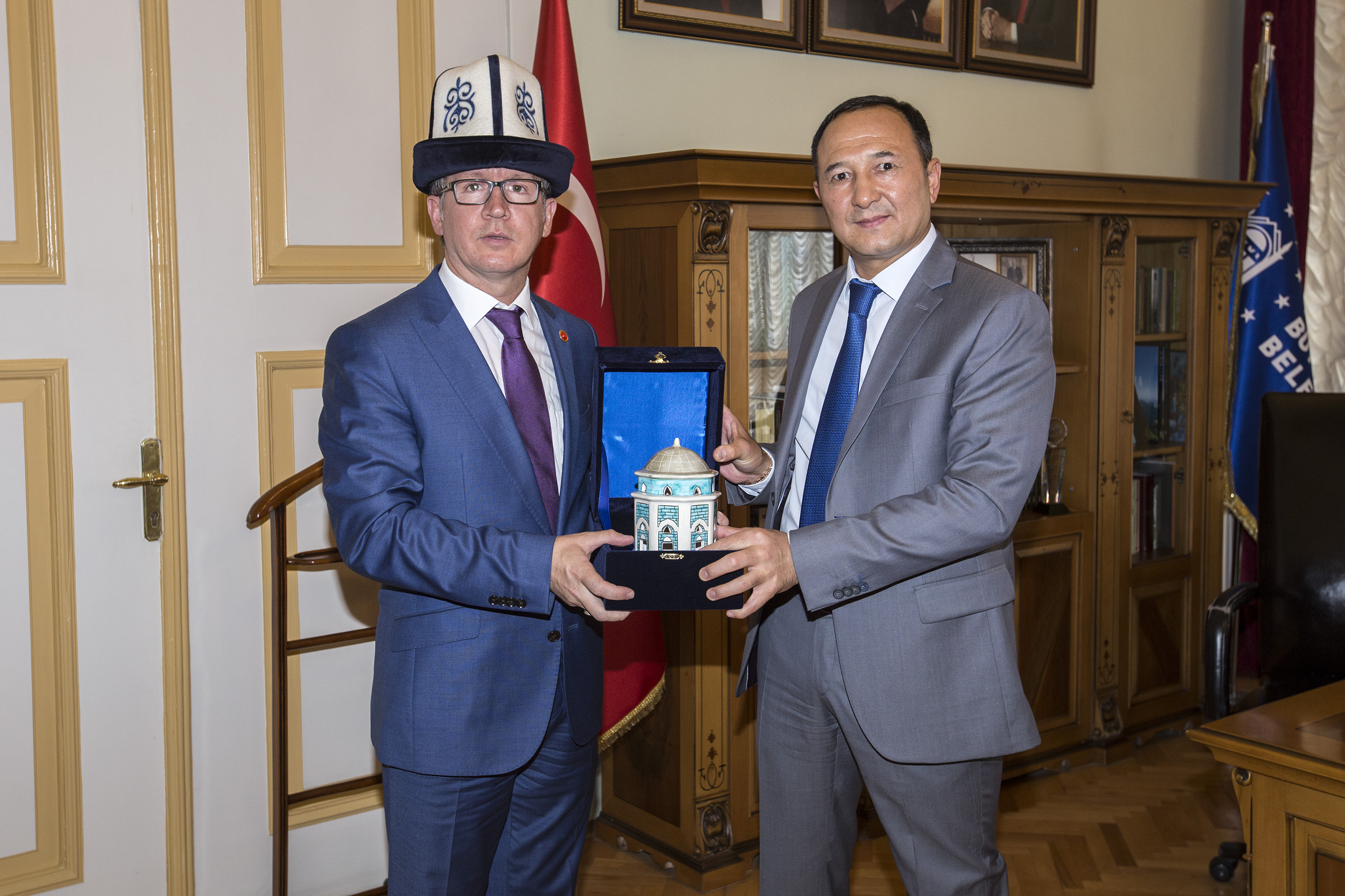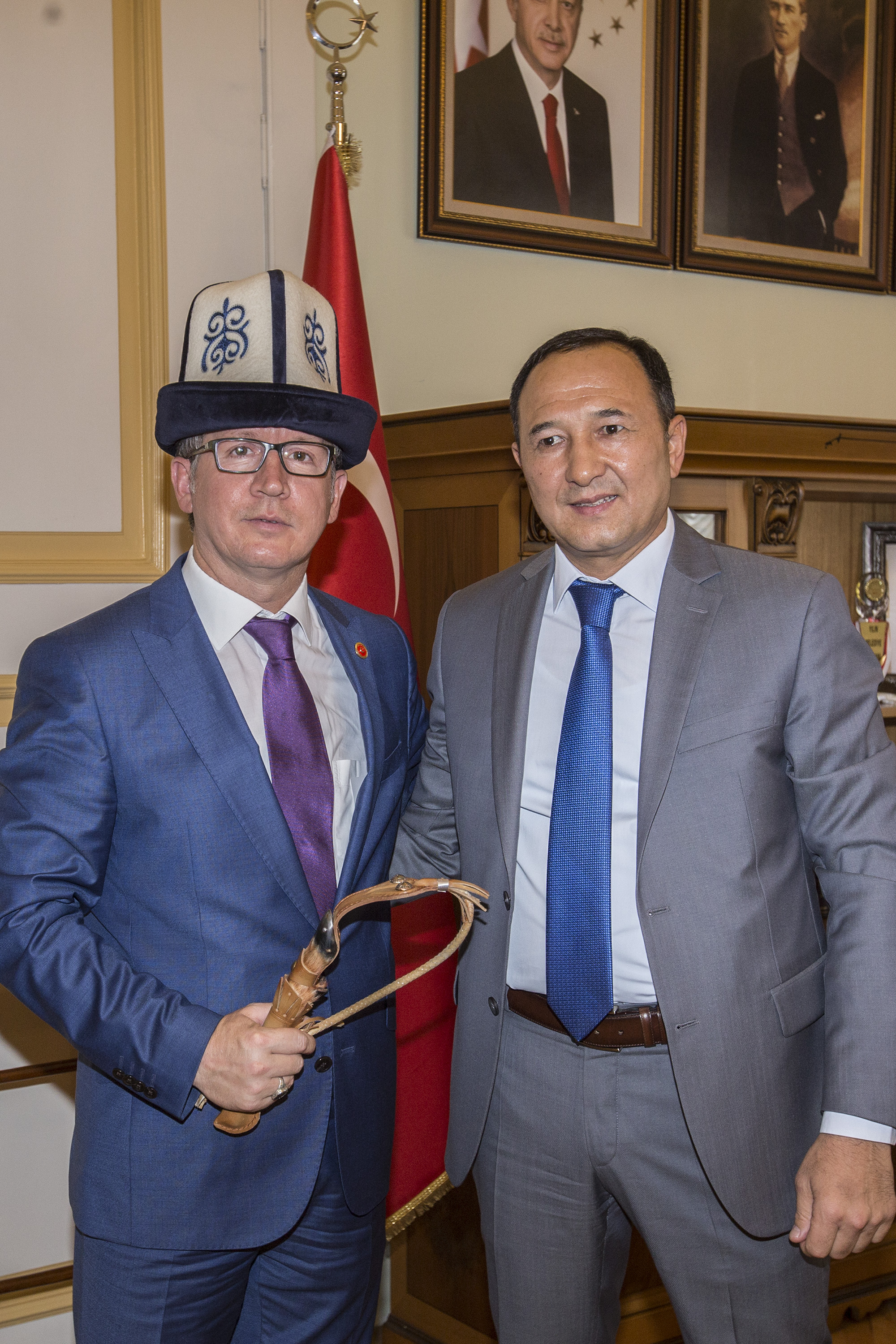 Büyükşehir Belediye Başkanvekili Abdülkadir Karlık, günün anısına konuğuna çiniden el yapımı Yeşil Türbe maketi hediye etti. Moldakunov ise Başkanvekili Karlık’a Kırgız kalpağı ile kamçı takdim etti.