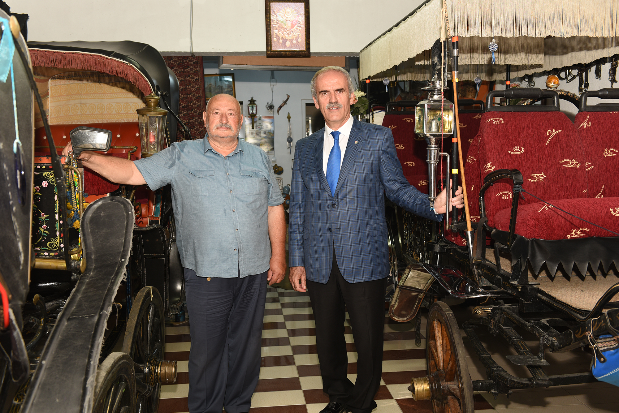 8500 yıllık arkeolojik dönemden 2300 yıllık Bitinya surlarına, 700 yıllık Osmanlı eserlerinden Cumhuriyet dönemi sivil mimarlık örneği yapılara kadar her alanda tarihi miras çalışmalarını hız kesmeden sürdüren Büyükşehir Belediyesi, aynı zamanda Bursa’yı müzeler şehri haline getiriyor. Karagöz Müzesi ve Kent Müzesi’nin ardından hizmete açılan Tekstil Sanayi Müzesi, Enerji Müzesi, İpek Müzesi, Göç Tarihi Müzesi, Kılıç Kalkan Müzesi ile bu alanda diğer kentlere danışmanlık hizmeti de veren Büyükşehir Belediyesi, kırsal kültürü de gelecek kuşaklara aktarmak amacıyla Tarım Müzesi kurulması yolunda önemli bir adım attı. Tarım Müzesi ile ilgili proje çalışmaları tamamlanırken, inşaata başlamak için gün sayan Büyükşehir Belediyesi’ne bu konuda en büyük destek ise işadamı İhsan Gür’den geldi. Ata sporu yağlı güreşe olan merakı ve hakemlik yapması aynı zamanda rahvan atçılıkla ilgili derneklerde yöneticilik yapması nedeniyle Türkiye’nin bir yanını gezme imkanı bulan Gür, Anadolu’nun farklı illerinden ve yurt dışından büyük kısmı hediye olarak kendisine verilen binlerce tarımsal alet ve ekipmanı bu müzeye bağışladı. Büyükşehir Belediye Başkanı Recep Altepe, beraberindeki Kültür Turizm Daire Başkanı Aziz Elbas ve Kültür Sanat Danışmanı Ahmet Erdönmez ile birlikte İhsan Gür’ün tarım aletlerini sergilediği alanı gezdi.