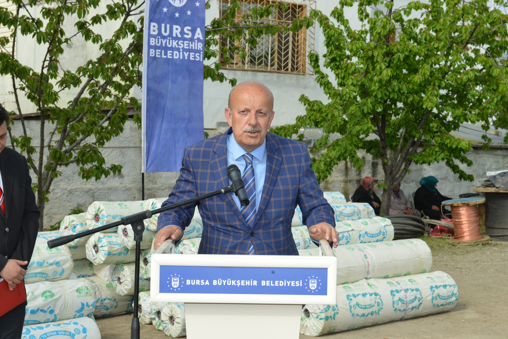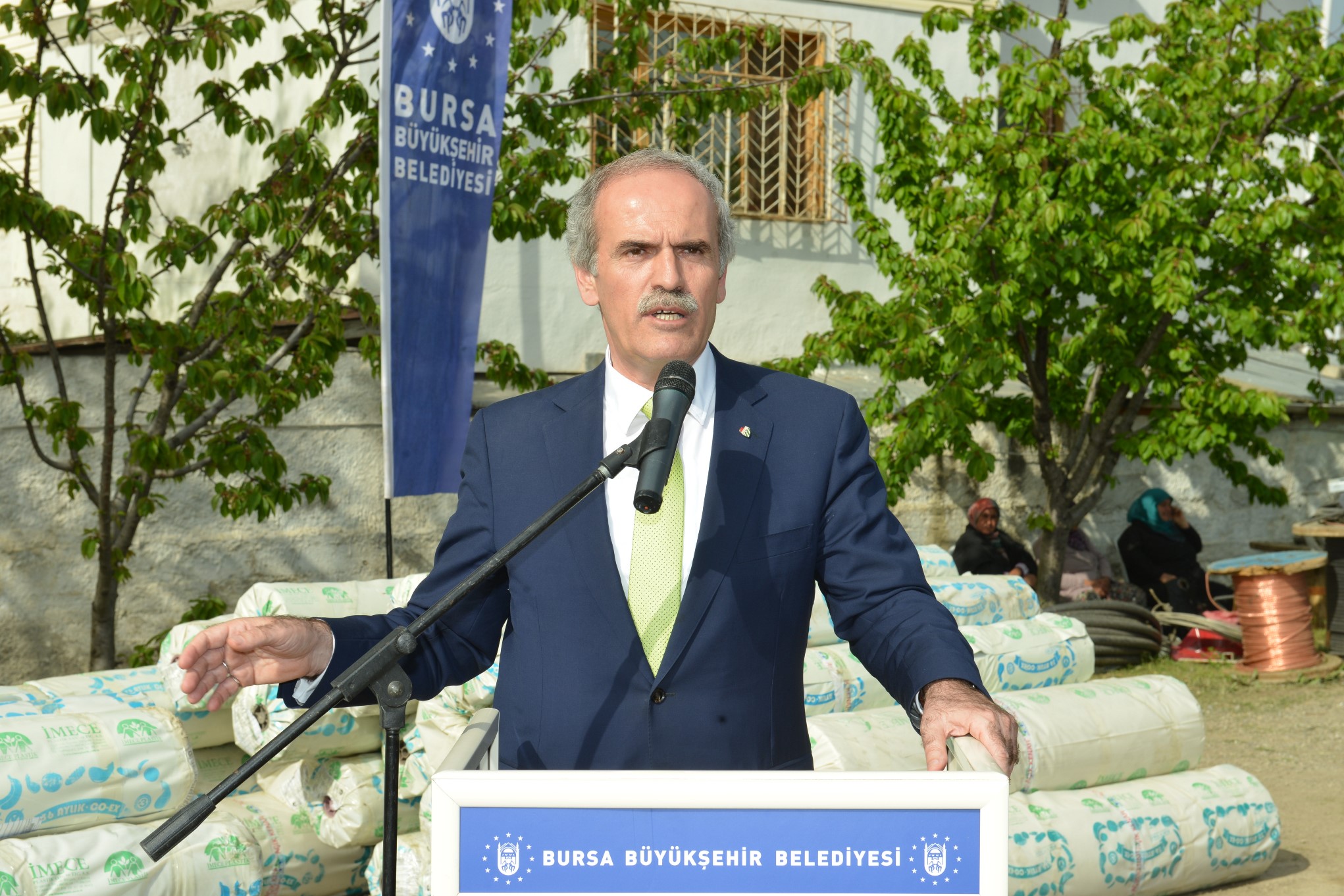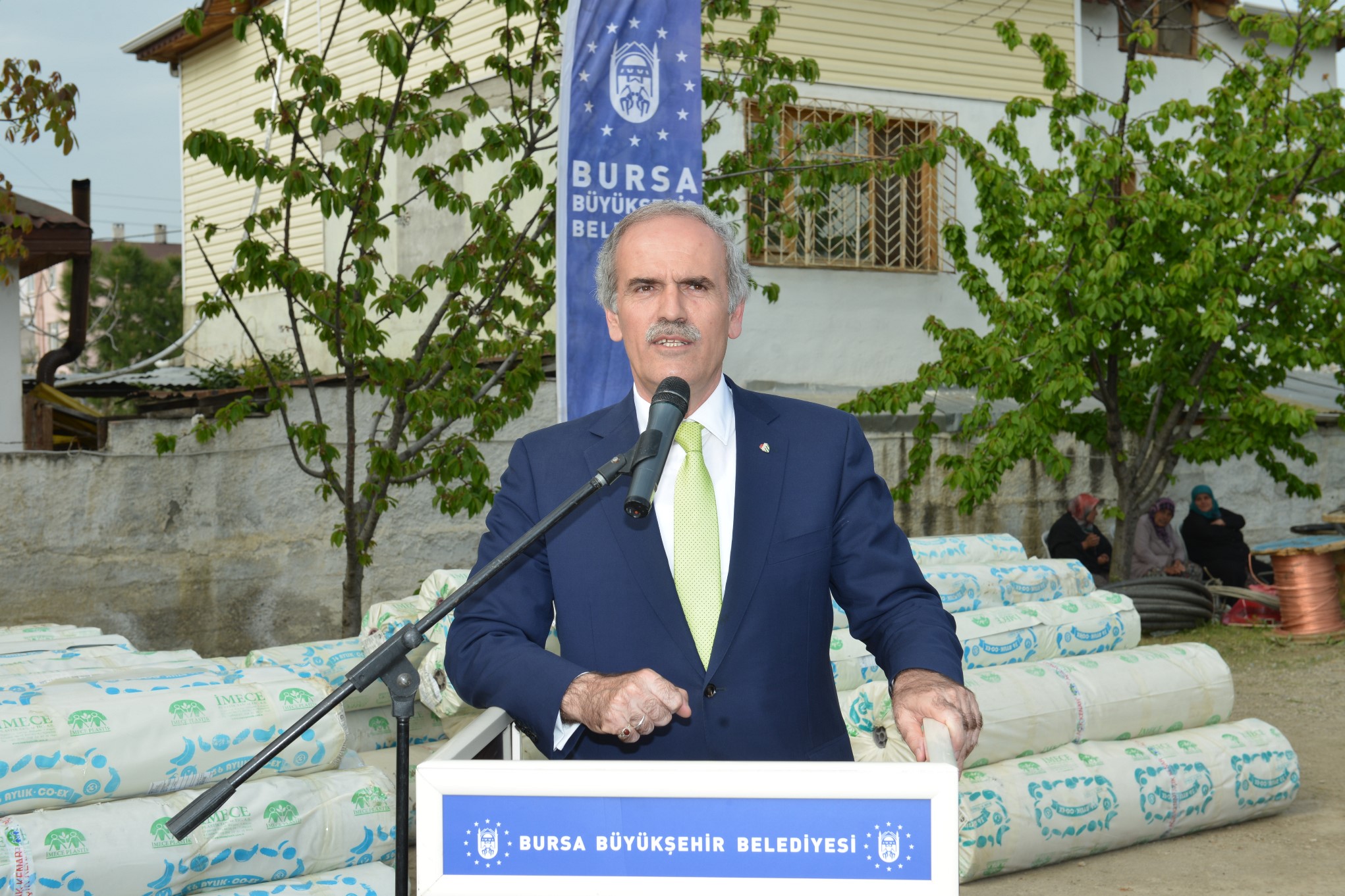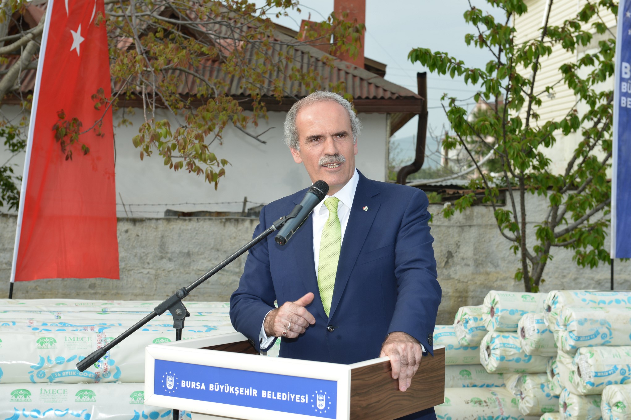 Sera naylonu dağıtımı için İznik’te tören düzenlendi. Büyükşehir Belediyesi Fen İşleri Şantiyesi’nde yapılan törene Başkan Altepe’nin yanı sıra İznik Belediye Başkanı Osman Sargın, İznik Muhtarlar Derneği Başkanı Yakup Sevinç ve sera üreticileri katıldı.