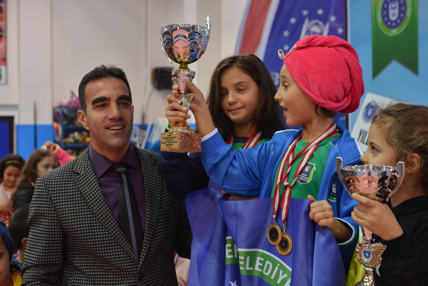 Bursa Büyükşehir´in minik kulaçları şampiyonluk kupasını Bursa Büyükşehir Belediyespor Kulübü Müdürü Taha Başparmak´tan alırken, törenin ardından aileleri ve takım arkadaşlarıyla bol bol hatıra fotoğrafı çektirdi.