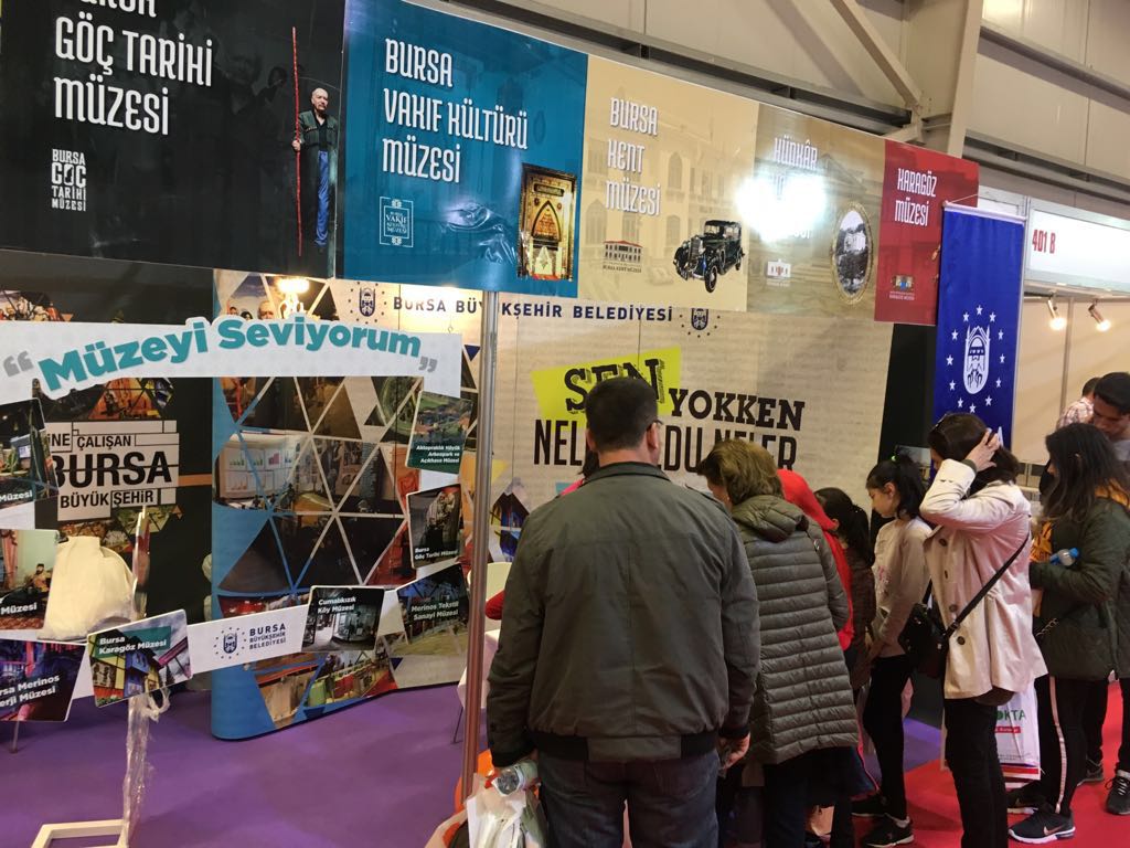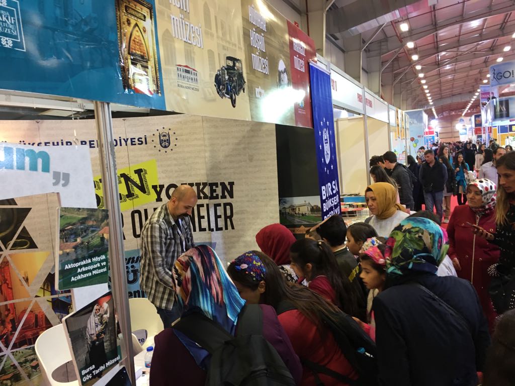 Büyükşehir Belediyesi Müzeler Şube Müdürlüğü bünyesinde faaliyetlerini sürdüren müzelerin tanıtımının yapıldığı ve Tekstil Sanayi, Vakıf Kültürü, Enerji, Göç Tarihi ve Karagöz müzelerindeki atölye çalışmalarının okurlarla buluştuğu stant, yoğun ilgi gördü. Fuarın girişinde yer alan standı ziyaret edenler, kendi elleriyle keçeden koyun şeklinde notluklarını, azık torbası ve bavullarını tasarlayıp, kumaş üzerine geleneksel taş baskı yapımını öğrendi. Katılımcılar ayrıca, Vakıf Kültürü Müzesi’nin atölye çalışması ile Kuş Evi ve Yeşil Türbe maketleri yaptı. Minik öğrenciler, stantta en çok rüzgârgülü ve mum yapımı atölyelerine ilgi gösterdi. Karagöz Müzesi’nin atölye çalışmaları ise çocuklar kadar büyüklerin de ilgisini çekti. Fuarın açıldığı günden bu yana belirli saat aralıklarında yapılan atölye çalışmalarına, binin üzerinde ziyaretçi katıldı. Büyükşehir Belediyesi’nin kent belleğine ilişkin yayınlarının tanıtımının da yapıldığı stantta bulunan hatıra çerçeveleri ile görsel materyaller de fuara ayrı bir renk kattı.