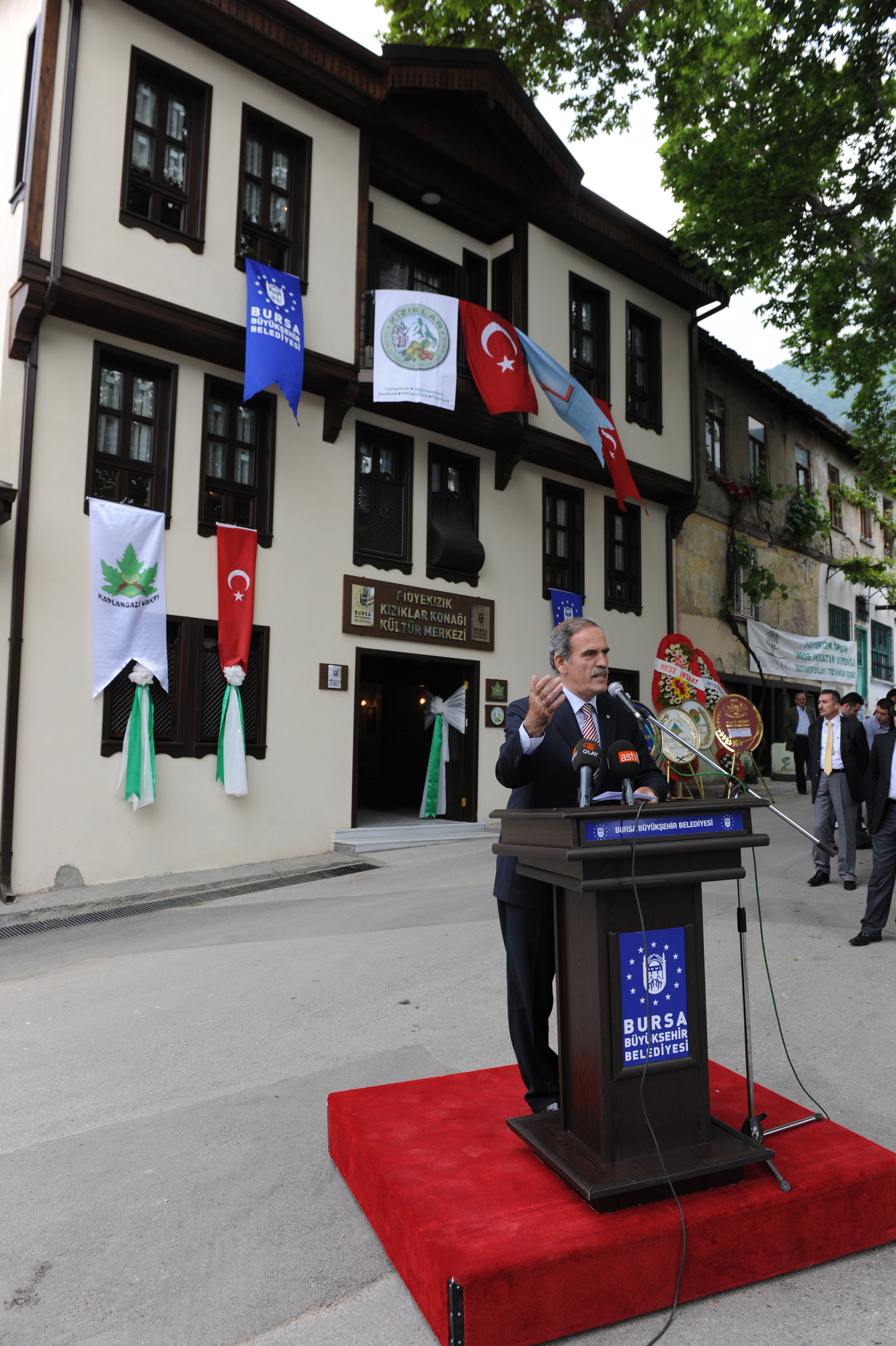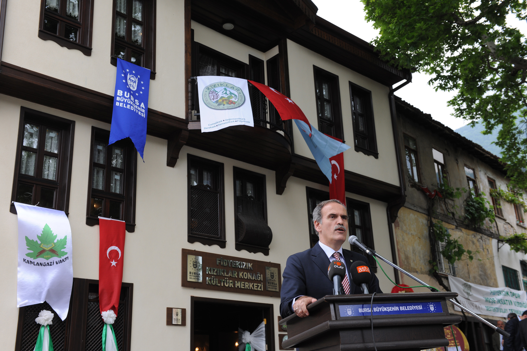 Tarihi konağın açılış töreninde konuşan Büyükşehir Belediye Başkanı Recep Altepe, tarihin Bursa’ya bir armağanı olan Kızıklar’dan günümüze ulaşan Hamamlıkızık, Cumalıkızık, Derekızık, Değirmenlikızık ve Fidyekızık’ın sahip oldukları özgün yapıları ve değerleriyle gelecek kuşaklara taşınması için gerekli çalışmaları yaptıklarını söyledi. Cumalıkızık’taki müzenin yeniden düzenlenmesi, Hamamlıkızık Hamamı’nın restorasyonu, Derekızık meydanı gibi çalışmalarla bu bölgelerin tarihi ve kültürüyle daha yaşanılabilir mekanlar haline gelmesini hedeflediklerini kaydeden Başkan Altepe, “Fidyekızık’taki bu sivil mimarlık örneği yapı hayırsever Tahir Bıyıklıoğlu tarafından belediyemize bağışlandı. Bursa bu açıdan da örnek bir kent. Sadece kamu yatırımları değil, hayırseverlerimiz ve kente karşı kendini sorumlu hisseden vatandaşlarımızın katkılarıyla her bölgeye yeni hizmetler ulaştırılıyor. Hayırsever ve belediye işbirliğiyle hayata geçirdiğimiz bu kültür merkezi hem Kızık kültürünü en iyi şekilde gelecek kuşaklara taşıyacak hem de bölge halkının yeni bir buluşma noktası olacak” diye konuştu.