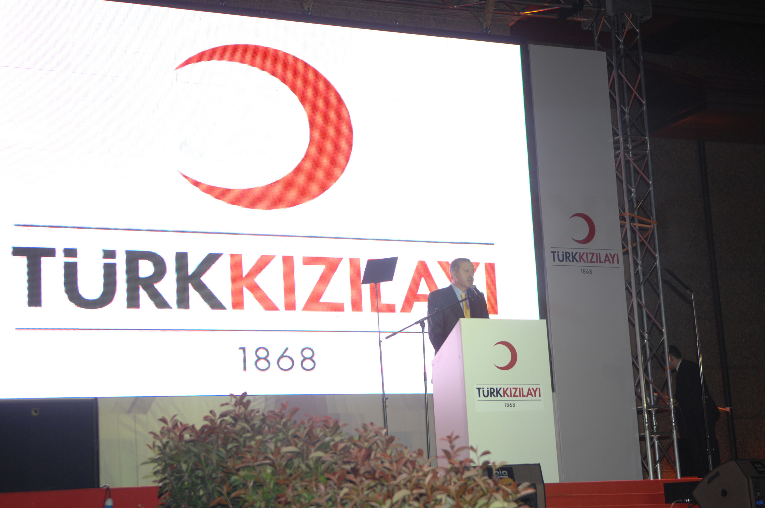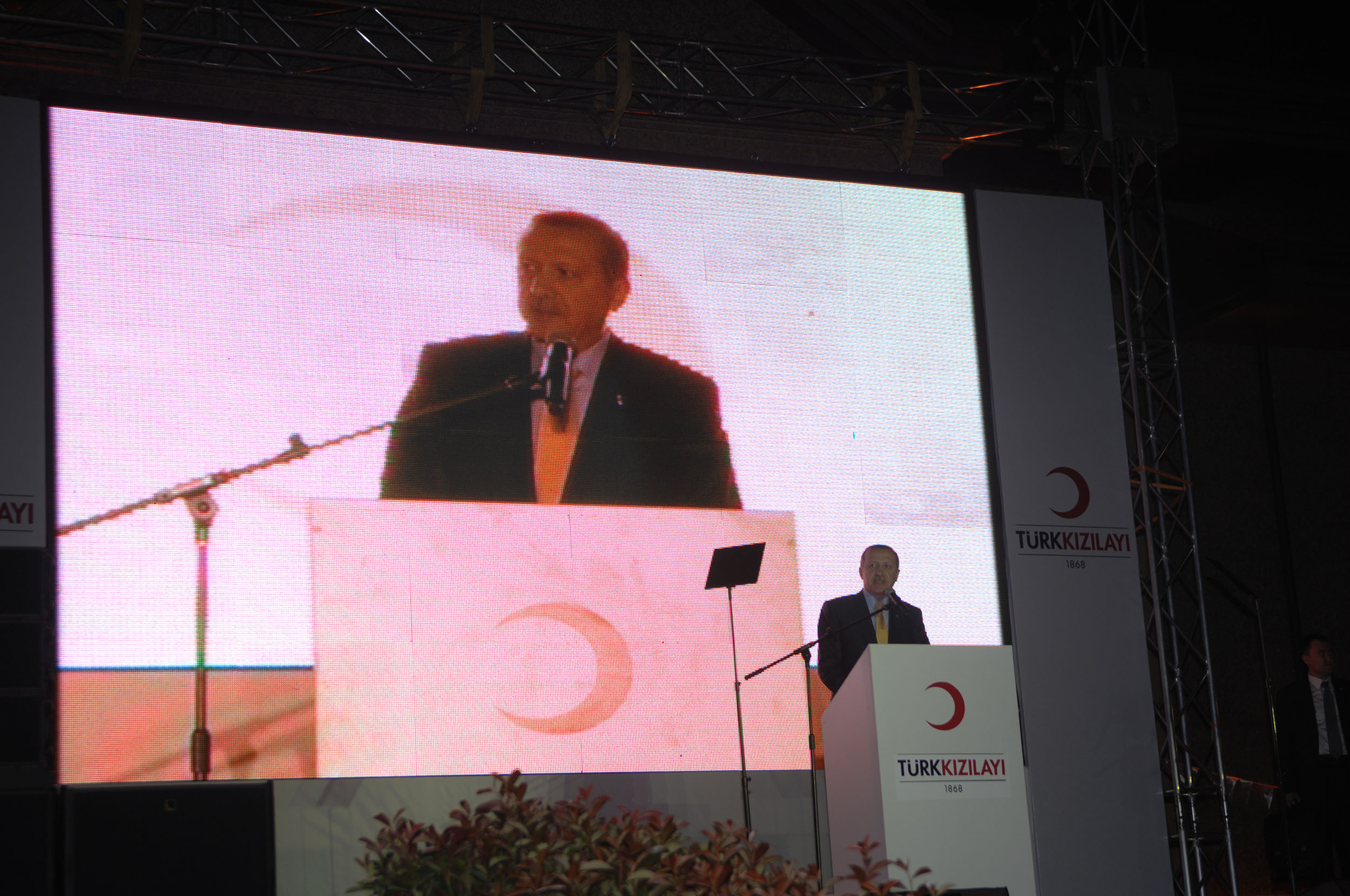 İftarın ardından kürsüye çıkan Başbakan Erdoğan, gittiği birçok ülkede, ay yıldızlı bayrağımızın yanında dalgalanan Türk Kızılayı bayrağını görmekten ayrı bir gurur, ayrı bir şeref, ayrı bir heyecan duyduğunu belirterek, "O kırmızı hilal, hiç kimsenin giremediği, ulaşamadığı, varamadığı, ulaşsa bile kalamadığı yerlerde, coğrafyalarda çok büyük bir kahramanlıkla, büyük bir dirayetle tutundu" dedi. Erdoğan, Pakistan´da meydana gelen deprem ve sel felaketlerinin ardından Pakistanlı yetkililerle aynı anda Kızılay´ın afet bölgelerine ulaştığını belirterek özetle şunları söyledi: