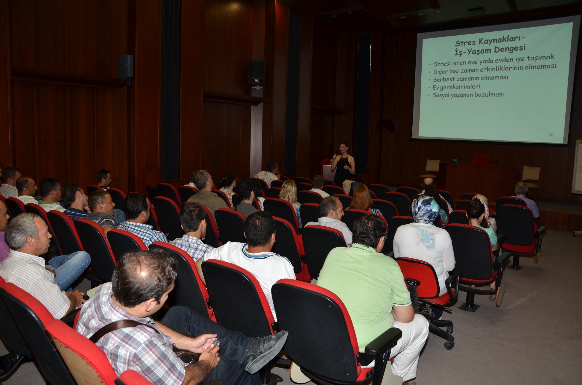 BUSKİ Genel Müdürlüğü İnsan Kaynakları ve Destek Hizmetleri Dairesi Başkanlığı tarafından BUSKİ konferans salonunda düzenlenen seminere Acıbadem Bursa Hastanesi doktorlarından Uzman Psikolog Dilara Kızılçay konuşmacı olarak katıldı. Kızılçay, örneklerle yaptığı sunumunda stresten arındırılmış bir hayatın imkansızlığına işaret etti. Stresle etkin biçimde mücadele edebilmenin önemli olduğunu belirten Kızılçay, “Hayattan beklentilerimizi ne denli yüksek tutarsak, stresi de hayatımıza o oranda buyur etmiş oluruz. İnsanın her zaman çevresindekiler tarafından sevilip kabul görmesi mümkün değildir. Eğer biz toplum içerisindeki davranışlarımızı, çevremizdeki herkesin bizi sevip değer vermesi doğrultusunda koşullandırıp, etrafımızda bir sevgi çemberi oluşturmaya yönlendirirsek, bu gayretimizin hüsranla sonuçlanacağını da önceden kabullenmemiz gerekir. Şu bir gerçek ki bakış açıları ve değer yargıları, kişiden kişiye farklılıklar gösterir. Bu durumda, düşünce frekansımız ve kişisel beğenilerimizin uzağındaki insanlardan, bizi benimsemelerini beklememiz, bir stres girdabının içerisine sürüklenmemiz sonucunu da beraberinde getirecektir” diye konuştu.