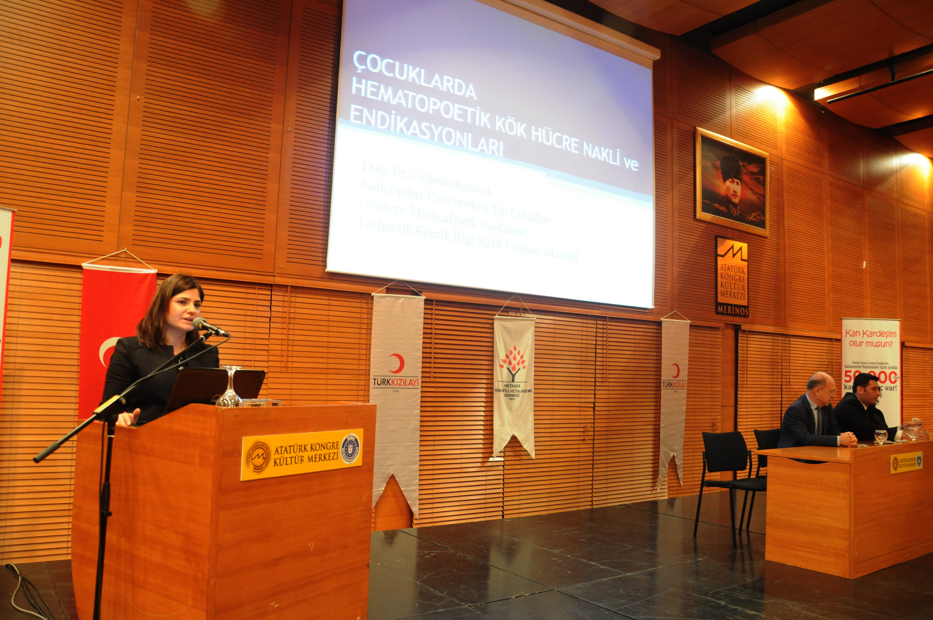 Açılış konuşmalarının ardından Bahçeşehir Üniversitesi Tıp Fakültesi’nden Prof. Dr. M. Akif Yeşilipek ‘kordon kanı’, Bahçeşehir Üniversitesi Tıp Fakültesi’nden Doç. Dr. Gülsün Karasu ‘kemik iliği’, Kan Hizmetleri Genel Müdürlüğü Kök Hücre Koordinasyon Merkezi Proje Yöneticisi Dr. Savaş Koç ise ‘Türkök Kök Hücre çalışmalarının geldiği son durumu’, Talasemi hasta annesi Belkıs Günlük ise yaşadıklarını anlattı.
