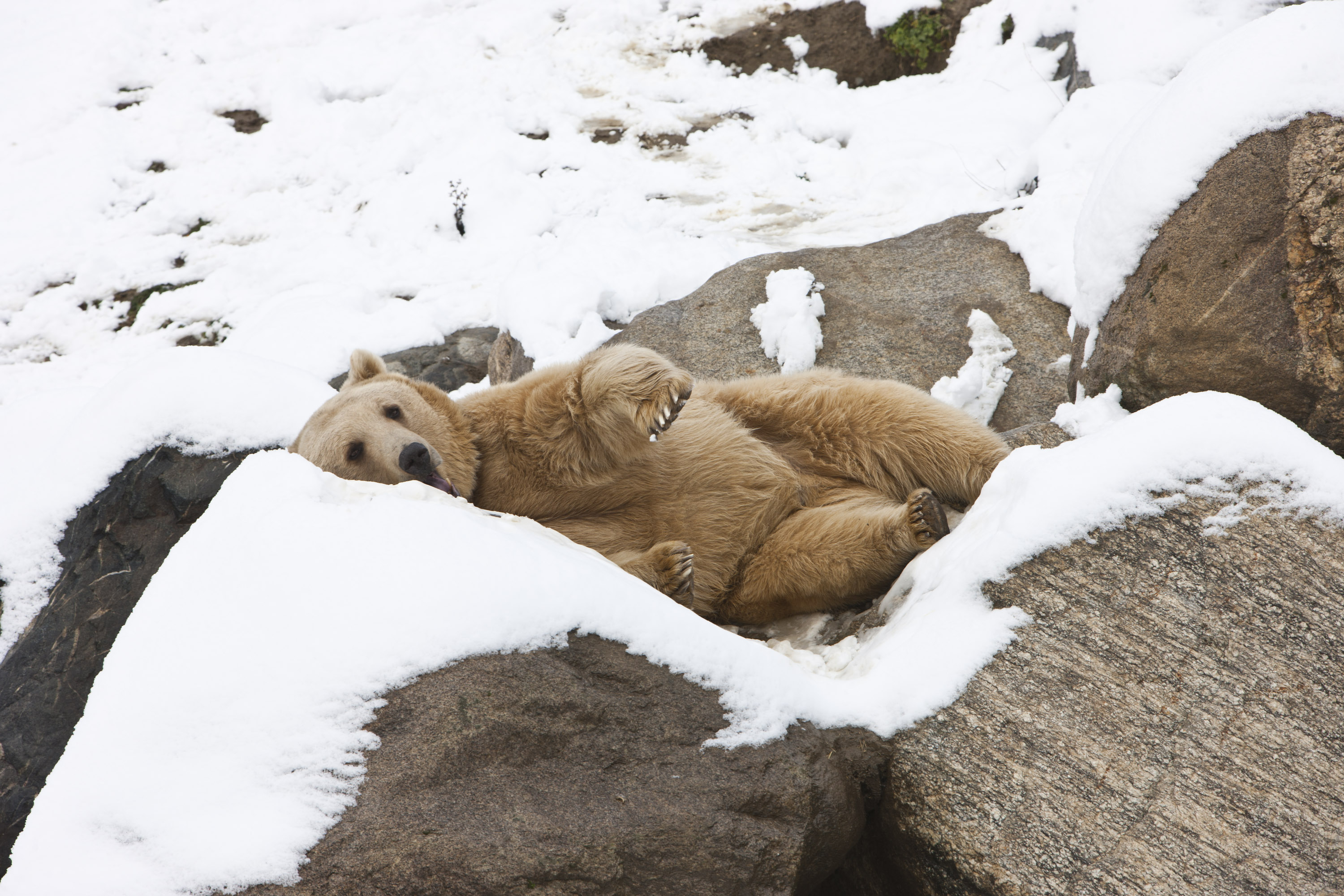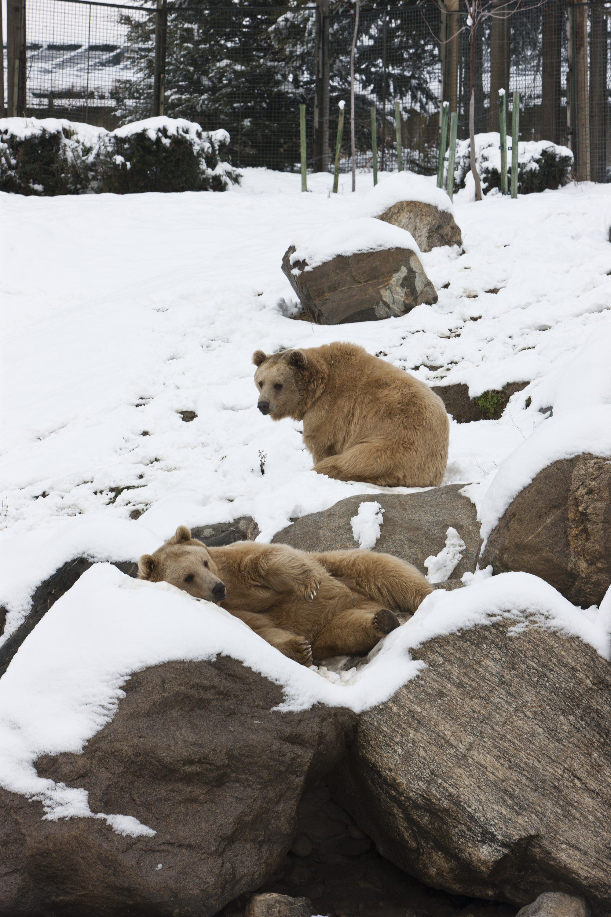 Beslenmeden barınmaya tüm ihtiyaçlarıyla yakından ilgilenilen hayvanlar, doğadaki türlerine göre konforlu bir hayatın keyfini sürüyor. Doğada 3 ile 7 aya yayılmış bir dönemi uyku halinde geçiren, mevsime göre Kasım-Aralık aylarında uykuya yatıp, Mart ile Nisan arasında uyanan ayılar, hayvanat bahçesindeki konfor sayesinde kış uykusunu unuttu. Günlük besin ihtiyaçları karşılanan, enerji takviyeli gıdalar sayesinde vücut ısıları fazla düşmeyen ayılar, ziyaretçilerini kar üstünde güneşlenerek karşılıyor.