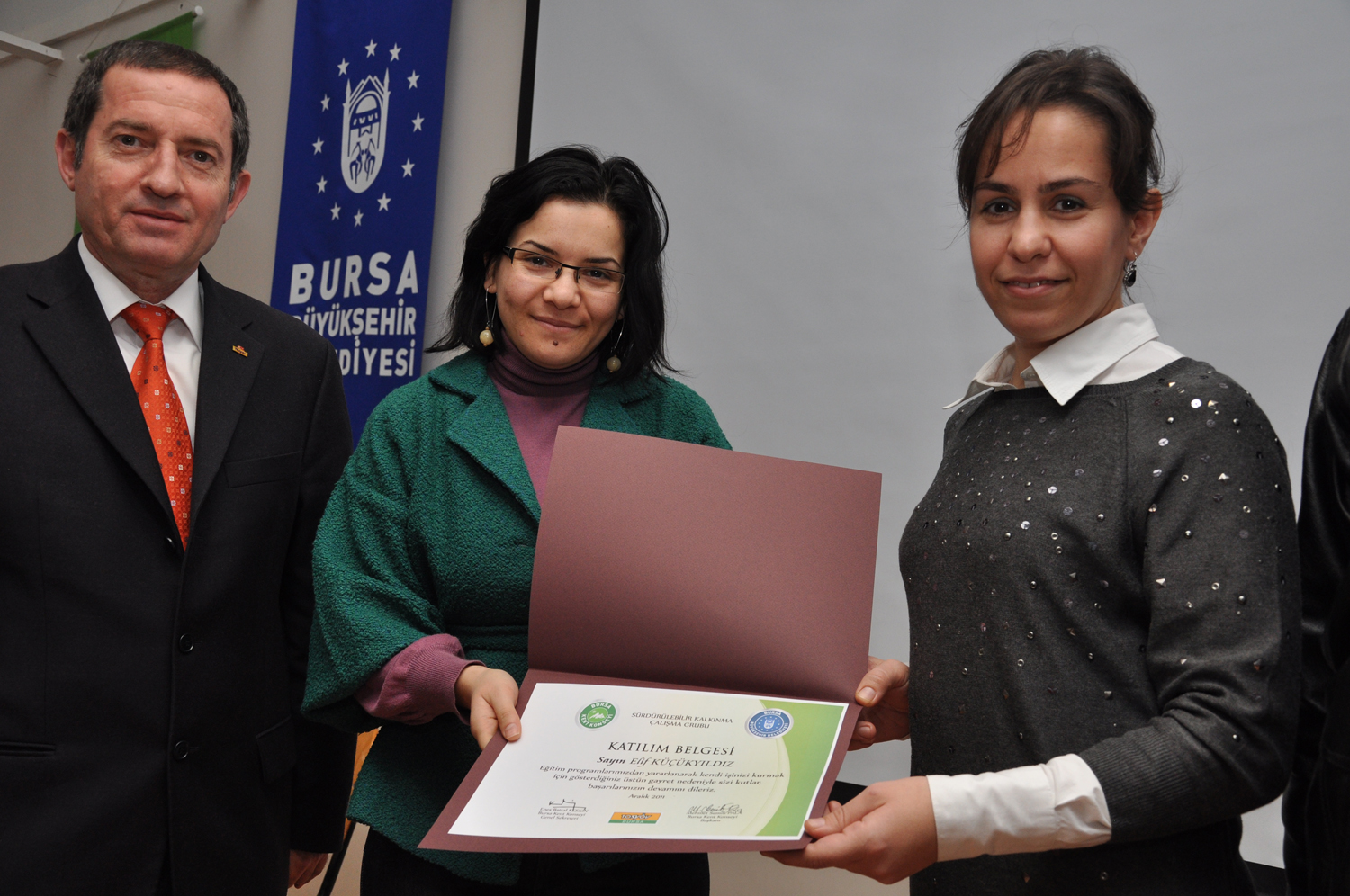 Programında sonunda Bursa Kent Konseyi Genel Sekreter Yardımcısı Ayşe Hacıoğlu, Yerel Gündem Şube Müdürvekili Yasemin Tatlı, Sürdürülebilir Kalkınma Çalışma Grubu Temsilci Yardımcısı Habil Duran, Eğitmen Sanem Cengiz Şatır ve TOSYÖV yöneticileri tarafından kursiyerlere katılım belgesi verildi.