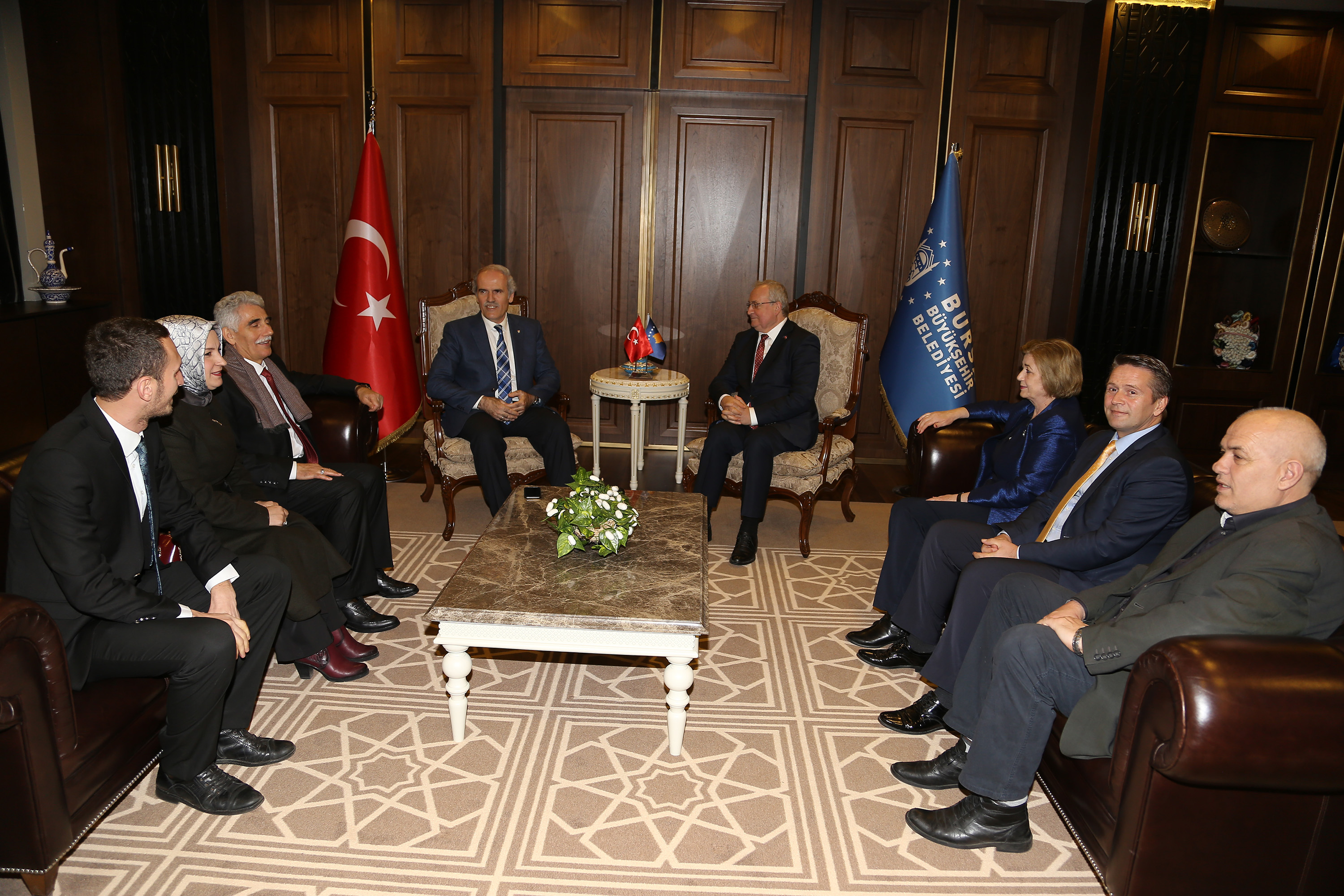 - ANKARA YOLU’NDAKİ BAŞKANLIK MERKEZİNDE GERÇEKLEŞEN GÖRÜŞMEDE, TÜRKİYE İLE KOSOVA ARASINDAKİ İLİŞKİLER VE BURSA’NIN BU İLİŞKİLERDEKİ ROLÜ GÜNDEME GELDİ.