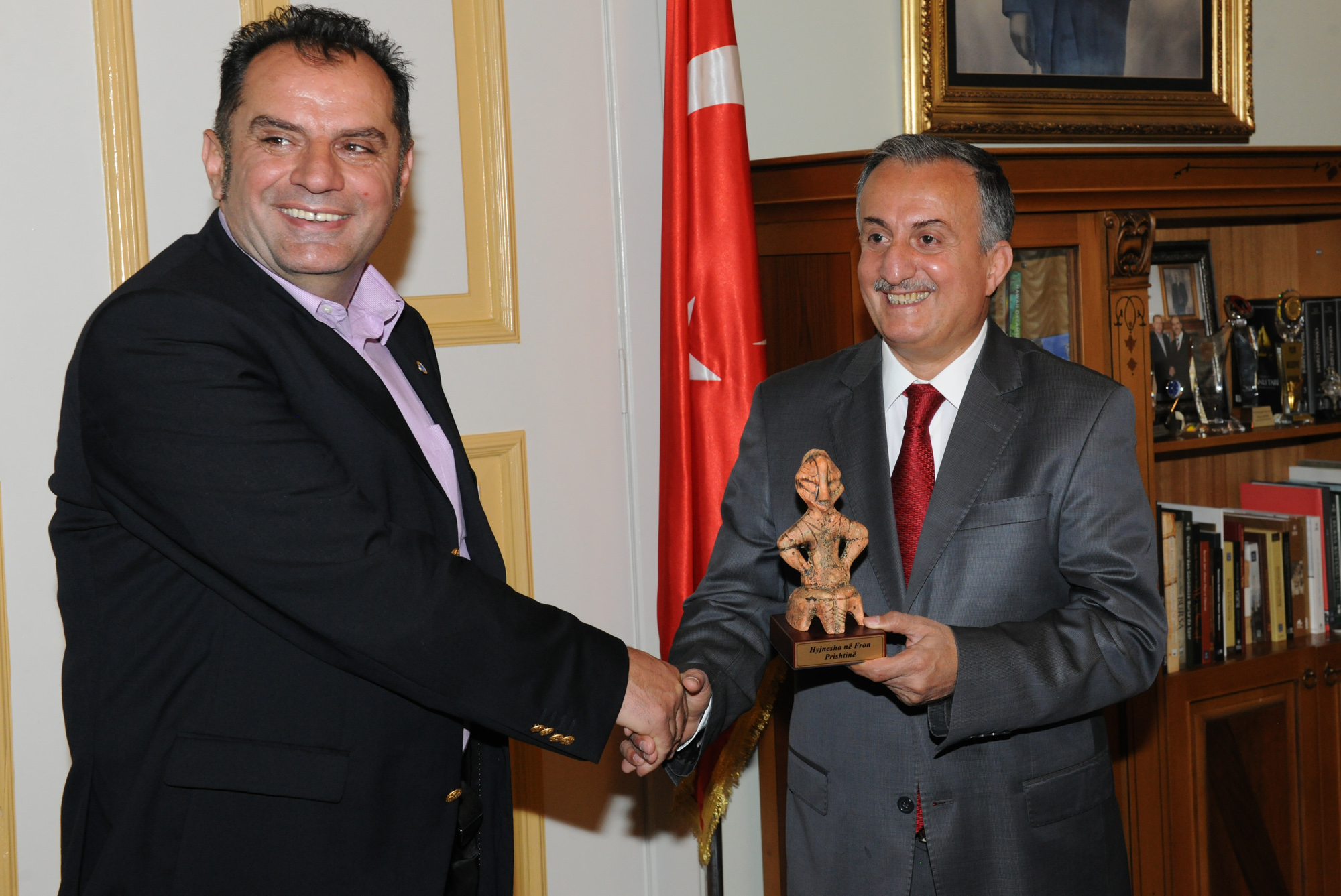 Başkan Karadağ, ziyaret sonrasında misafirlerine Bursa´nın sembollerinden Hacivat ve Karagöz´ün camdan plaketi ile birer Bursa bıçağı hediye etti. Konuk heyet adına Kosova Cumhuriyeti Diaspora Bakanlığı Diaspora Yatırımları Genel Müdürü Naim Dedushaj da Başkan Karadağ´a, Kosova´nın kurtuluş mücadelesinde Sırplar´ın elinden alınan toplumsal bir heykelin prototipini takdim etti.