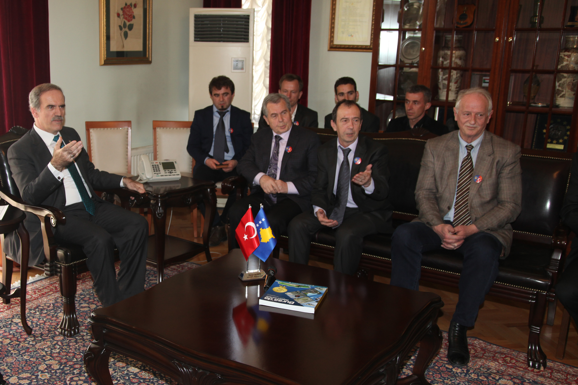Kosova ile Türkiye arasında ticari işbirliğini güçlendirmek üzere bir dizi temaslarda bulunmak için Bursa’ya gelen Mitroviça Belediye Başkanı Avni Kastrati, Başkan Yardımcısı Erol Zekeriya, Sanayi ve Ticaret Bakanlığı Ekonomi Müdürü Rüstem Abiti, İhracat Geliştirme Başkanı Remzi Ahmeti, Priştina Ekonomi Bölgesi Başkanı Nol Buzhala ve işadamlarından oluşan 19 kişilik heyet, Büyükşehir Belediye Başkanı Recep Altepe’yi ziyaret etti. Konuklarını Heykel’deki tarihi binada ağırlayan Başkan Altepe, Bursa’nın tarihi, sosyal ve ekonomik yapısı ile Balkanlar’da hayata geçirdiklerini çalışmalar hakkında bilgiler verdi.