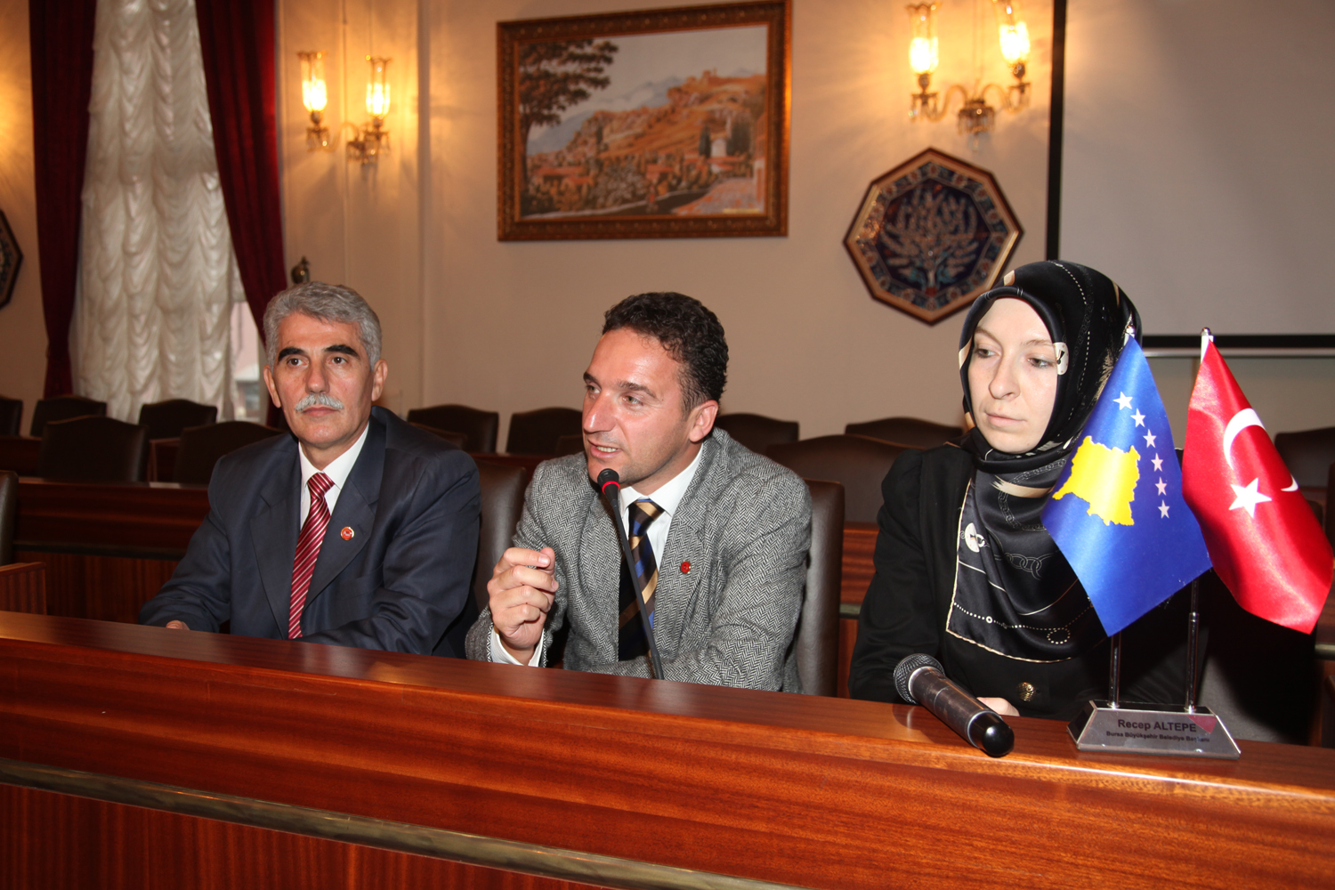 Büyükşehir Belediyesi Başkanvekili Atilla Ödünç, Kosova Cumhuriyeti Parlamento Meclis Başkanı Yakup Krasnigi’nin eşi Sevdie Krasnigi, Kosova Cumhuriyeti İçişleri Bakanı Bayram Rexhepi’nin eşi Shpresa Rexhepi ile beraberindeki belediye başkanları eşleri ve ziyaretçi grubunu tarihi meclis salonunda ağırladı. Kosova’nın genç bir ülke olduğunu ifade eden Krasnigi, 4 yıl önce bağımsızlığını kazanan Kosova’nın Türkiye´ye çok şey borçlu olduğunu ifade etti. Krasnigi, “İki ülke arasındaki ilişkilerin güçlü olması ailevi bağlardandır. Kosovalılar, Bursa’da 100 yıldır yaşıyor. Aynı kültürü paylaşıyoruz. Biz Sırplar’dan büyük eziyet gördük. O yıllardan sonra elimizden geleni yaparak toparlanmaya çalıştık” dedi.