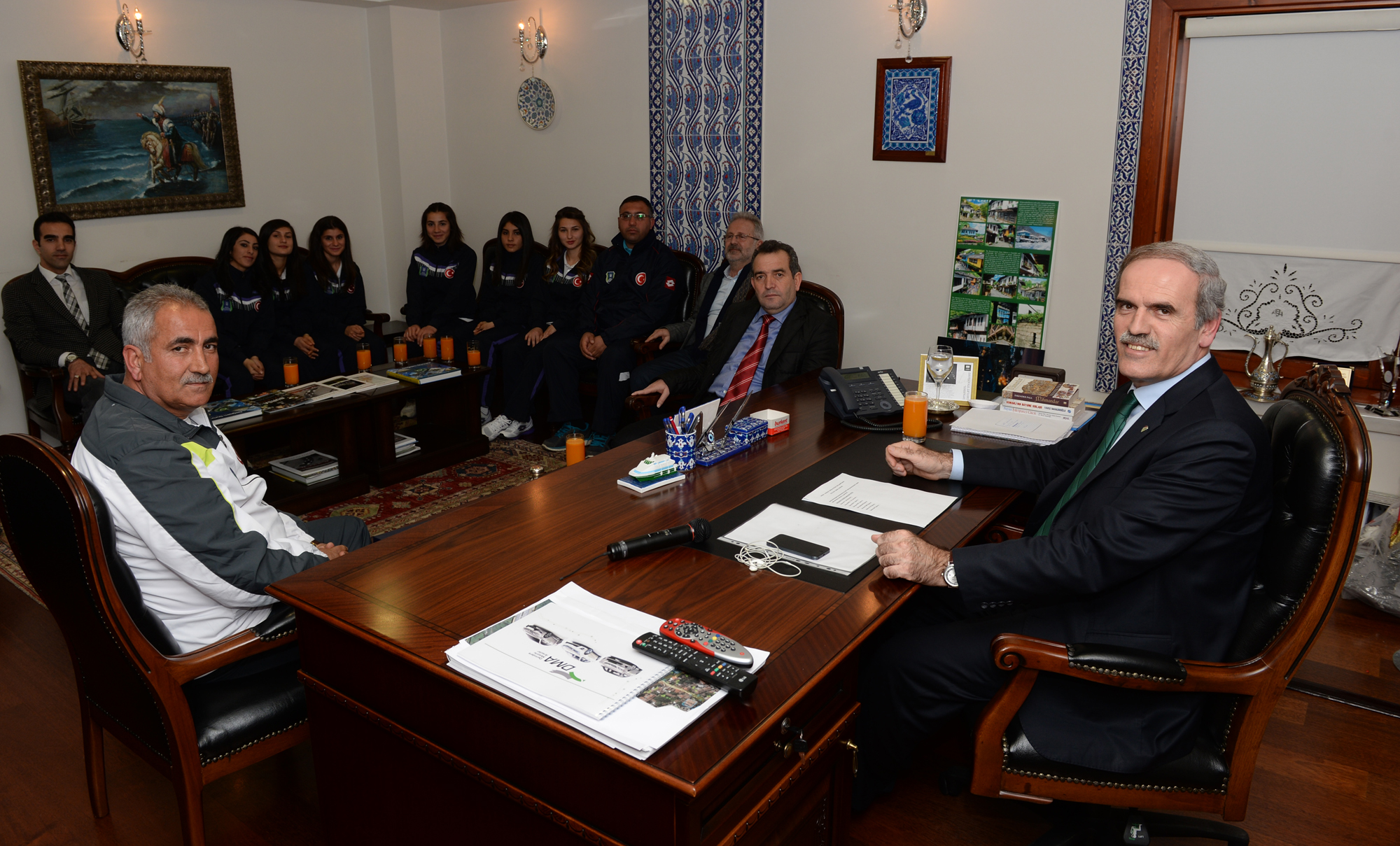 Başkan Altepe, krosun kraliçelerini Gönül Dostları Sofrası’ndaki başkanlık makamında ağırladı. Büyükşehir Belediyespor Kulüp Müdürü Taha Başparmak, Atletizm Şube Sorumlusu Muzaffer Karadeniz ve takımın Baş Antrenörü İshak Kaya’nın da katıldığı ziyarette Başkan Altepe, 6 bayan sporcuyu tebrik ederek birer Cumhuriyet altını taktı.