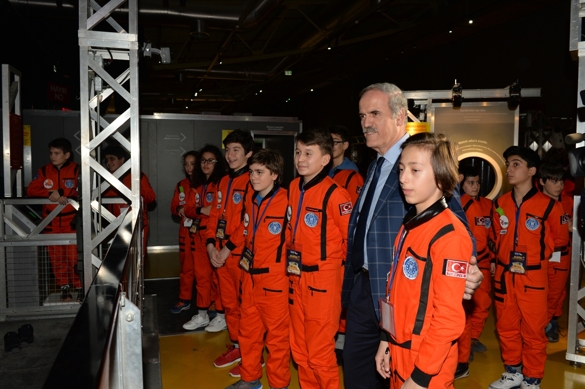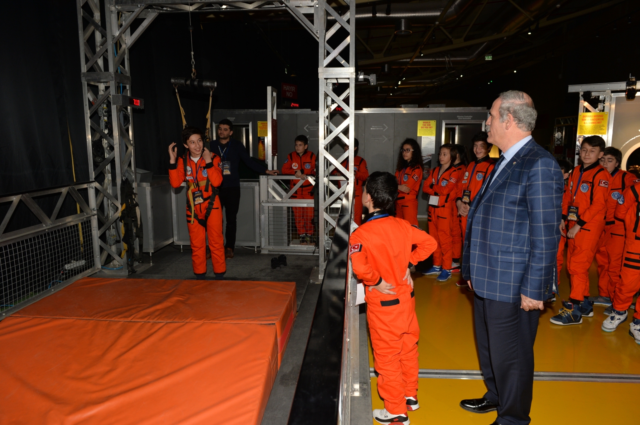 Bursa Büyükşehir Belediye Başkanı Recep Altepe ve BTSO Başkanı İbrahim Burkay’da küçük astronotları uzay yolculuğunda yalnız bırakmadı. Öğrencilerin hepsiyle yakından ilgilenip, sohbet eden Başkan Altepe, Türkiye’nin hedefleri olan bir ülke olduğunu ve bu hedeflere ulaşma yolunda Bursa’nın da lokomotif bir kent olduğunu vurguladı. Her alanda olduğu gibi uzay ve havacılıkta da Bursa’nın öncülük yaptığını ifade eden Başkan Altepe, “Bilim Teknoloji Merkezi sayesinde artık bilime meraklı bir nesil yetişiyor. Öğrencilerimiz teorik bilgilerini pratiğe dönüştürüyorlar. Uzay, gökyüzü ve astronomi ile her türlü sistemin bulunduğu bu ortamda geleceğin astronotları yetişmiş oluyor” dedi.