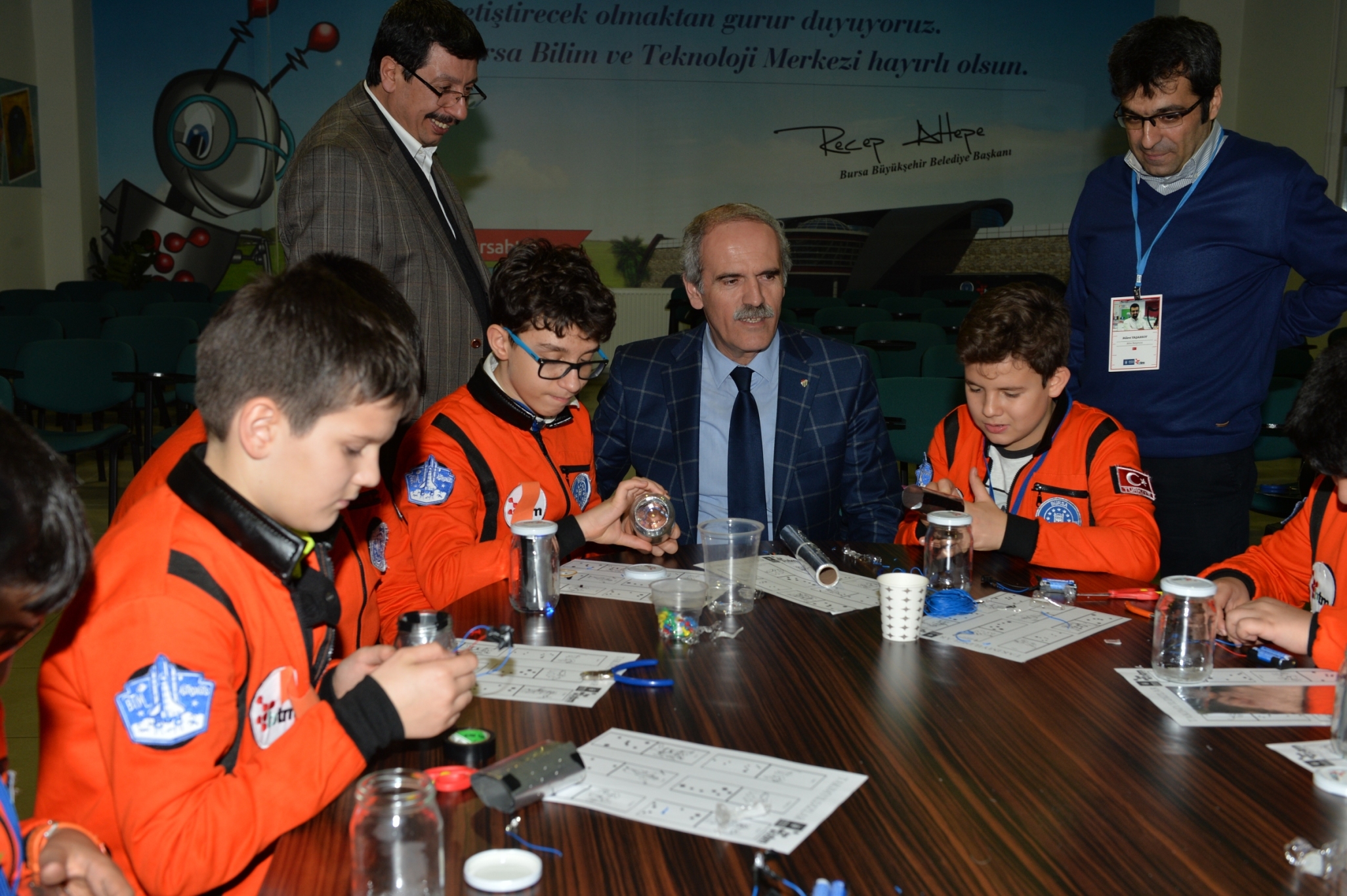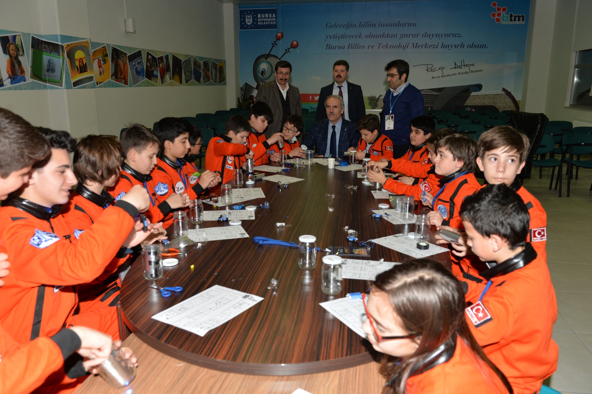 - BÜYÜKŞEHİR BELEDİYE BAŞKANI RECEP ALTEPE VE BTSO BAŞKANI İBRAHİM BURKAY DA ASTRONOT KIYAFETLERİYLE UZAY YOLCULUĞUNA HAZIRLANAN KÜÇÜK ASTRONOTLARI BTM’DE ZİYARET ETTİ.