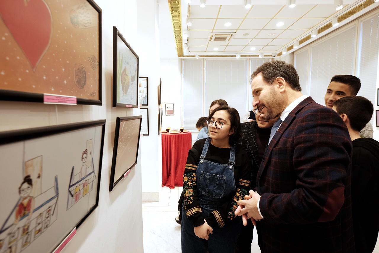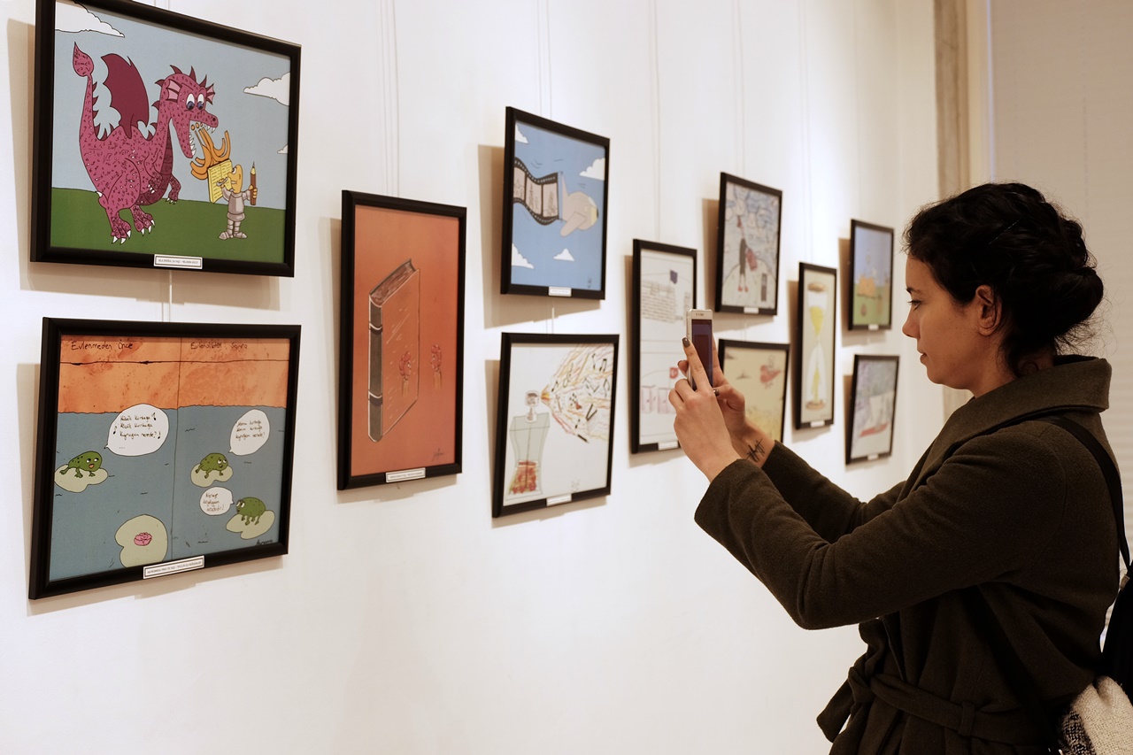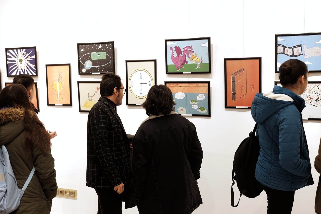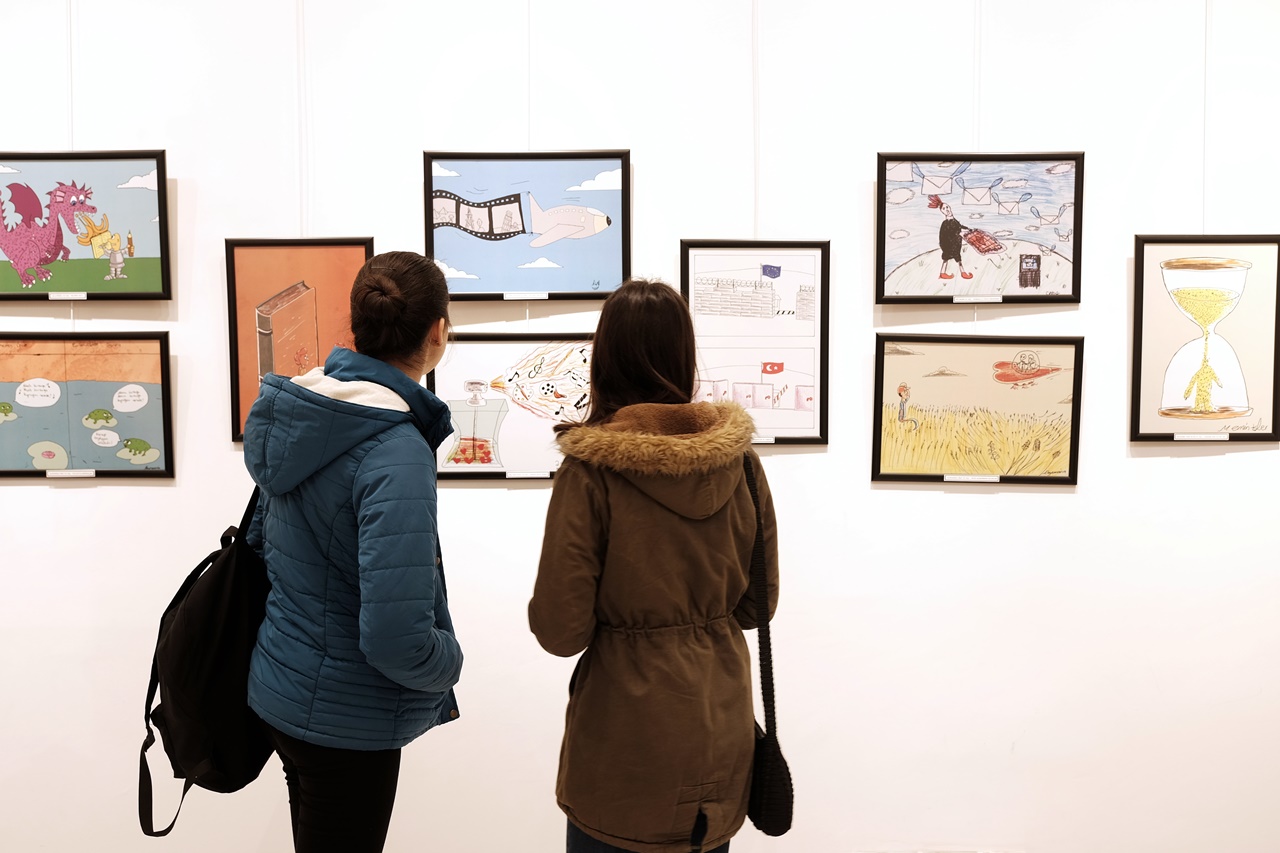 Açılışın ardından sergiyi gezen Kaldırım, eserlerin genç sahipleriyle sohbet etti ve karikatürler hakkında anlatılmak istenen fikirleri dinledi.