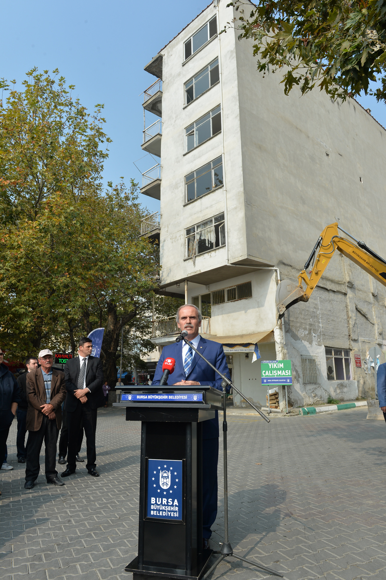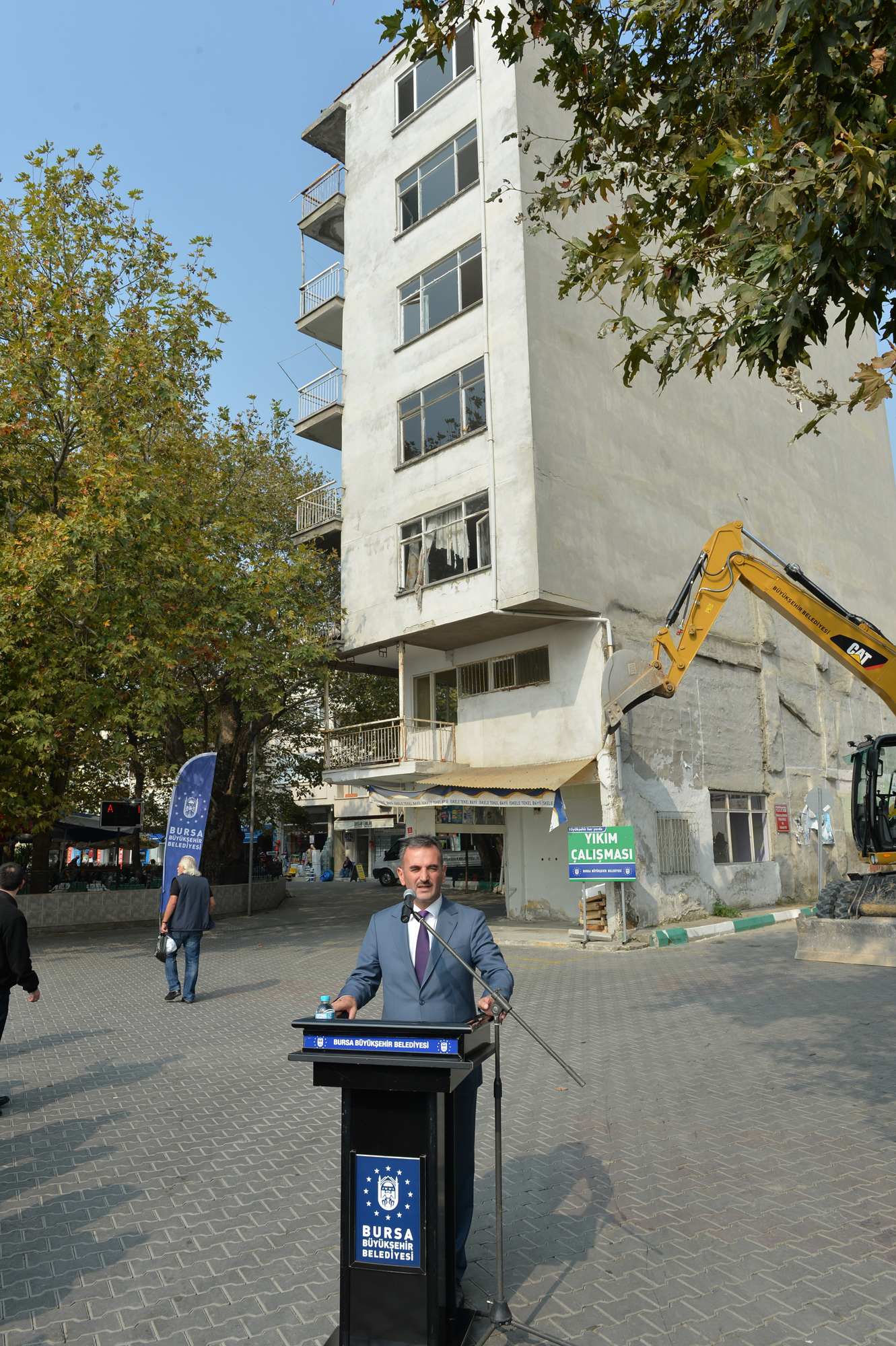Yıkım çalışmalarını Gemlik Belediye Başkanı Refik Yılmaz’la birlikte başlatan Büyükşehir Belediye Başkanı Recep Altepe, Gemlik’in şirin beldesi Küçükkumla’ya değer katacak bir meydan kazandırmak istediklerini söyledi. Yıkımı yapılan ikinci binayla Küçükkumla’nın daha sağlıklı, yaşanabilir hale gelmesinin adımlarından birinin daha atıldığını belirten Başkan Altepe, “Daha önce buranın hemen yanında bulunan binanın yıkımını gerçekleştirmiştik. Bugün de 7 katlı, 4’ü dükkan 16 daireli binayı daha yıkıyoruz. İnşallah bu yıkımlar, şimdiden sonra burada yapacağımız düzenlemelerin başlangıcı olacak. Hayırlı uğurlu olsun” dedi.