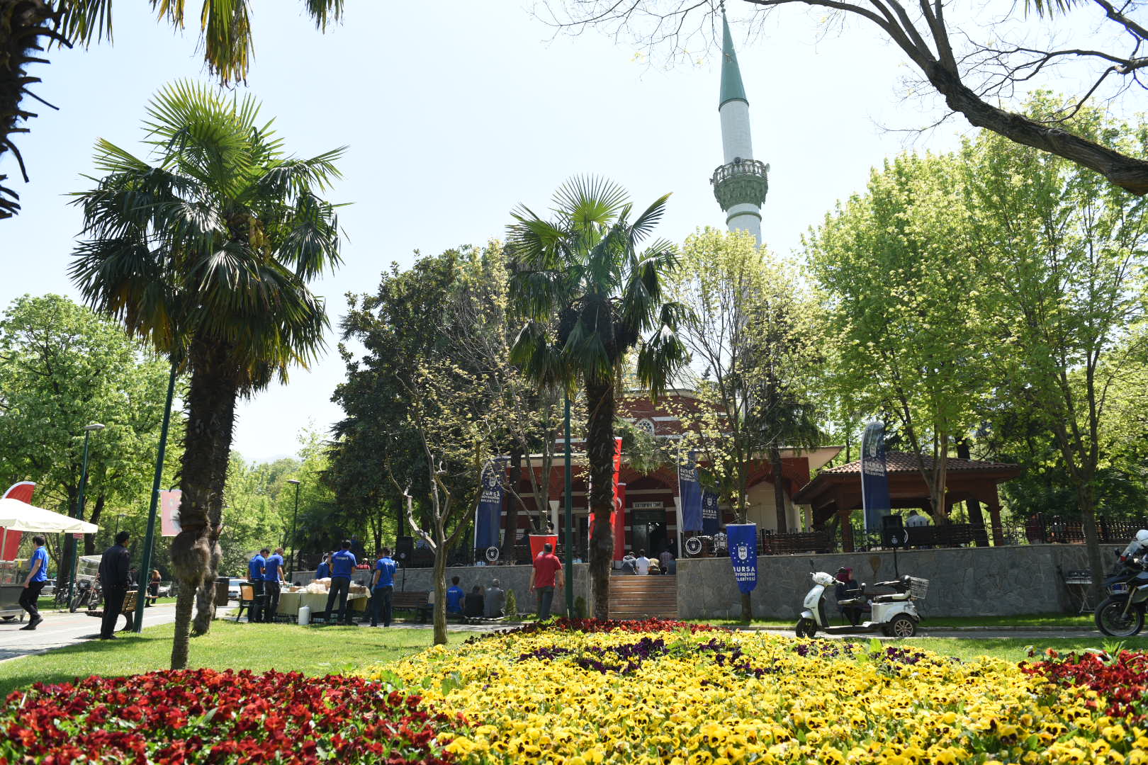 Başkan Altepe, Kültürpark’ın bir etkinlik merkezi haline geleceğini belirterek, “Bursa’ya dışardan gelen turistlerin de çok takdir ettiği bir mekan olacak, Kültürpark. En önemlisi, cami yazın yetersiz kalıyordu. Biz de Büyükşehir Belediyesi olarak camide çevre düzenlemesi yaptık, güzel oldu. Cami avlusu genişletildi, şadırvanla birlikte bir bütünlük sağlandı. Çalışmalar kapsamında mevcut cami avlusunun zemin kotu yükseltildi, çevre perde duvar yapıldı, zemin traverten mermer kaplandı ve duvar üzeri ferforje korkuluk yapıldı. Bu haliyle caminin kapasitesi de yeterli hale geldi” diye konuştu.