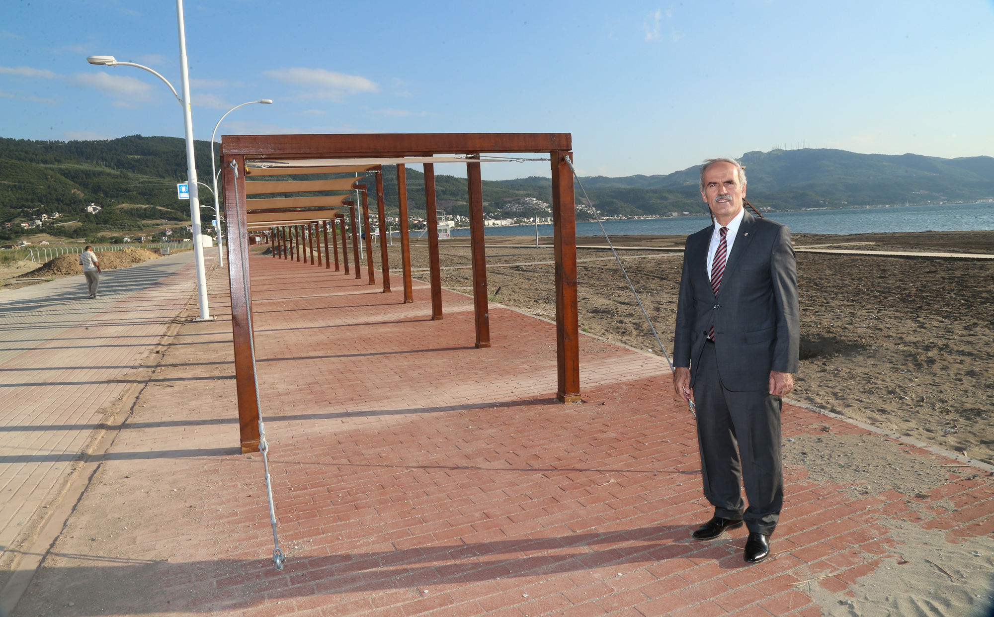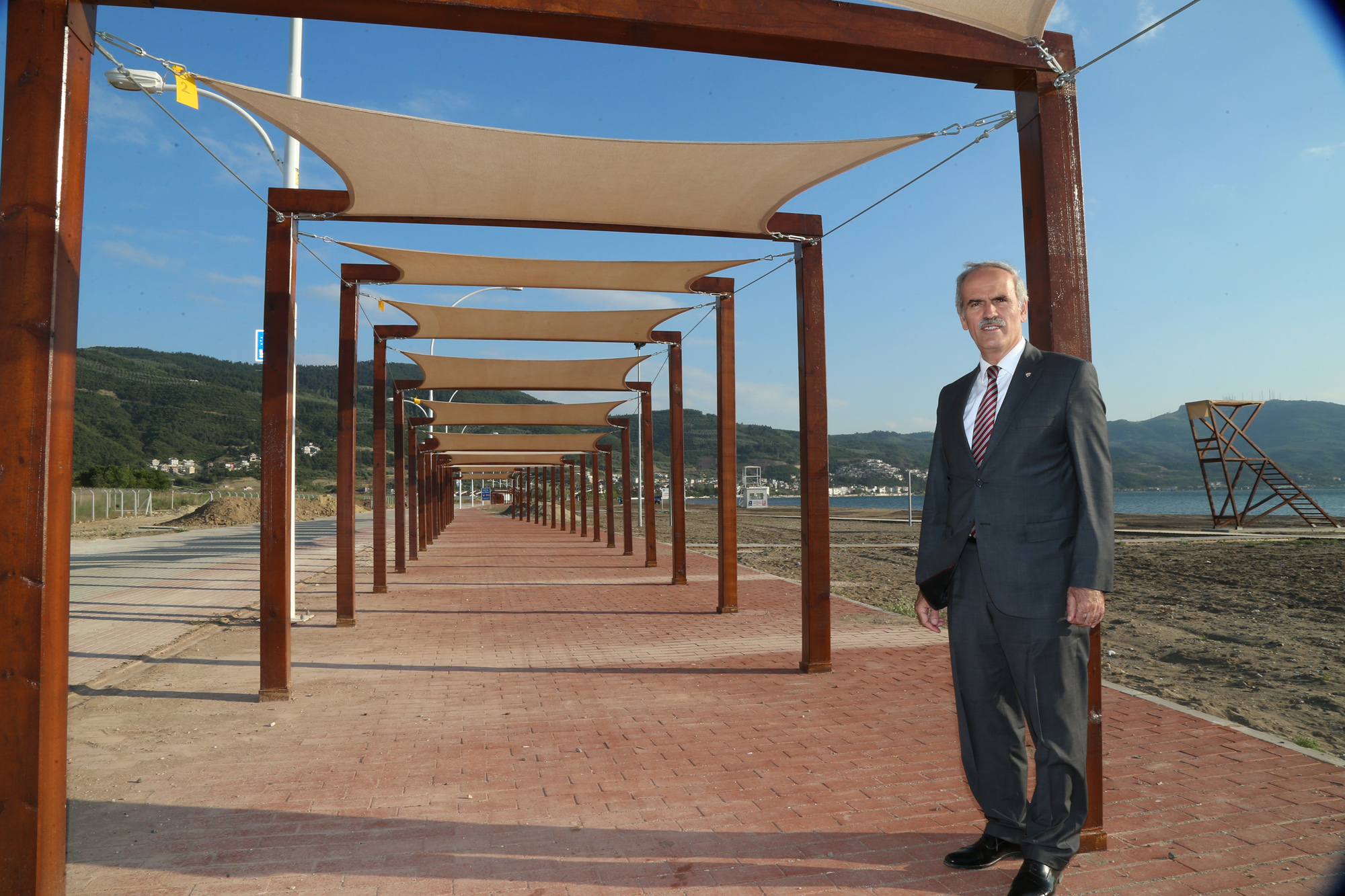 BURSA - Bursa Büyükşehir Belediyesi tarafından yapılan sahil düzenleme çalışmaları ile gerçek anlamda bir sahil beldesi kimliğine bürünen Kumsaz, bu yaz vatandaşlara daha kaliteli ve konforlu tatil imkanı sunacak. Büyükşehir Belediye Başkanı Recep Altepe, oturma alanları, yürüyüş ve bisiklet yolları, kafeteryaları, gölgelikler ve duş alanları ile Kumsaz bölgesinde yaklaşık 100 bin metrekarelik alanda yapılan çalışmalarla güzel bir plaj oluştuğunu söyledi.