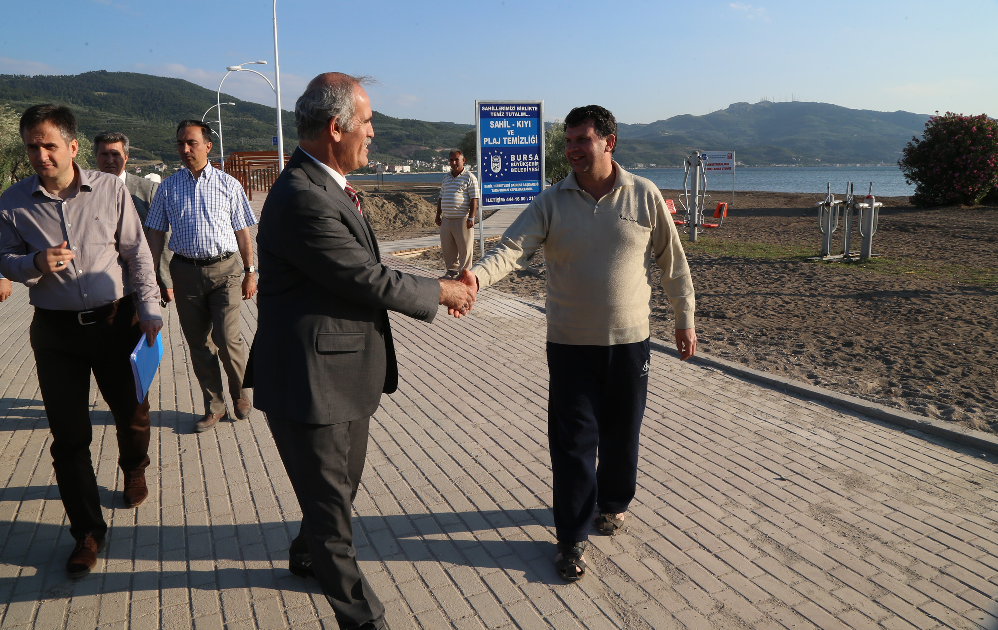 Kumsaz sahillerindeki çalışmaları yerinde inceleyen Büyükşehir Belediye Başkanı Recep Altepe, Gemlik Narlı’dan Karacabey Kurşunlu’ya kadar 115 kilometrelik sahil şeridinin tümüyle elden geçirildiğini söyledi. Tüm sahillerin oya gibi işlendiğini dile getiren Başkan Altepe, “Halkımızın plajlardan, denizlerden iyi şekilde yararlanabilmesi, tatilini en güzel şekilde geçirmesi için her türlü çalışmayı yapıyoruz. Kumsaz’da da 10’larca yıldır bölge halkının büyük bir beklentisi var. Bu çalışmaları yapmak da bize nasip oldu. Bölgeye kazandırdığımız kafeteryalardan birinin kapalı alanı 500 metrekareyi buluyor. Bu yaz Kumsaz’a gelenler bambaşka bir tablo ile karşılaşacak. Oturma alanları, yürüyüş ve bisiklet yolları, kafeteryaları, gölgelikler ve duş alanları ile Kumsaz bölgesinde yaklaşık 100 bin metrekarelik alanda yaptığımız çalışmalarla güzel bir plaj oluşturduk” dedi.
