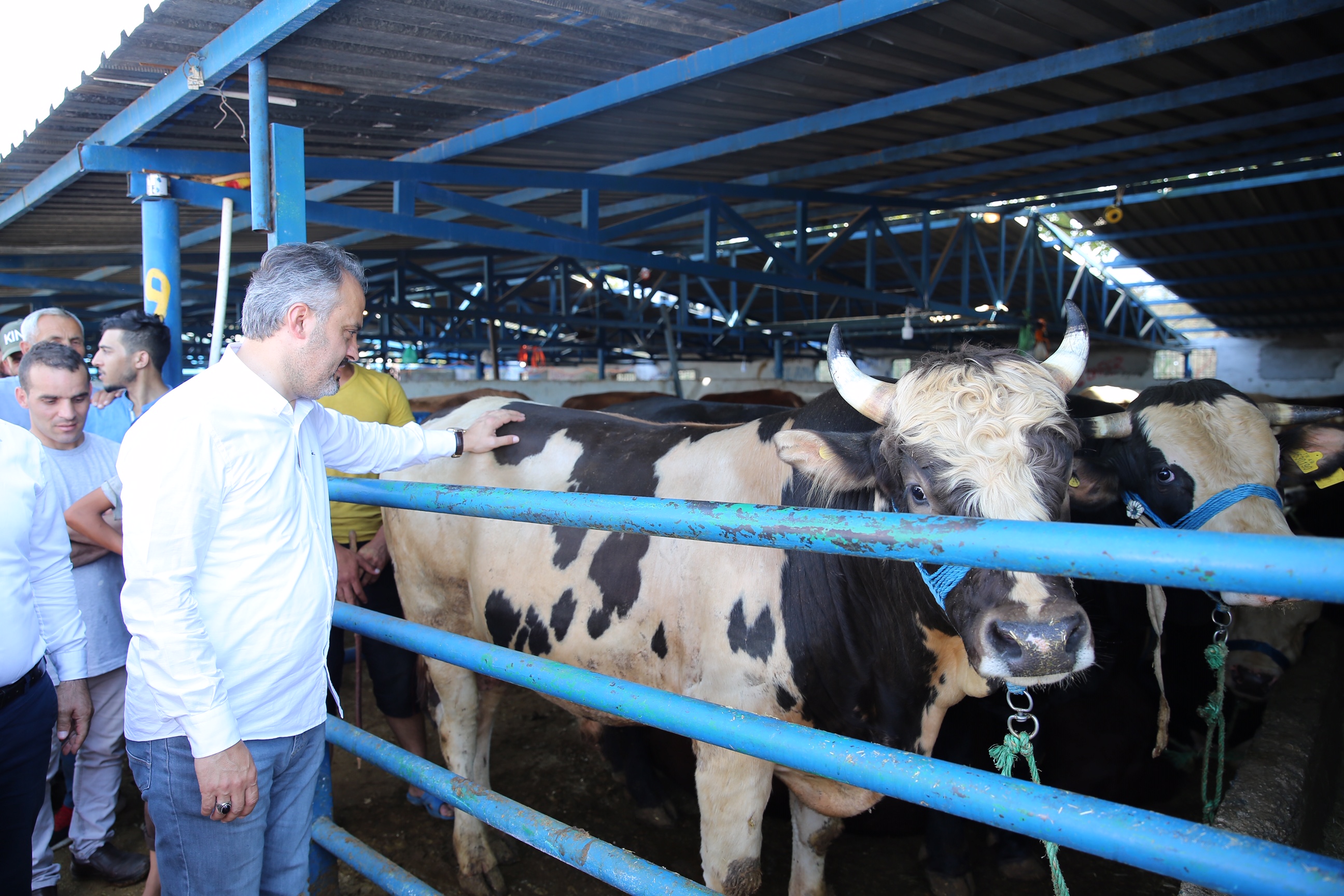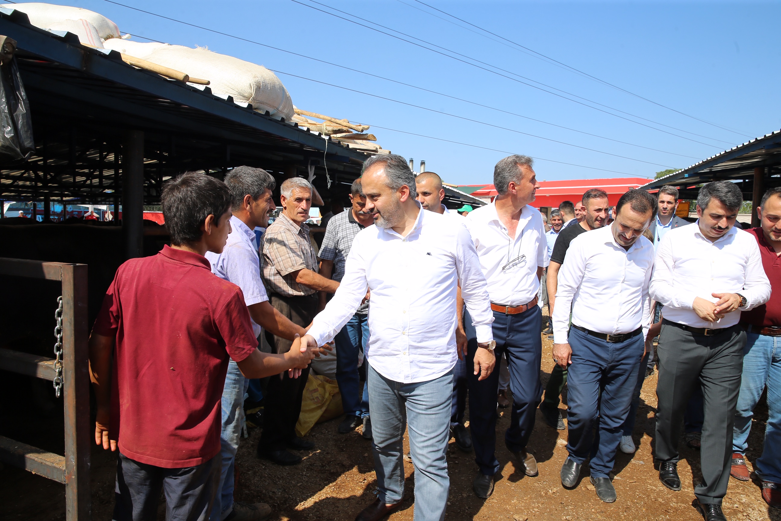 Bursalıların ‘Kurban Bayramı’nı tebrik eden Başkan Aktaş, İsabey Kurban Pazarı’nın Bursa’daki en büyük pazarlardan biri olduğunu söyleyerek, “Bursa’da 17 ilçede 20 kurban pazarı kuruluyor. Bu 20 pazarda 30 bin civarı büyükbaş, 60 bin civarı küçükbaş hayvan bulunuyor. Osmangazi, Yıldırım, Nilüfer ve Gemlik gibi ilçeler başta olmak üzere 13 ilçede toplam 118 kurban kesim yeri bulunuyor. Bursa Tarım İl Müdürlüğü tarafından hayvanların kulak, küpe, pasaport ve raporları kontrol ediliyor, ilçe belediyeleri de hayvanların gebeliklerini ve sağlık kontrollerini takip ediyor. Bursa Büyükşehir Belediyesi Veteriner Hizmetleri Şube Müdürlüğü’müz, karasinek ve sivrisinek (vektör) mücadelesini gerçekleştiriyor” diye konuştu.