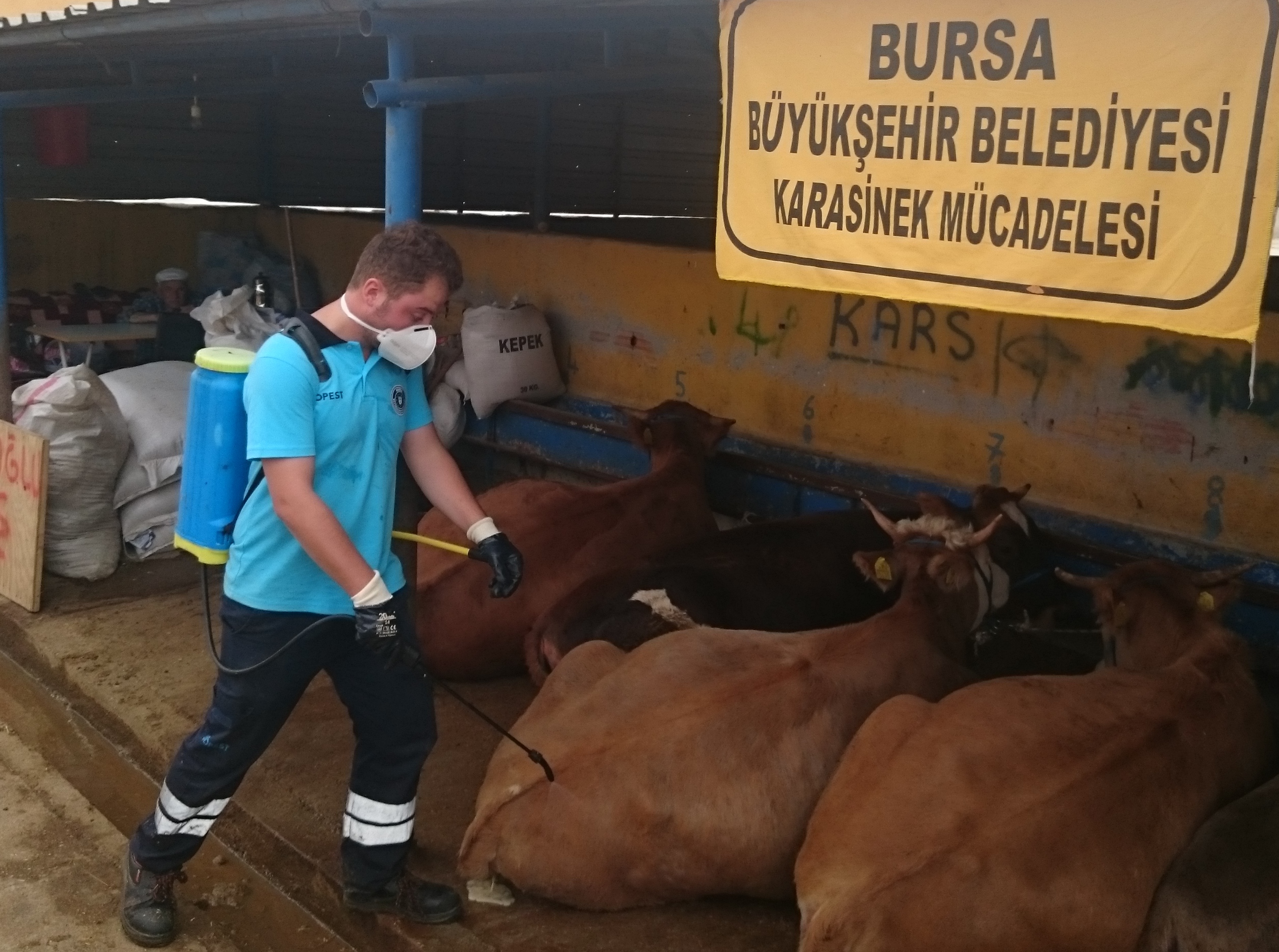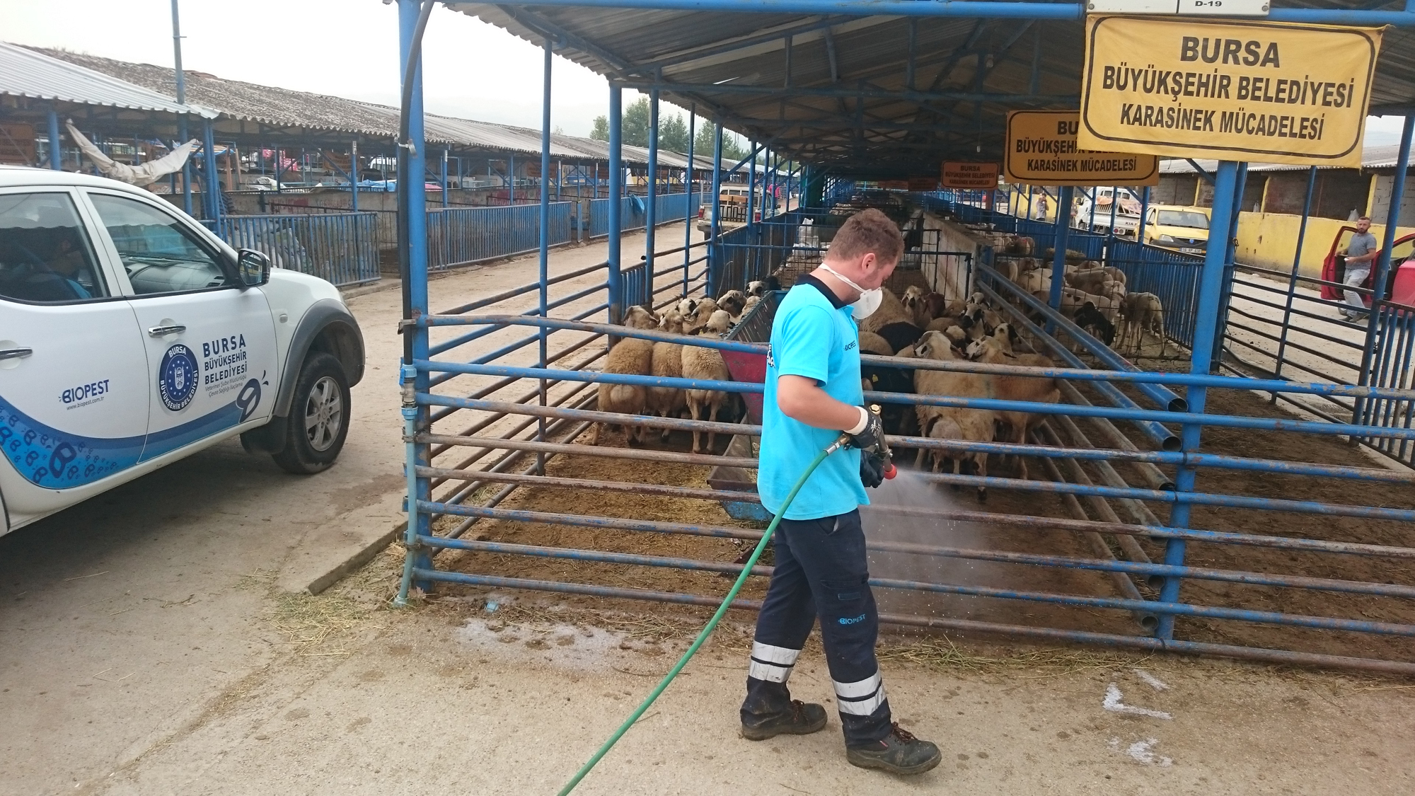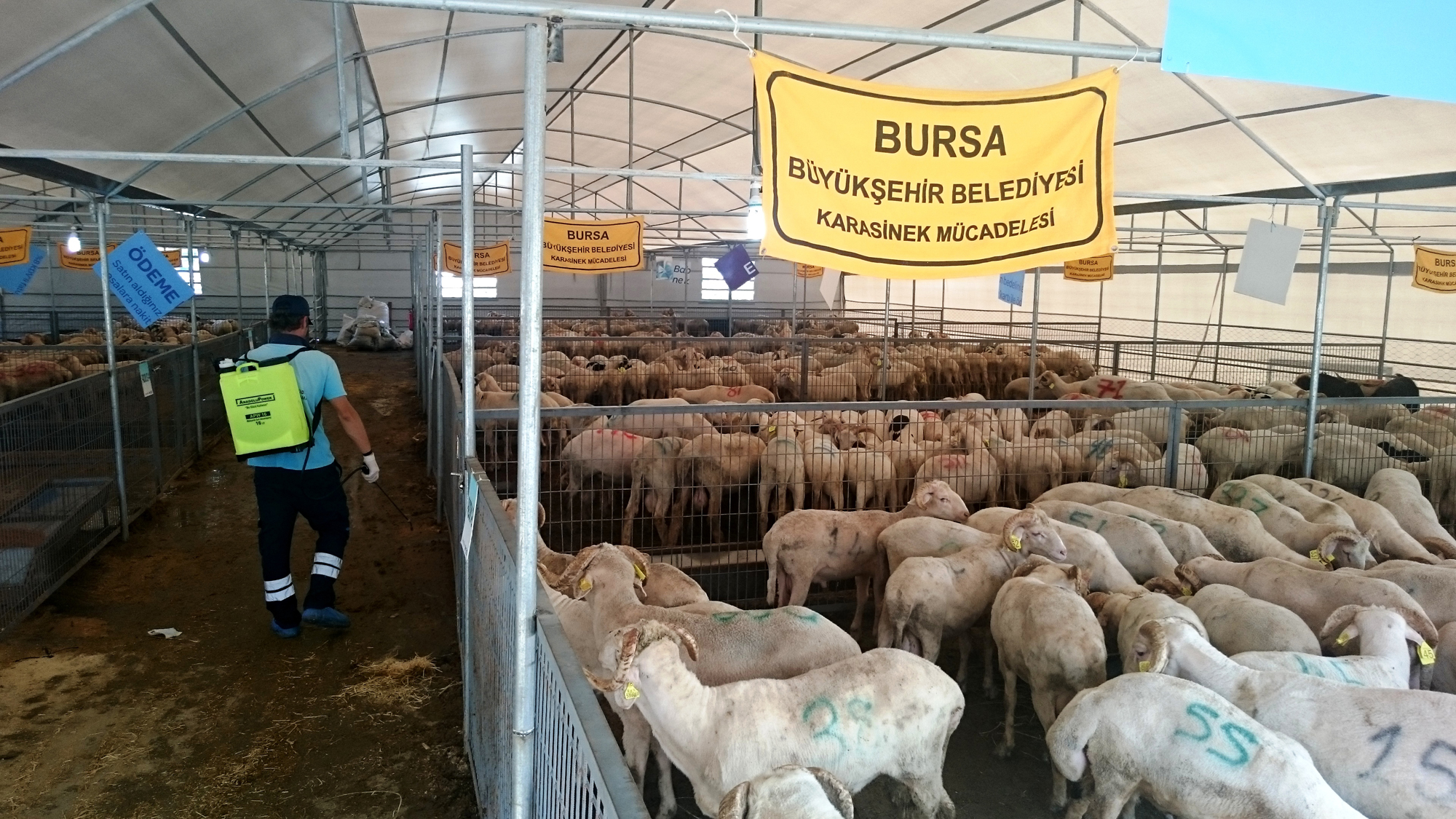 - BURSA BÜYÜKŞEHİR BELEDİYESİ SAĞLIK İŞLERİ DAİRESİ BAŞKANLIĞI EKİPLERİ KENT MERKEZİNİN YANI SIRA 17 İLÇEDE KURULAN KURBANLIK SATIŞ ALANLARINDA KARASİNEK VE DİĞER HAŞERELERE KARŞI İLAÇLAMA ÇALIŞMALARINI ARALIKSIZ SÜRDÜRÜYOR.