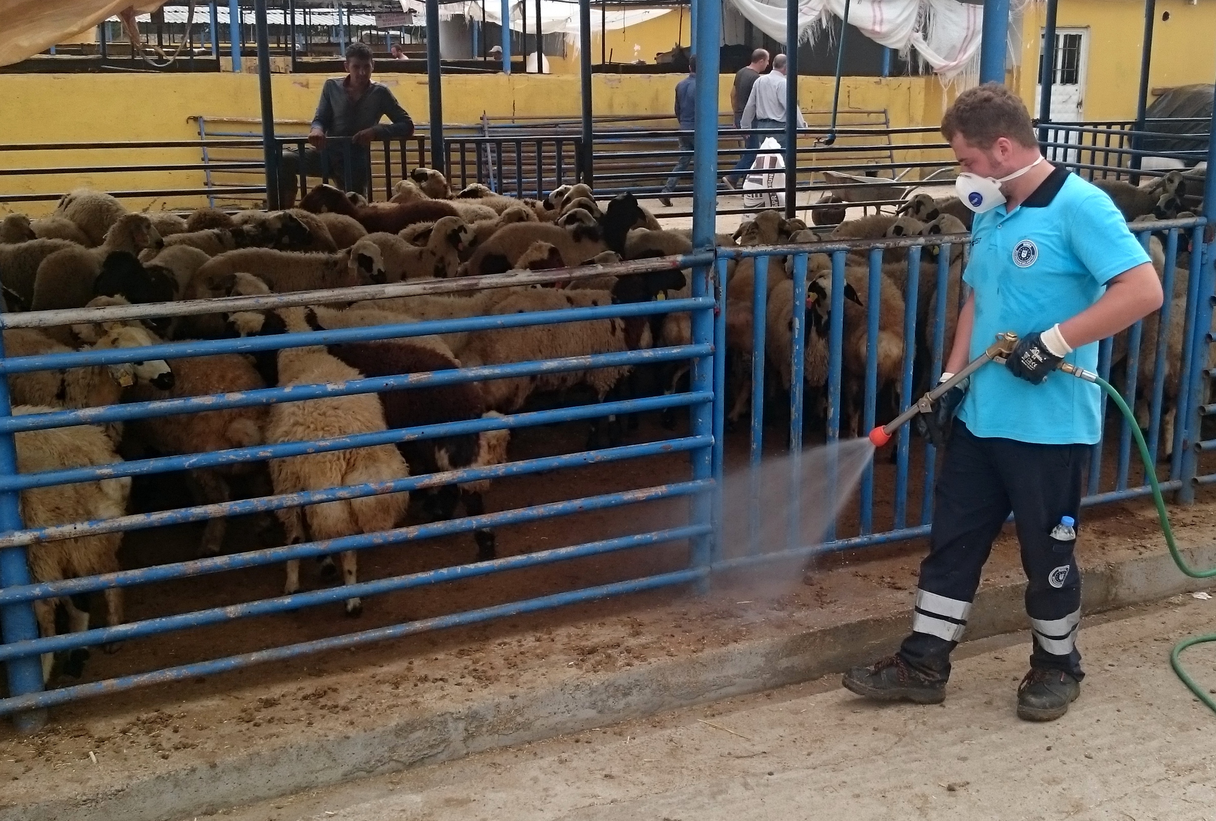Kurban Bayramı öncesinde kent merkezinin yanı sıra tüm ilçelerde yerleşim alanlarına yakın bölgelerde kurbanlık satış alanları oluşturulurken, bu bölgelerde çevre sağlığını tehdit edecek unsurlara karşı Büyükşehir Belediyesi ekipleri ilaçlama çalışmalarına ağırlık veriyor. Toplam 207 personel ve 86 ilaçlama aracı ile tüm kurban satış noktalarında karasinek ve diğer haşerelere karşı düzenli olarak ilaçlama yapılıyor.