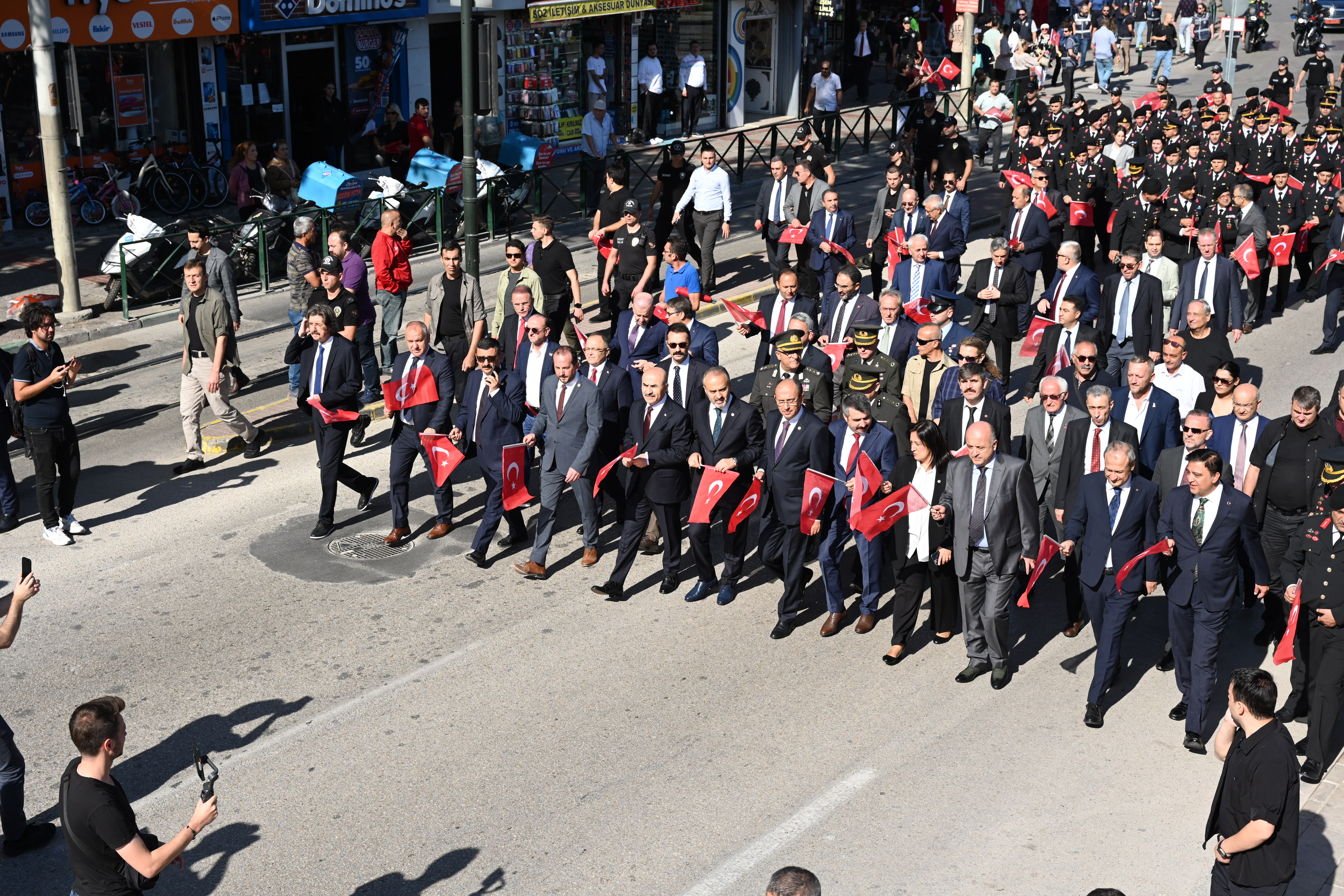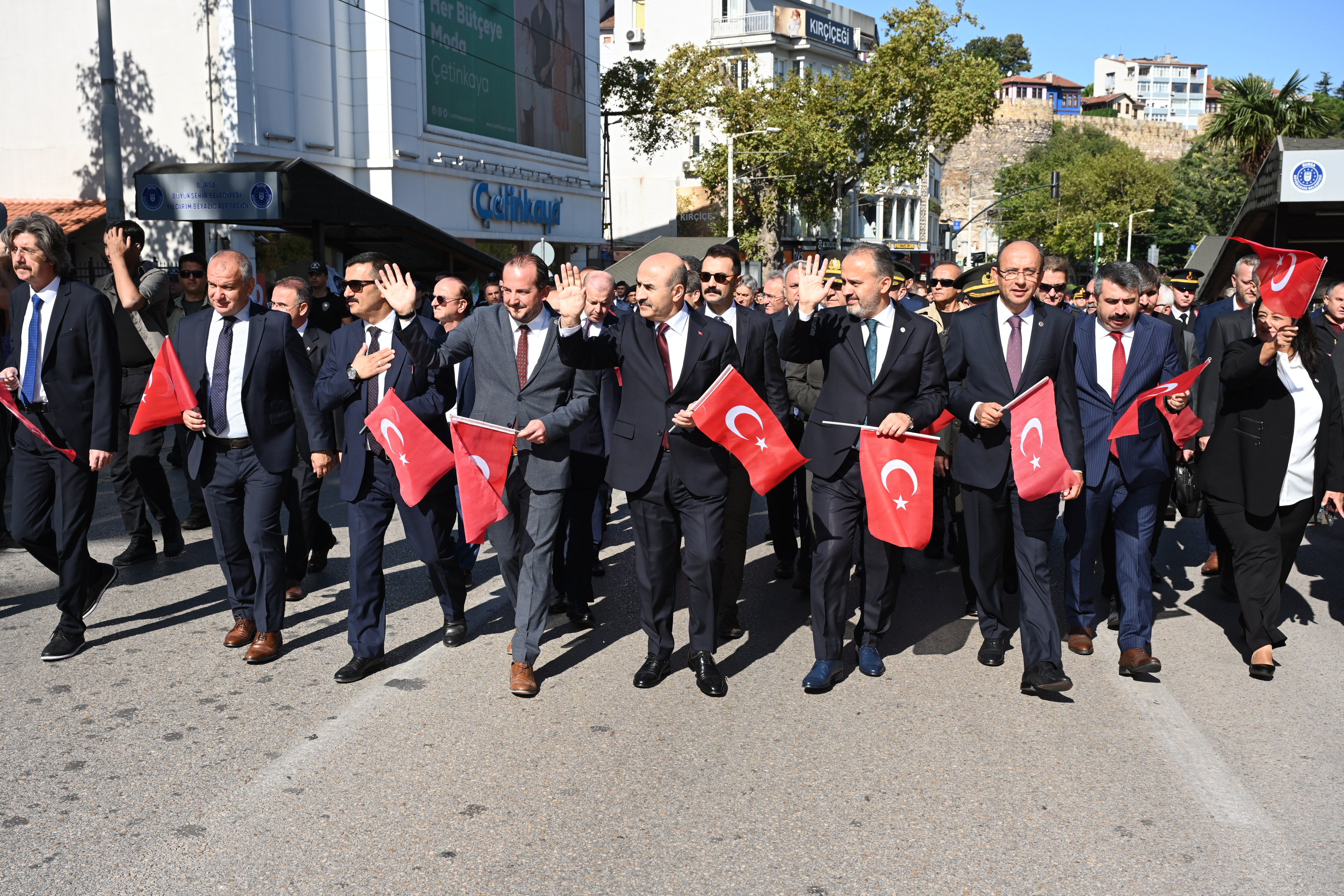 BURSA - Bursa’nın düşman işgalinden kurtuluşunun 101’inci yıldönümü, şehirde coşkuyla kutlandı. Kurtuluşun 101’inci yıldönümü kapsamında, Vali Mahmut Demirtaş, Büyükşehir Belediye Başkanı Alinur Aktaş ve protokolün katılımıyla, Tophane’den Atatürk Anıtı’na dek uzanan bir kortej gerçekleştirildi.