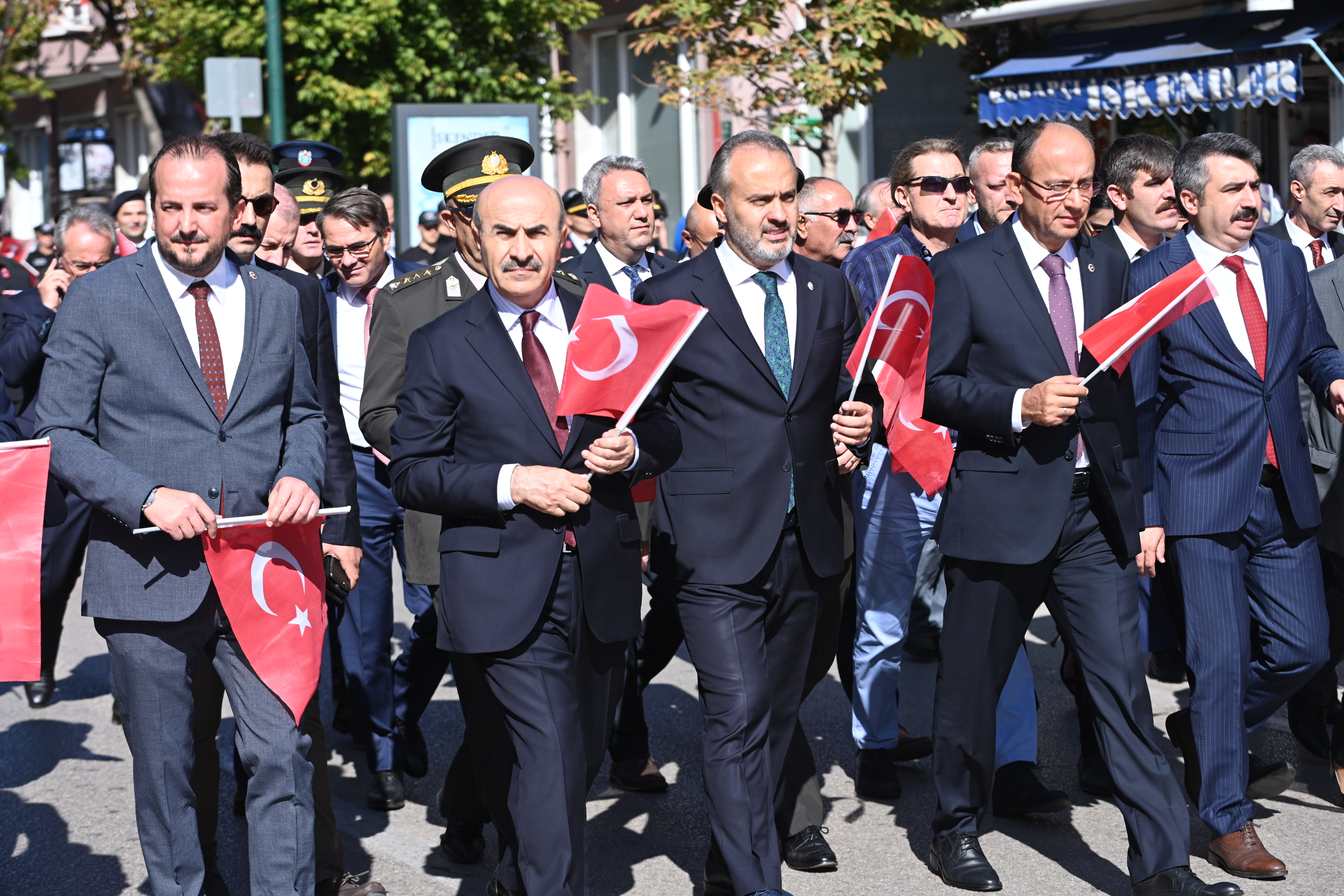Bursa Büyükşehir Belediye Başkanı Alinur Aktaş törende yaptığı konuşmada, Bursa tarihinin en anlamlı günlerinden birini kutladıklarını söyledi. Bursa'nın kurtuluşunun 101’inci yıl dönümünü coşku ve gururla karşılamanın mutluluğunu yaşadıklarını ifade eden Başkan Aktaş, “Bu önemli günü kutlarken aziz milletimizin bağımsızlık mücadelesini, fedakârlığını ve vatan sevgisini hatırlıyor ve genç nesillere aktarma fırsatı buluyoruz. Geçmişimizi onurlandırıyor, geleceğe olan güvenimizi tazeliyoruz. 101 yıl önce, Gazi Mustafa Kemal Atatürk ve silah arkadaşları tarafından yürütülen bu kahramanca mücadele, Bursa'nın kurtuluşuyla neticelendi. Bu önemli zafer, sadece Bursa’mız için değil, aynı zamanda tüm Türk milleti için umut ışığı oldu. Bugünün anlam ve önemini vurgularken, Büyükşehir Belediyesi olarak, şehrimizi daha da ileriye taşımak için kararlılıkla çalışmaya devam edeceğimizi de belirtmek istiyorum. Canla, başla verilen mücadelenin ardından kazandığımız bu eşsiz kenti daha da büyüterek ve geliştirerek, gelecek nesillerin iftihar edeceği bir güzellikte bırakmak için çabamızı sürdüreceğiz. Bu vesileyle, Bursa'nın kurtuluşunun 101’inci yıl dönümünü bir kez daha kutluyor, başta Gazi Mustafa Kemal Atatürk olmak üzere, bağımsızlık mücadelemizin kahramanlarını rahmet ve minnetle anıyorum” diye konuştu.