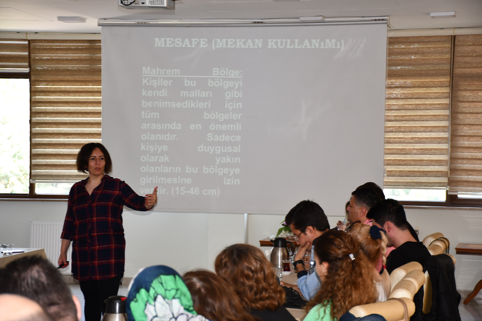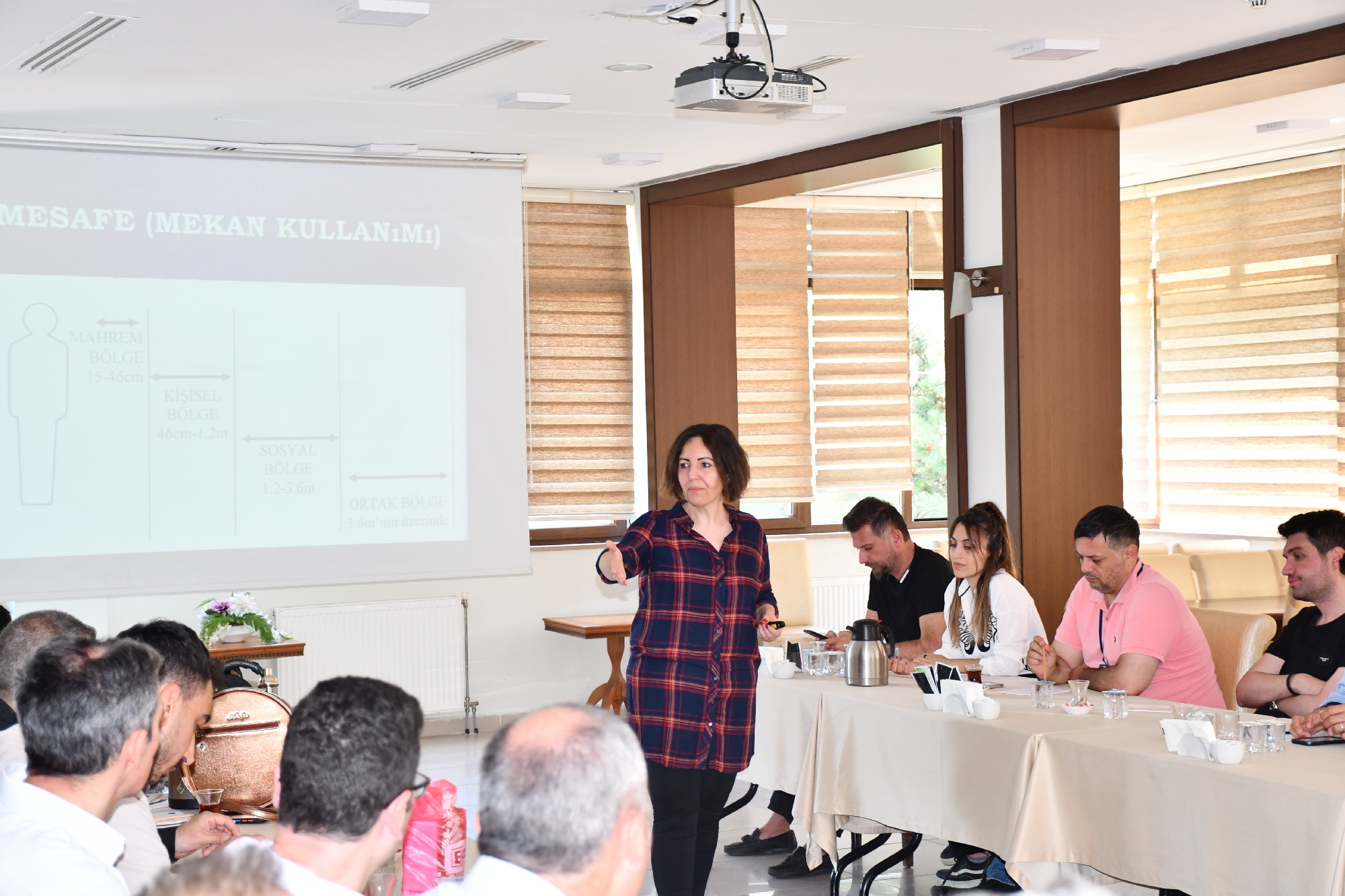 İnsan kaynağını daha etkin ve verimli kullanmak, zaman ve maliyet tasarrufu sağlamak amacıyla düzenlenen eğitimde İl Milli Eğitim Müdürlüğünden Özlem Çelik Gürbüz tarafından personele; beden dili, sahne kullanımı, öfke kontrolü, liderlik gibi konularda bilgi verdi.