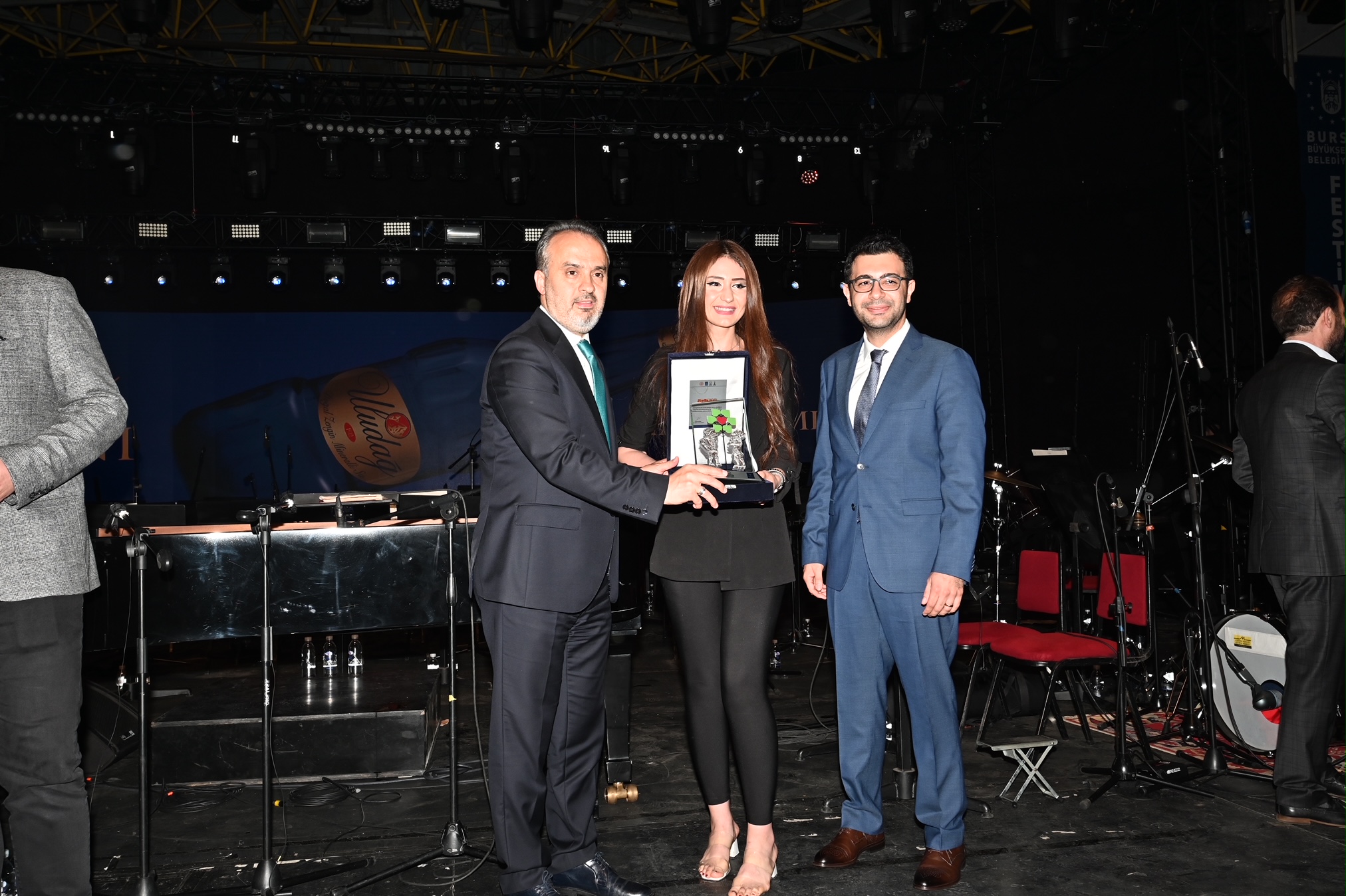 Başkan Alinur Aktaş ile Bursa Kültür Sanat ve Turizm Vakfı (BKSTV) Başkanı Sadi Etkeser, festivale sponsor olan Atış Şirketler Gurubu, Uludağ Premium, Çelik Palas Otel, B Plas, Çay Taze, Karinna Otel, Kardelen Kestane Şekeri, Aldente Yemek Hizmetleri, İpoint Akustikbaks, Zeno Copy Center, Advert House, Neskar, İskender, firmalarının temsilcilerine teşekkür plaketi sundular.