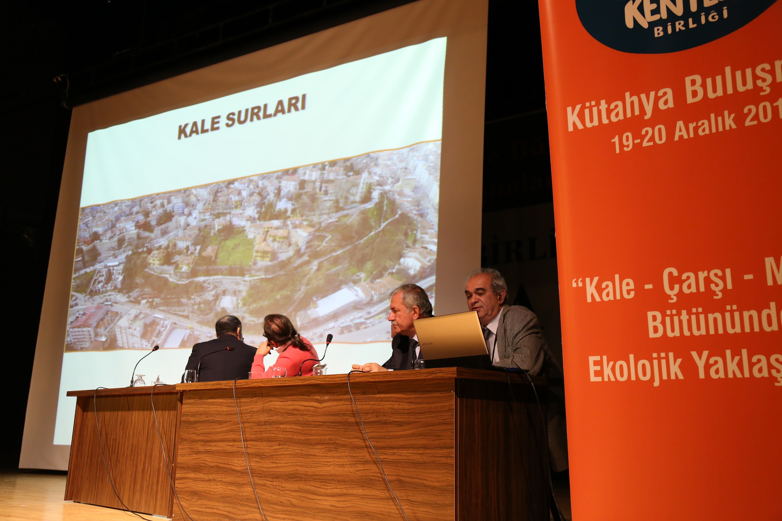 Kütahya Belediyesi Kültür ve Ticaret Merkezi’nde gerçekleştirilen toplantıda konuşan ÇEKÜL Başkan Yardımcısı Mimar Mithat Kırayoğlu, kale-çarşı-mahalle bağlamında tarihi kentlerde yapılması gerekenleri ve Bursa’da yürütülen örnek çalışmaları anlattı. Kale-çarşı-mahalle ilişkisinin Osmanlı şehirleşme anlayışının temeli olduğuna işaret eden Kırayoğlu, yerel yönetimlerin bugün de bu ilişkiyi güncel koşullara uygun olarak kurması gerektiğine dikkat çekti. Bursa kalesinin ve Bursa çarşılarının eski ve yeni fotoğrafları eşliğinde Büyükşehir Belediyesi’nce yürütülen çalışmaları anlatan Kırayoğlu, ÇEKÜL Başkanı Prof. Metin Sözen’in 2008 yılında Bursa’da gerçekleştirilen TKB toplantısında söylediği; “Kale düşerse kent düşer, çarşı düşerse kent ölür” sözünü hatırlattı ve Bursa’daki kale, çarşı ve mahalleyi ihya çalışmalarının tüm ülkeye yayılması gerektiğini kaydetti.
