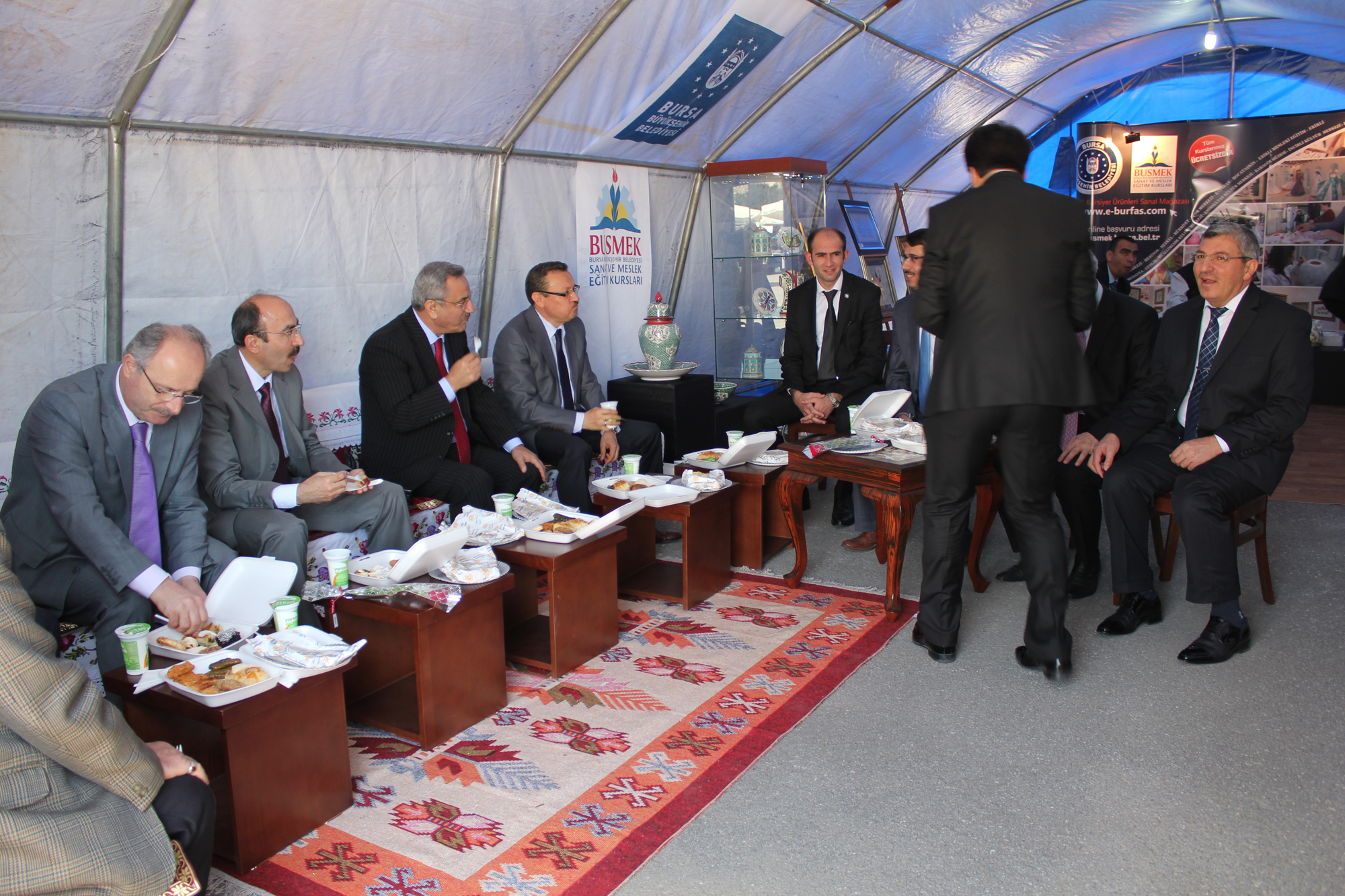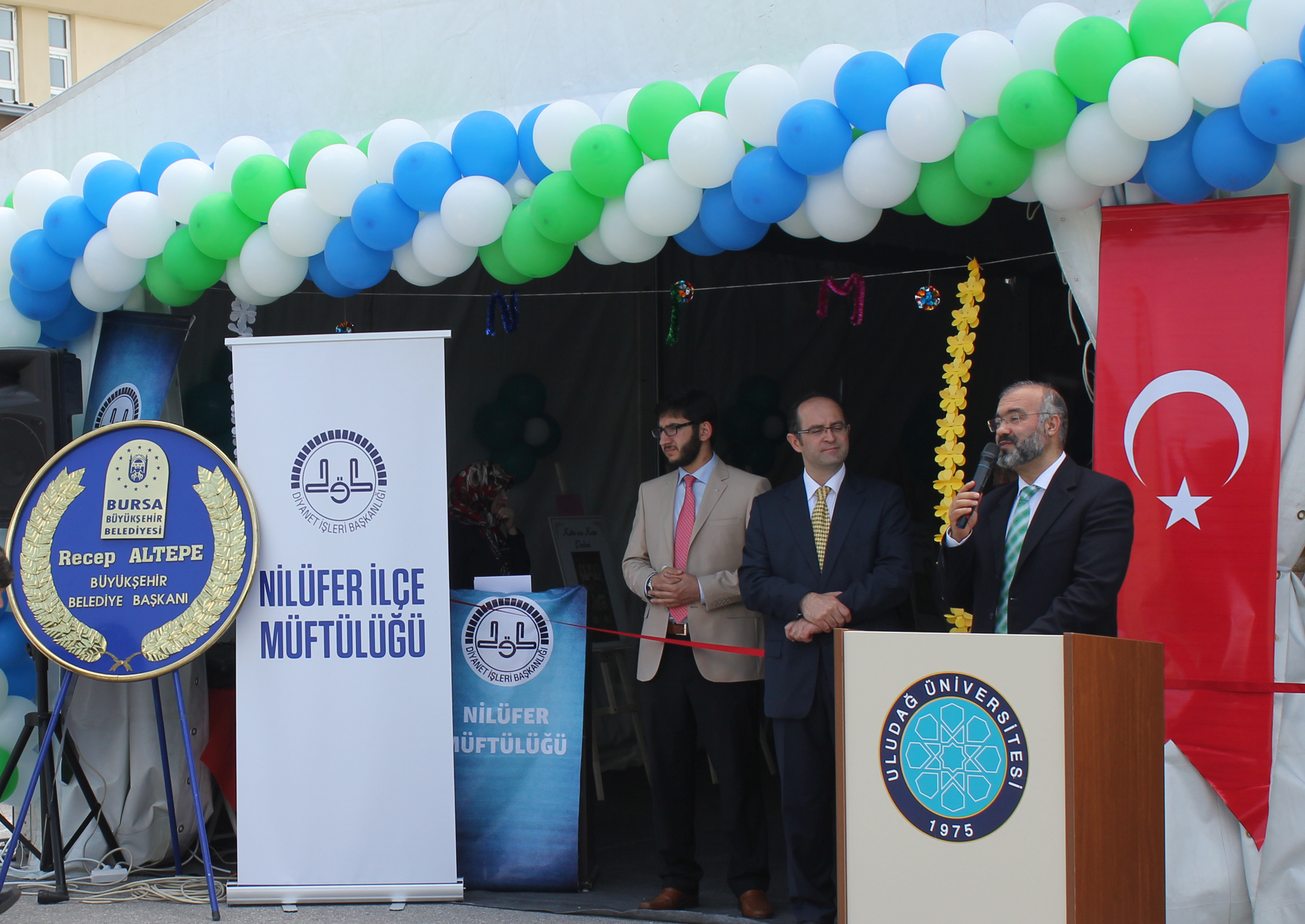 Uludağ Üniversitesi kampüsünde düzenlenen ‘Çadır Etkinlikleri’nin ikincisi Uludağ Üniversitesi Rektörü Prof. Dr. Kamil Dilek, Bursa İl Müftüsü Mehmet Emin Ay, Rektör Yardımcısı Prof. Dr. A. Saim Kılavuz, Nilüfer İlçe Kaymakamı Mustafa Kılıç, İlçe Müftüsü Durmuş Ayvaz, Kestel İlçe Müftüsü Mustafa Mestan, öğretim üyeleri ve öğrencilerin katılımıyla başladı. Mehter gösterileriyle başlayan programda BUSMEK çadırının açılış kurdelesini kesen Rektör Prof. Dr. Dilek, bu etkinliğin geleneksel hale geldiğini belirterek emeği geçen herkese teşekkür etti. Açılış konuşmasını yapan Bursa İl Müftüsü Mehmet Emin Ay ise, Peygamberimizi anmak ve anlamak için “Peygamber, Din ve Samimiyet” temasının belirlendiği bu yılki etkinliklerin çok manidar olduğunu söyleyerek, “Gençleri efendimizin mesajıyla buluşturmanın bahtiyarlığını yaşıyorum” dedi.