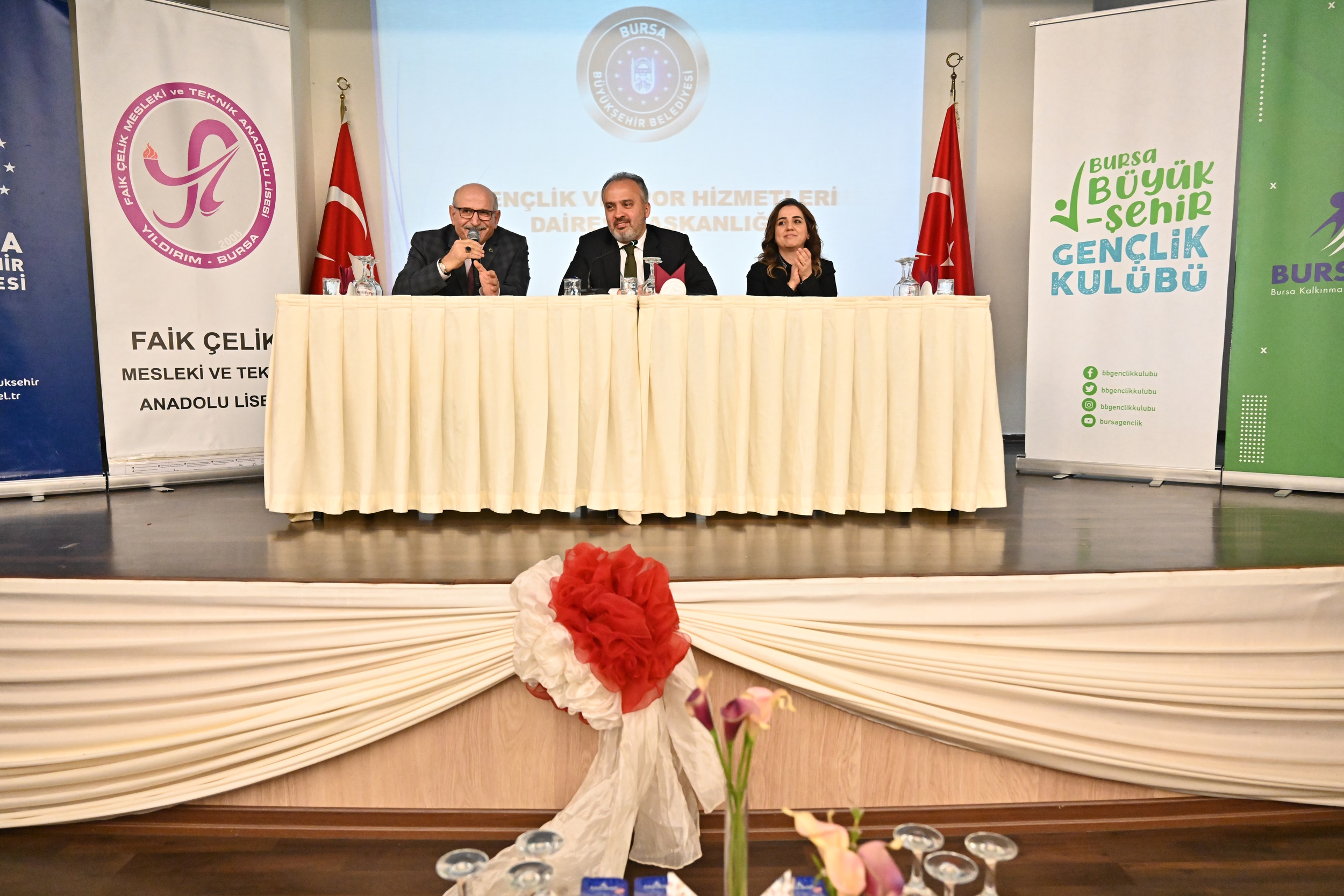 Başkan Aktaş, daha sonra öğrencilerle tecrübe paylaşımı yaptı. Gençlere nasihatlerde bulunan Başkan Aktaş, Bursa Büyükşehir Belediyesi’nin çalışmaları hakkında bilgiler verdi. Hayatla mücadele etmeyi göze alanların önlerinin hep açık olduğunu dile getiren Başkan Aktaş, “Meslek lisesinde okumanız sizin için altın bilezik. Hayalleriniz varsa, peşinden koşun. O zaman işinizi severek yaparsınız. Yeter ki hayalleriniz olsun. Sıkıntılar çekeceksiniz ama sonunda hedefinize varacaksınız. Bursa Büyükşehir Belediyesi’nin öğrencilere sağladığı tüm imkanlardan yararlanabilirsiniz. Kurs ve spor merkezlerimize, uyumayan kütüphanelerimize başvurularda bulunun. Ufku parlak gençlere ihtiyacımız var” diye konuştu.
