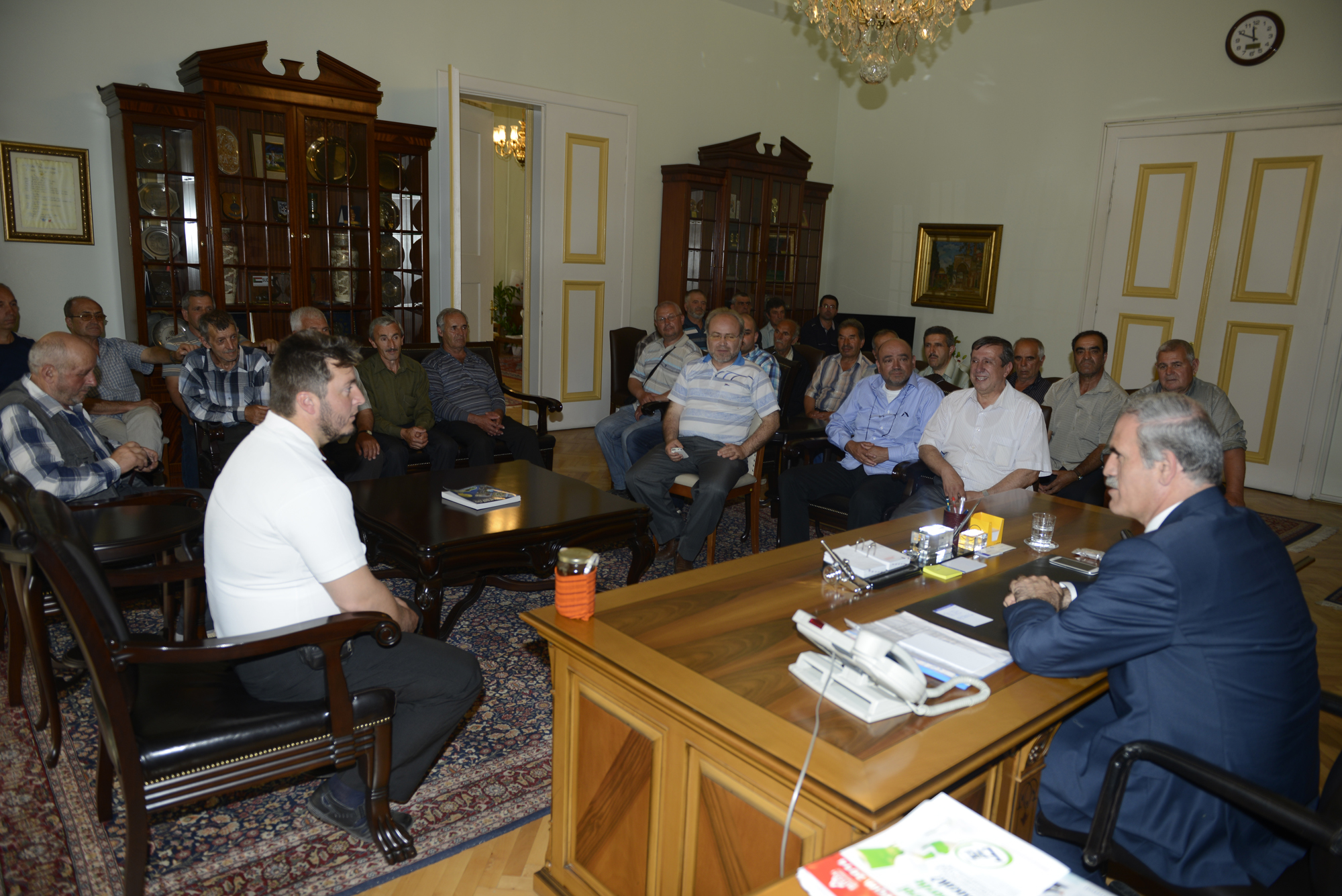- HEYKEL´DEKİ TARİHİ BAŞKANLIK BİNASINDA GERÇEKLEŞEN ZİYARETE, MADAN İMAMI HAYRİ HASAN İLE 30´A YAKIN MADANLI MÜSLÜMAN KATILDI.