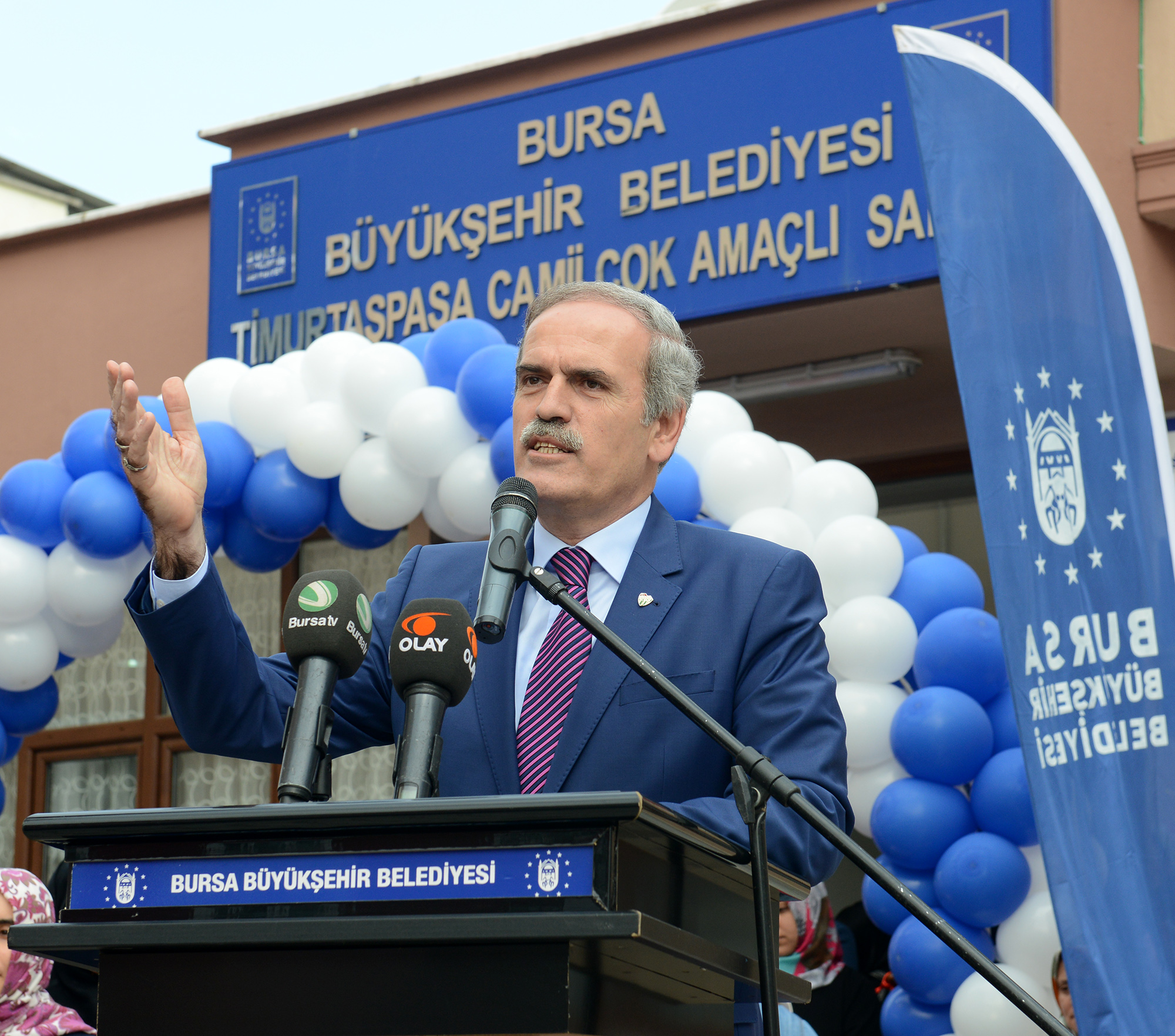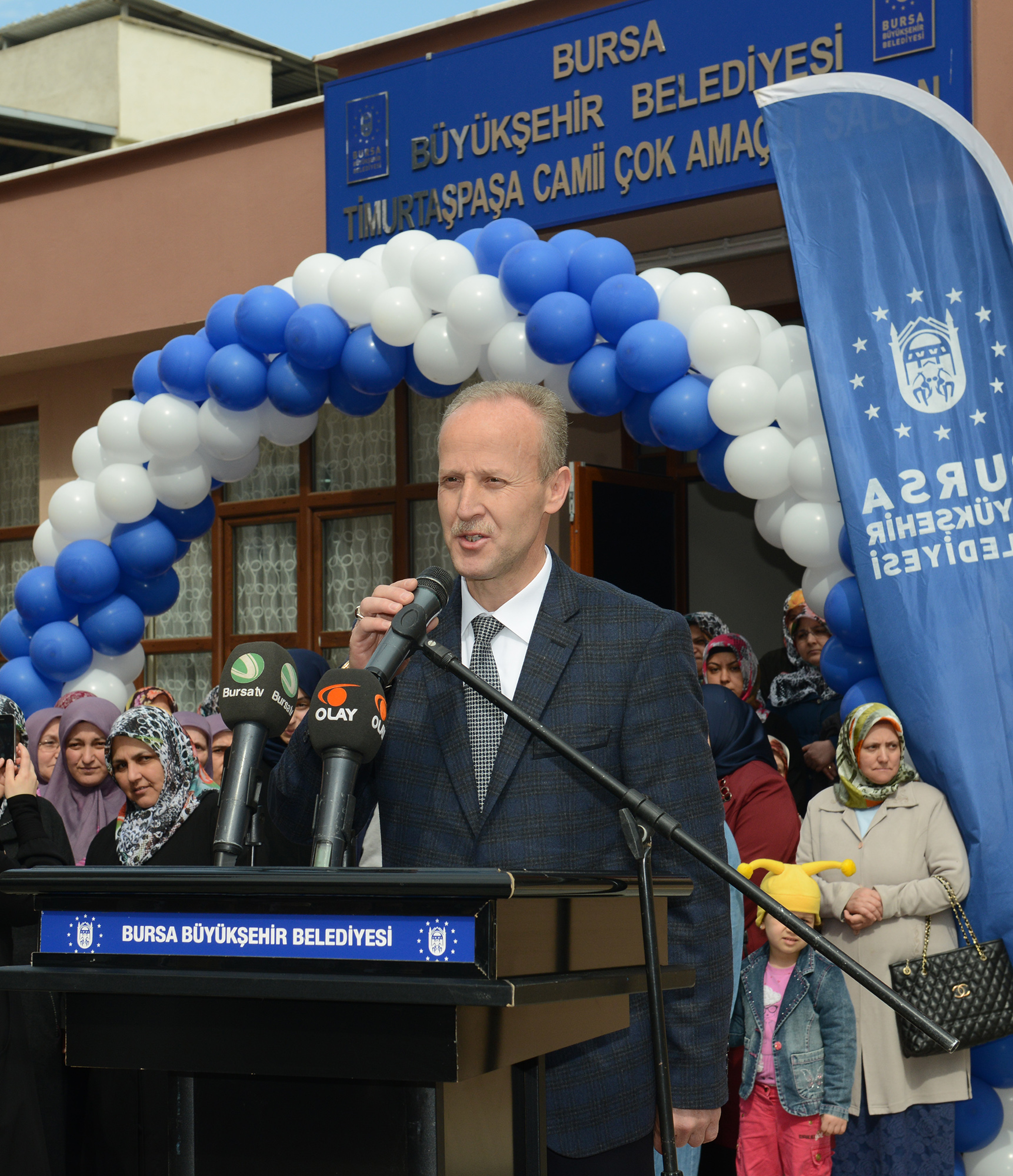 - BURSA’YI GELECEĞE TAŞIYAN DEV PROJELERİ BİR BİR HAYATA GEÇİREN BÜYÜKŞEHİR BELEDİYESİ, DİĞER TARAFTAN VATANDAŞLARIN TALEPLERİ DOĞRULTUSUNDA MAHALLELERDE YAŞAM KALİTESİNİ YÜKSELTMEK AMACIYLA YAPTIRILAN DEMİRTAŞ TİMURTAŞ PAŞA CAMİİ ÇOK AMAÇLI SALONU HİZMETE AÇTI.