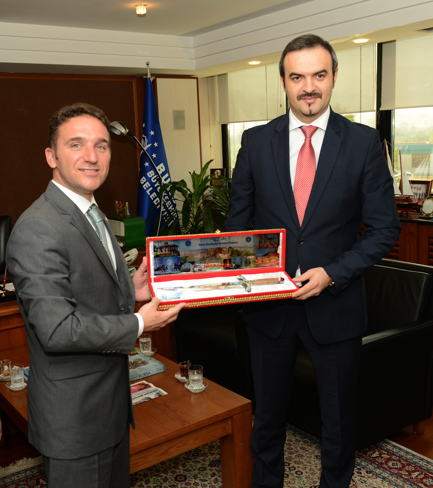 Başkanvekili Ödünç, ziyaretin sonunda Makedonya Ekonomi Bakanı Valon Saracini’ye Bursa bıçağı hediye etti.