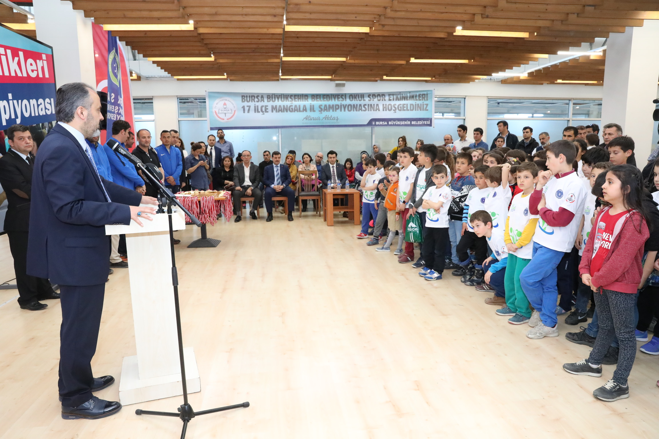Büyükşehir Belediye Başkanı Alinur Aktaş, yaptığı konuşmada, Türkiye’nin geleceği olan çocukların bu mutlu günlerinde yanlarında olmaktan duyduğu memnuniyeti dile getirdi. Turnuvaya katılan öğrencileri tebrik eden Başkan Aktaş, BOSE ile çocukları yarıştırmaktan ziyade yeni arkadaşlıklara kapı aralamayı ve zihinlerin açılması için faydalı programları uygulamaya almayı hedeflediklerini ifade etti. Bu noktada öğretmenlere de önemli görevler düştüğünü söyleyen Başkan Aktaş, Büyükşehir Belediyesi olarak eğitime destek olmaya devam edeceklerini belirtti. En güzel bina ve okulları yapmaktan ziyade öğretmenlerin özverilerinin ‘çocukların eğitimi adına’ daha önemli olduğuna dikkat çeken Başkan Aktaş, "Veliler açısından da bu böyle. Çocuklarımızı takip etmemiz gerekiyor. Takip etmezsek, ciddi tehlike ve tuzaklar onları bekliyor. 3 milyonluk bir şehirde yaşıyoruz. Takip ederken de bunaltmamak gerekir. Devletimizin imkanlarıyla çocuklarımızı farklı faaliyetlerde bir araya getiriyoruz. Sosyal hayatlarına katkıda bulunuyoruz. Büyükşehir Belediyespor’un faaliyetlerini bu yönde artırarak devam ettireceğiz. En iyi yolları yapsak, sıkıntısız trafik sağlasak; buraları kullanacak nesli yetiştiremezsek anlamı yok. Anne, baba ve eğitimciler olarak daha fazla gayret göstermemiz gerekiyor" dedi.
