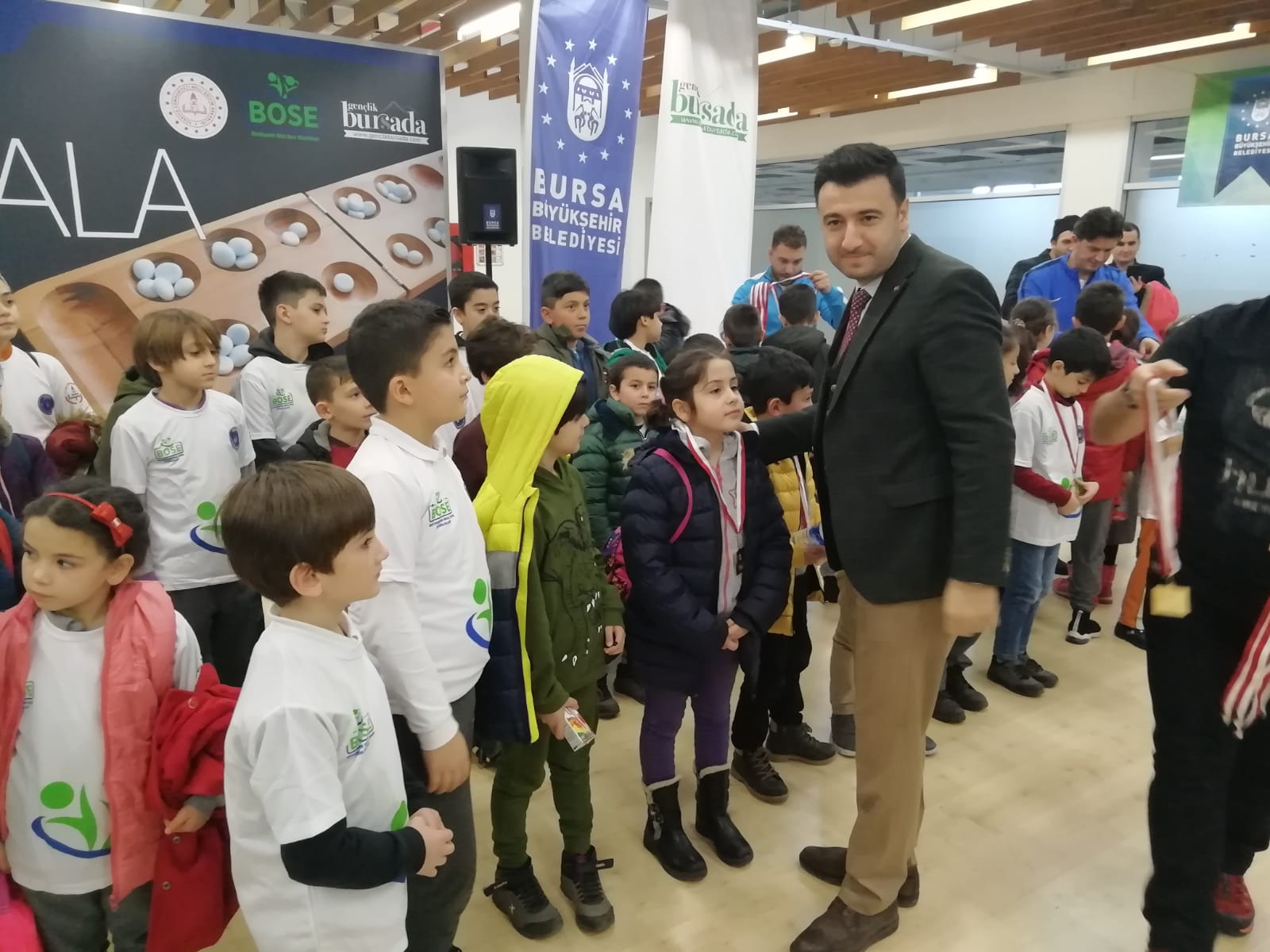 İlk 4 dereceyi elde eden 200 öğrencinin kıyasıya mücadele ettiği etkinlikte, İl Milli Eğitim Müdürü Sabahattin Dülger ile Bursa Büyükşehir Belediyesi Basın Yayın ve Halkla İlişkiler Dairesi Başkanı Ahmet Bayhan da çocuklarla mangala oynadı. Şampiyonayı başarıyla tamamlanan küçük sporcular, zorlu maratonun ardından madalyalarına kavuştu.