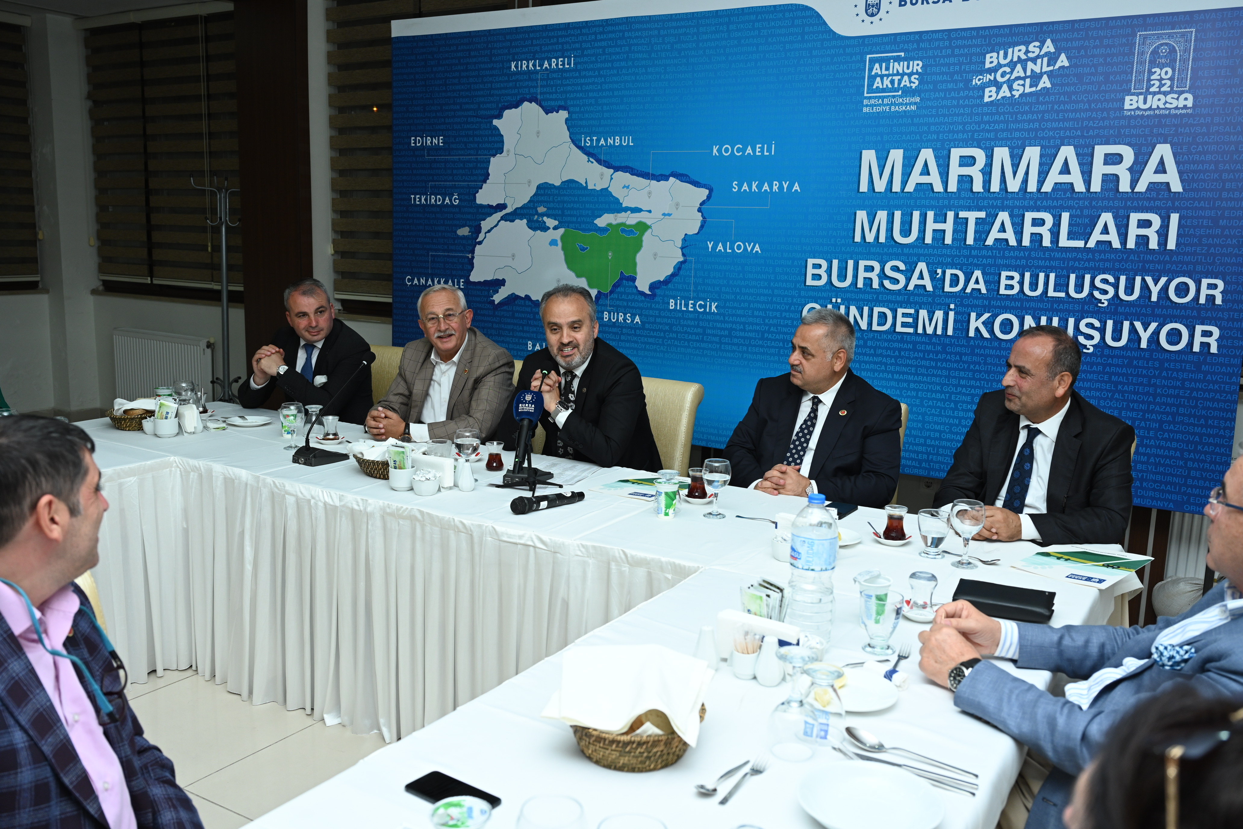 Demokrasinin üç beyleri olan muhtarlarla sık sık bir araya gelerek mahallelerin ihtiyaç ve sıkıntılarını birinci ağızdan dinleyen ve hızlı çözümler üreten Büyükşehir Belediye Başkanı Alinur Aktaş, bu kez de Marmara Bölgesi’nin farklı şehirlerinden muhtarlarla buluştu. Dobruca Sosyal Tesisleri’ndeki toplantıya; Büyükşehir Belediye Başkanı Alinur Aktaş’ın yanı sıra Türkiye Muhtarlar Konfederasyonu Başkanı Bekir Aktürk, Marmara Muhtarlar Federasyonu Başkanı Ferruh Sevimgil ve Bursa Muhtarlar Derneği Başkanı İdris Aydın ile Balıkesir, Çanakkale, Edirne, Tekirdağ, Yalova, Kocaeli ve Bursa’dan 60’a yakın mahalle muhtarı katıldı.