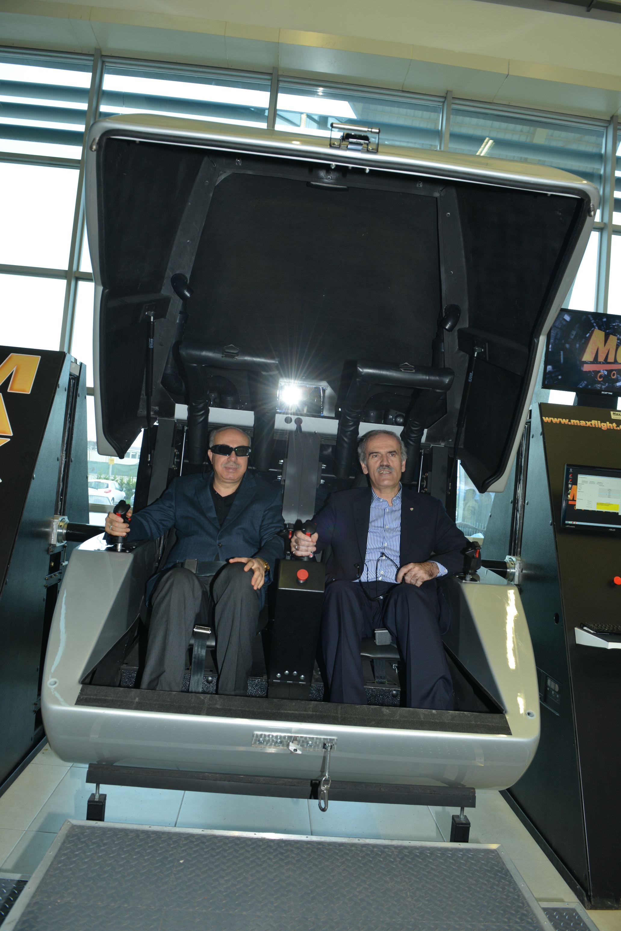 Başkan Altepe, MaxFlight uçak simülatörünü Büyükşehir Belediyesi Genel Sekreteri Seyfettin Avşar’la birlikte denedi. Yatay ve dikey 360 derece hareket kapasitesine sahip MaxFlight, Türkiye´de ilk kez Bursa´da hizmete girdi. Simülatörde Boeing ve Airbus’tan akrobasi uçaklarına kadar birçok model kullanılabiliyor.