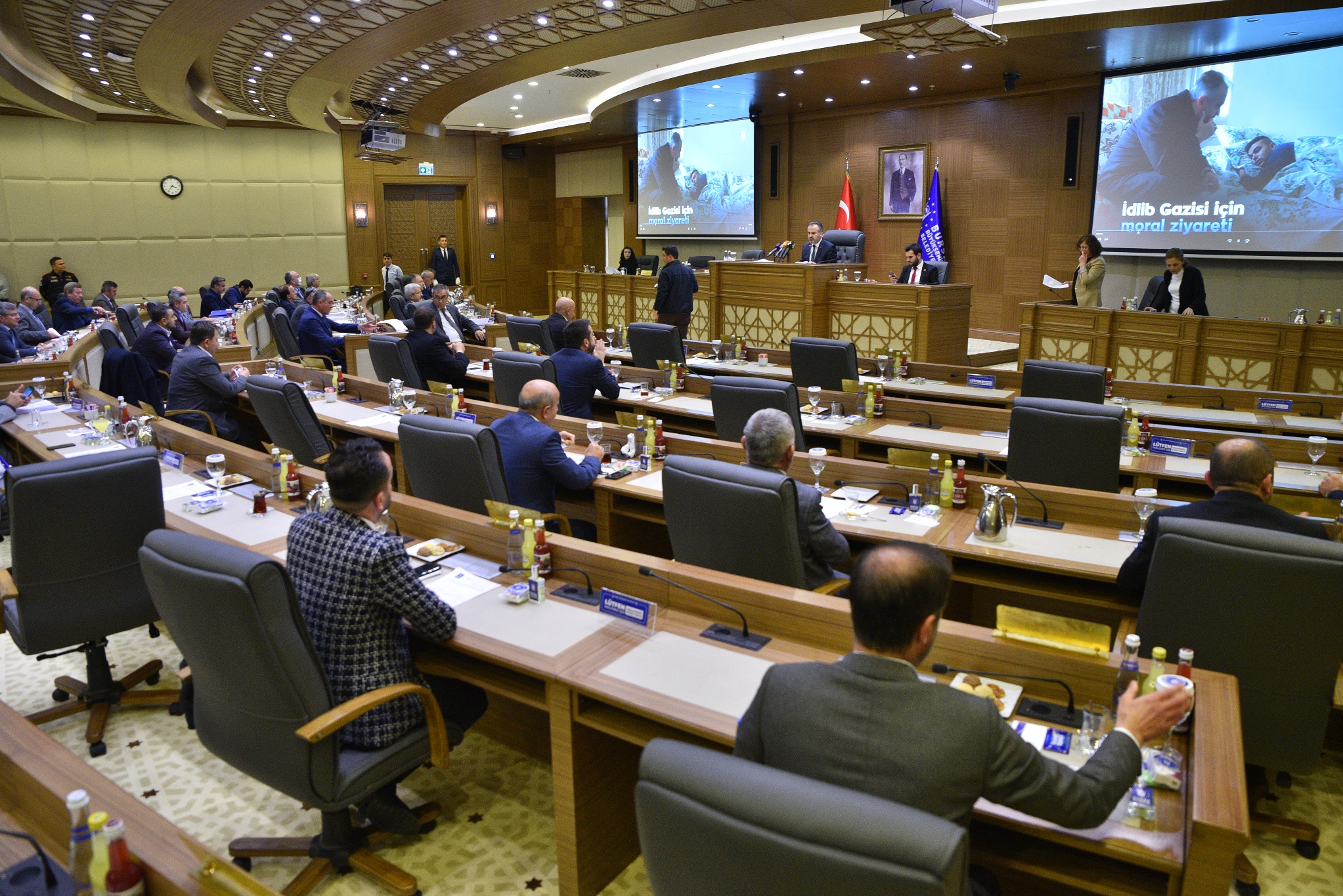 Çin’de ortaya çıkan ve kısa sürede tüm dünyayı etkisi altına alan ve Türkiye’de de iki kişinin yaşamını yitirmesine neden olan corona virüsüyle ilgili tüm tedbirleri alan Bursa Büyükşehir Belediyesi, Mart ayı olan meclis toplantısını da üst düzey tedbirlerle yaptı. Öncelikle meclis salonundaki oturma düzeninde değişikliğe gidildi ve meclis üyeleri arasına mesafe bırakılacak şekilde koltuklar yerleştirildi. Bunun yanında her meclis üyesi için içinde kolonya ve hijyen maddeleri bulunan sağlık kitleri hazırlandı. Salona gelen her meclis üyesinin ateşi görevliler tarafından ölçülürken, aynı zamanda meclis üyelerinin eline sterilizasyon maddeleri sıkıldı. Bazı meclis üyelerinin toplantıya maskeyle geldiği gözlendi.