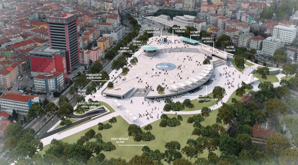 Büyükşehir Belediyesi’nin Bursa’ya önemli bir prestij katmayı hedeflediği projede, seyir terası, havuz, Bursa çeşmeleri, engelli rampası, belediye hizmet binası veya turist danışma merkezi olarak kullanılabilecek bir bina ile 1200 araçlık otopark bulunuyor. Atatürk Stadyumu’nun taşlarının da bulunacağı peyzaj merdivenlerinin yanında Hyde Park örneğinde olduğu gibi bir serbest kürsü, Bursaspor’un şampiyonluğunun yaşatılacağı anı duvarı ve heykel ile vatandaşların dinlenebileceği alanlar da proje kapsamında yer alıyor.