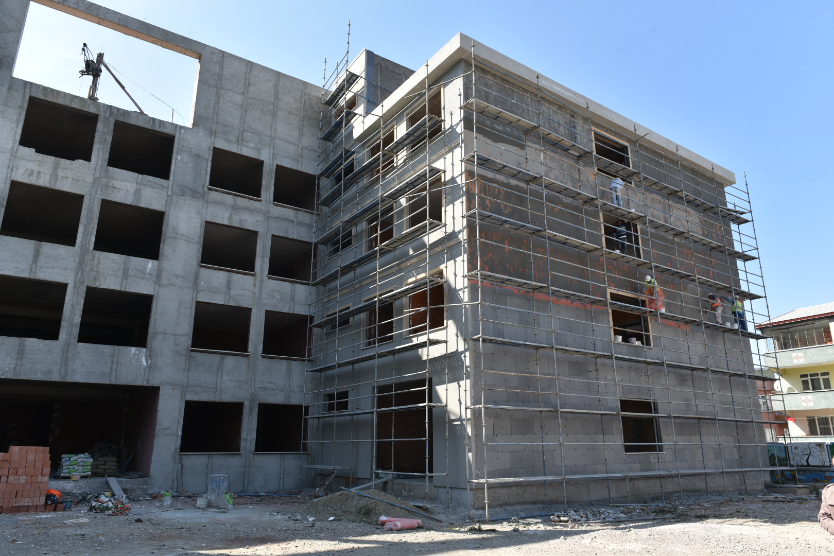 Eğitim kurumlarının eksiklerinin giderilmesi ve okullara spor salonu yapılmasının yanında kent merkezindeki eski okulların yenilenmesi noktasında da önemli bir görev üstlenen Büyükşehir Belediyesi, Ortabağlar Mahallesi’ne de modern bir eğitim kurumu kazandırıyor. Bugüne kadar Zafer Okulları, Merkez İmam Hatip Lisesi, Elmasbahçeler Salih Şeremet Ortaokulu ve Demirtaşpaşa Erhan Nasyalçın İlkokulunu modern eğitim kompleksleri olarak Bursa’ya kazandırılan Büyükşehir Belediyesi, hayırsever desteğiyle yaptırılan Ortabağlar Mahallesi’ndeki Mehmet Akif Ersoy Ortaokulu’nu da yeni eğitim dönemine yetiştirmek için çalışmaları hızlandırdı. Temeli 2017 yılının Kasım ayında atılan ancak müteahhit kaynaklı sorunlar yüzünden inşaatı geciken okulda, çalışmalara hız verildi. 4’ü anasınıfı toplam 32 derslikli okulda kaba inşaat tamamlanırken, dış cephe kaplama çalışmaları hızla sürüyor.