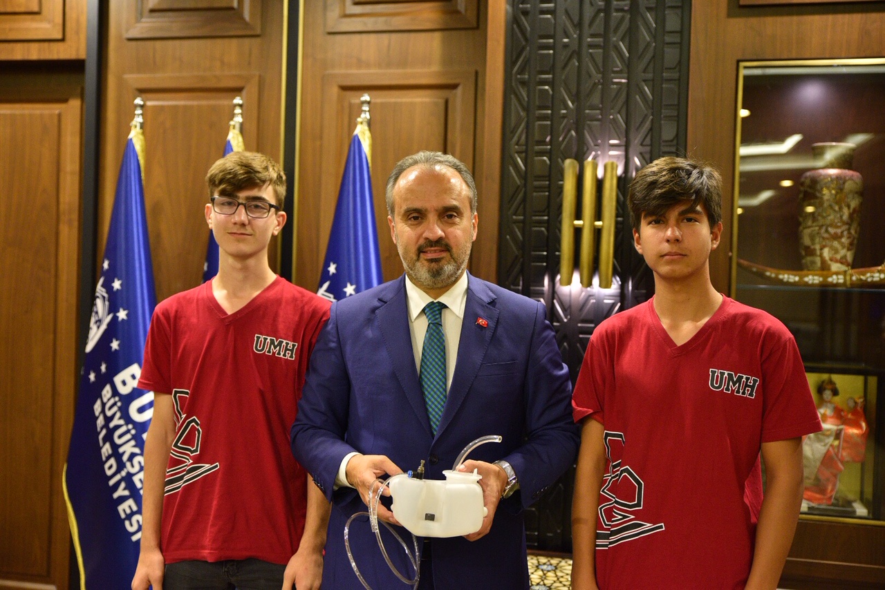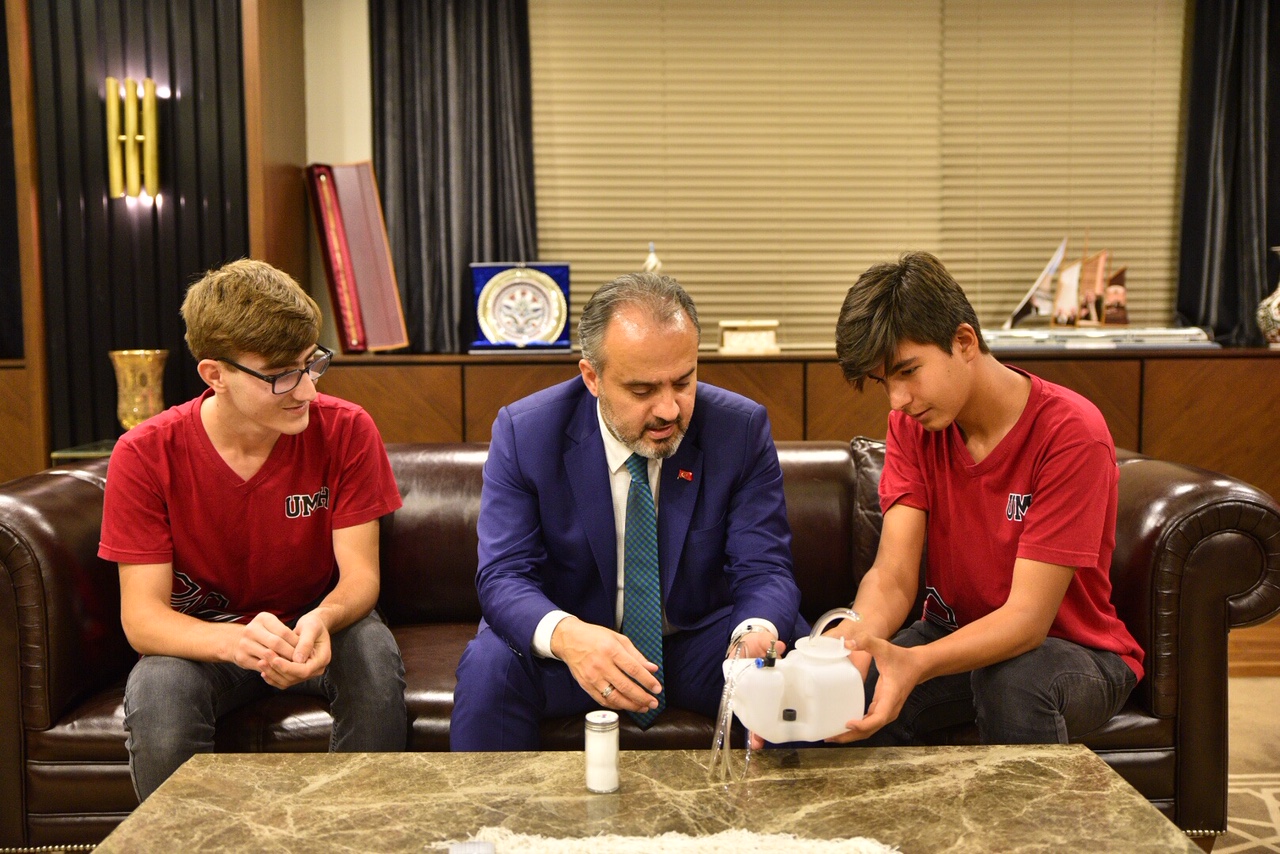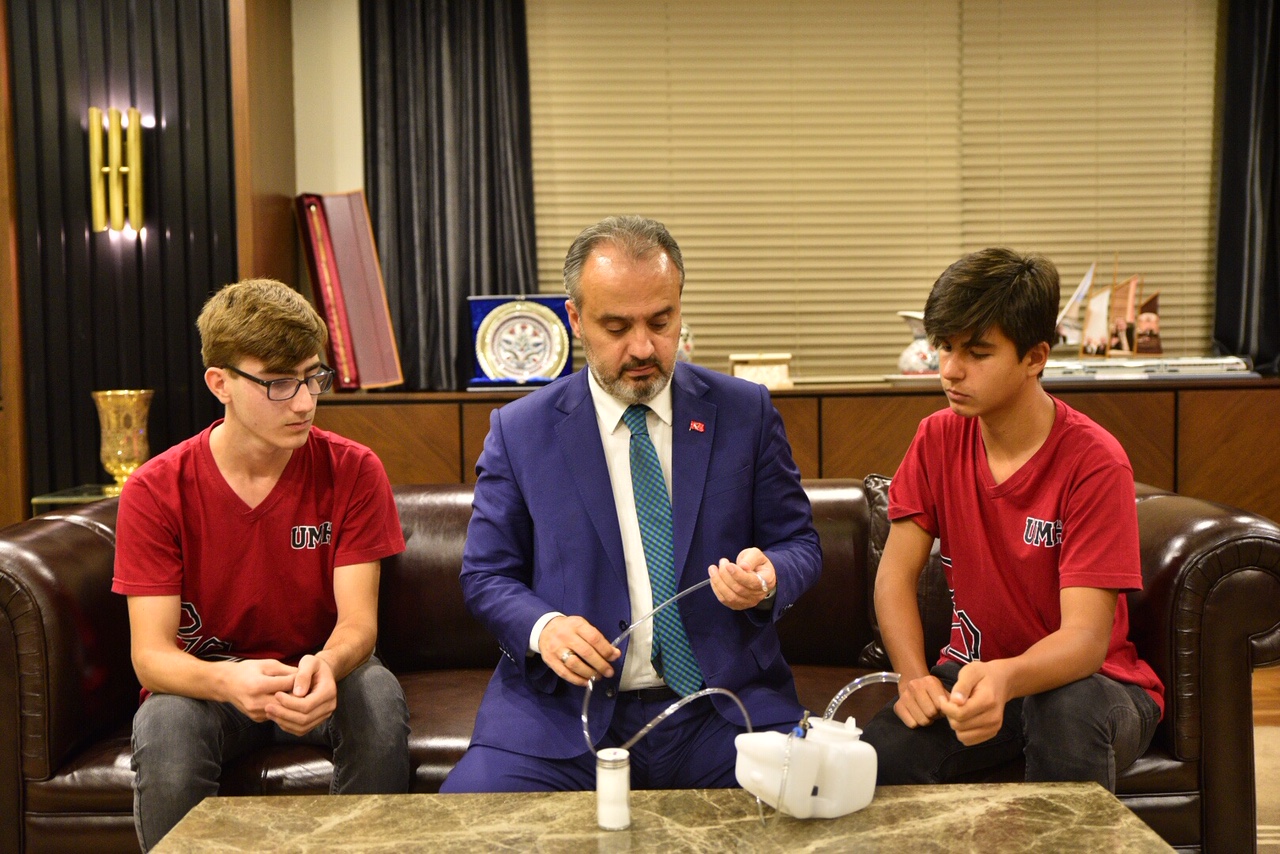 Her yıl çevre, sağlık, enerji ve mühendislik branşlarında yapılan Uluslararası Bilim Proje Olimpiyatının çevre kategorisinde birinci olan Uluslararası Murat Hüdavendigar Anadolu İmam Hatip Lisesi öğrencileri Abdülkerim Karabulut ve Serdar Aşkın, Başkan Alinur Aktaş’ı ziyaret etti. Arabalarda yüzde 40’a varan yakıt tasarrufu sağlayan ve ‘akaryakıt tasarruf makinesi’ adını verdikleri buluşlarını da yanlarında getiren liseli gençler, aracın hava filtresine monte edilen cihazın bor katkılı özel bir karışımla nasıl tasarruf sağladığını Başkan Aktaş’a anlattı. Kazandıkları birincilikle Kasım ayında Meksika’da yapılacak bilim olimpiyatlarında Türkiye’yi temsil edecek olan Abdülkerim Karabulut ve Serdar Aşkın’ı tebrik eden Başkan Aktaş, kendisinden manevi destek beklediklerini söyleyen liselilerin yanında olduklarını söyledi.