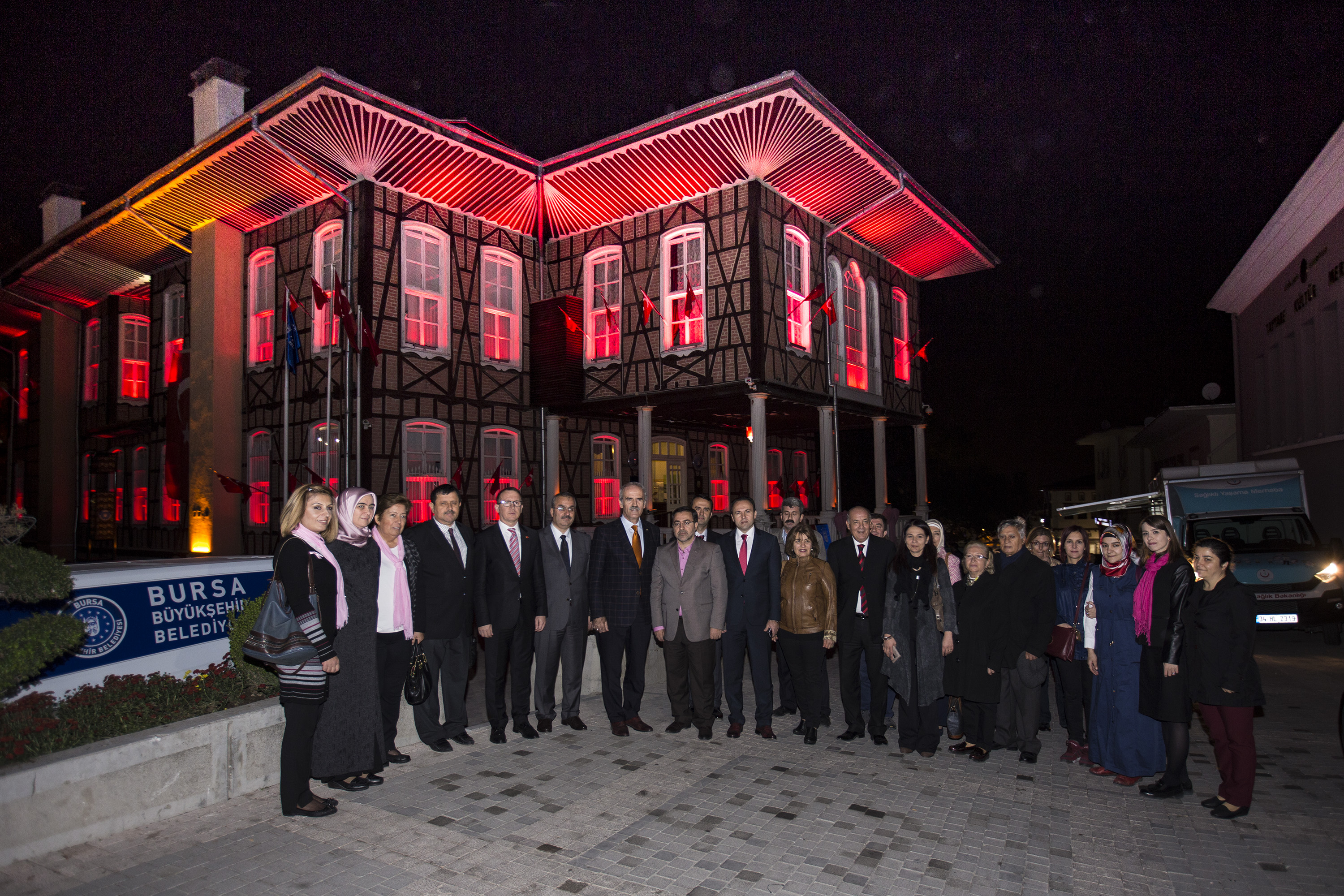Bursa’yı geleceğe taşıyacak projelerin yanı sıra sosyal sorumluluk bilinciyle her türlü toplumsal konuyu da yakından takip eden Büyükşehir Belediyesi, 1 – 31 Ekim Meme Kanseri Bilinçlendirme Ayı etkinlikleri kapsamında İl Sağlık Müdürlüğü ile işbirliği yaparak farklı bir çalışmaya imza attı. Kanser olan her 4 kadından birinin meme kanserine yakalanması ve erken teşhis edildiğinde yüzde 98 oranında tedavi edilebilmesi nedeniyle, toplumu bilinçlendirme etkinliklerine destek veren Büyükşehir Belediyesi, Helkel’deki tarihi binayı bu hastalığın rengi ile ışıklandırdı. Vali Ahmet Vefik Paşa döneminde 1879 yılında yaptırılan ve özgün mimarisi ile kent merkezinde her zaman ilgi odağı olan tarihi bina meme kanseri konusunda farkındalık oluşturulması hedefiyle pembe renkte ışıklandırıldı.